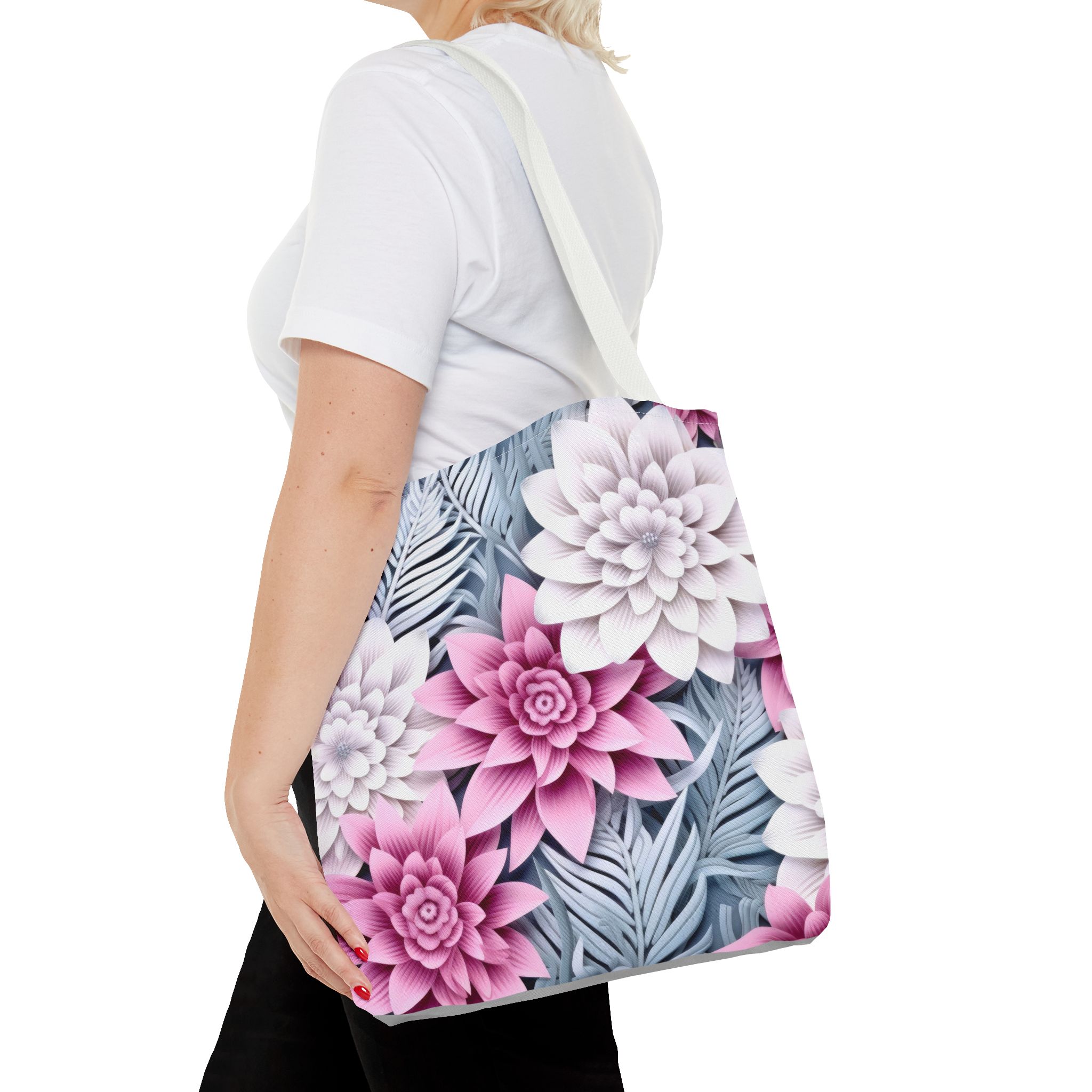 3D Winter White And Pink Flowers Paper Cut Design – Tote Bag (AOP)