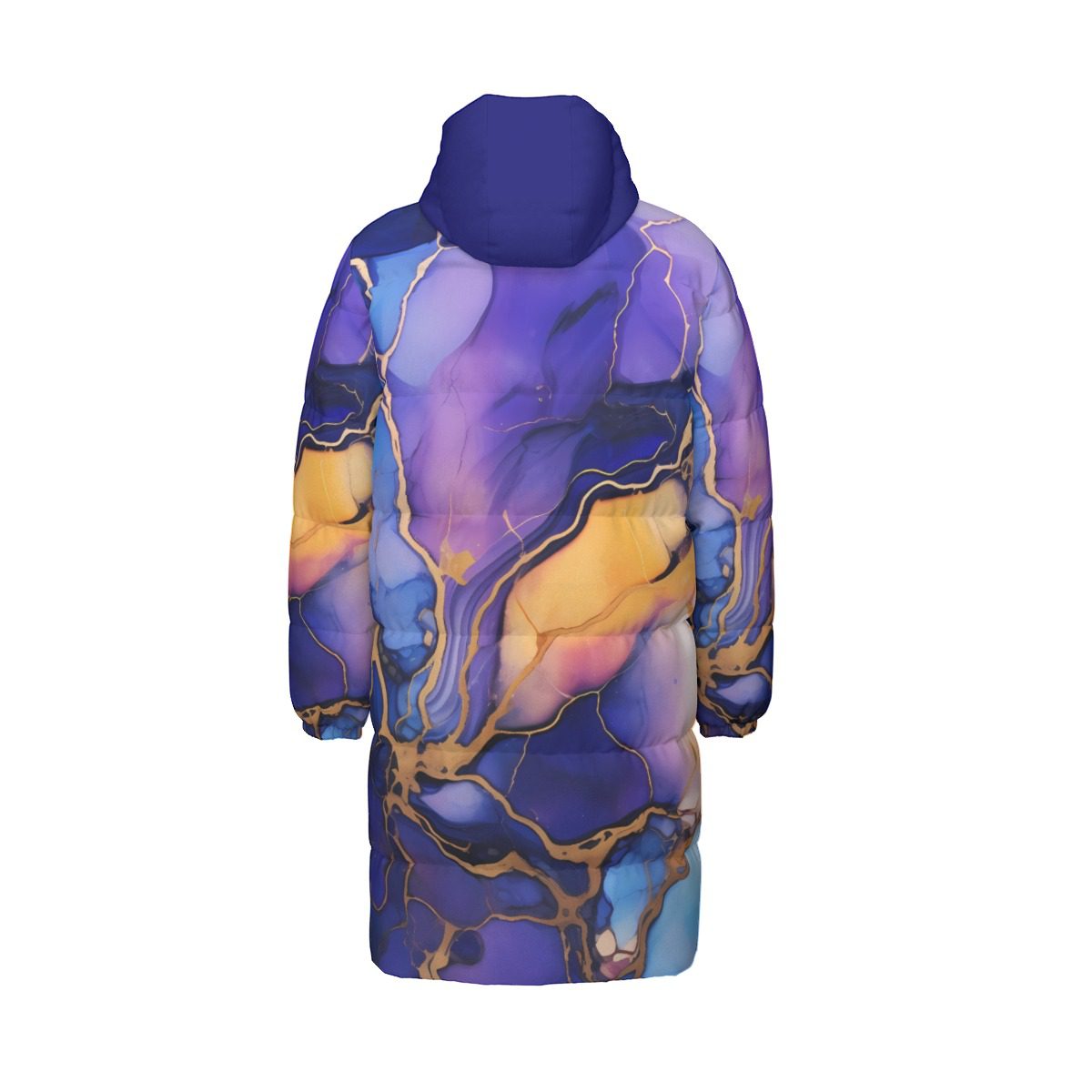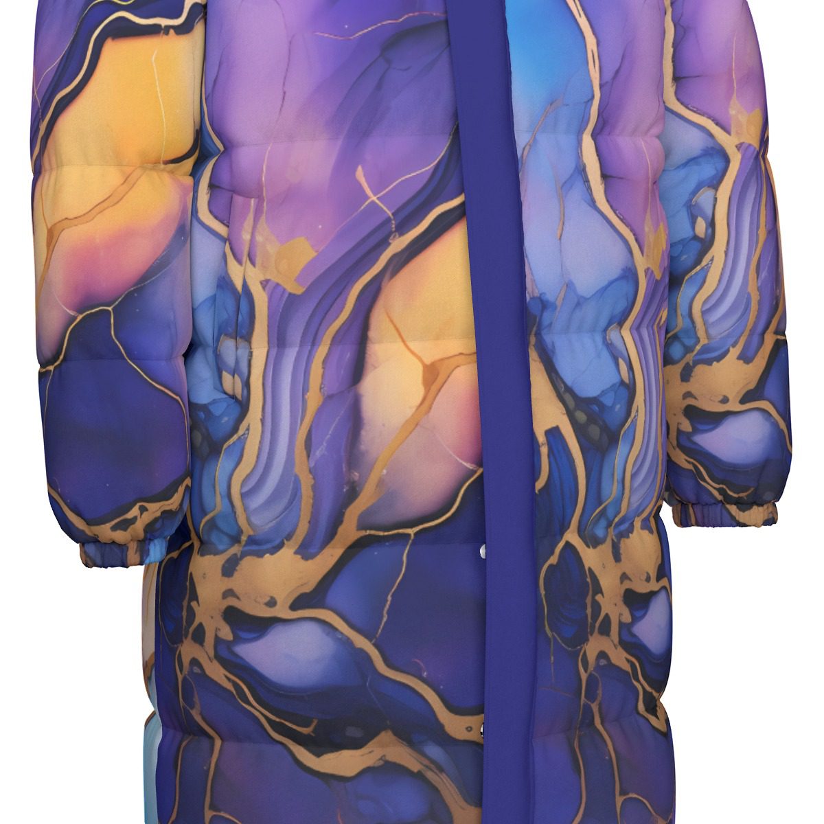 Alcohol Ink Design, This windproof and durable puff jacket is filled with a anti-drilling fabric shell that has a good performance of preventing the down from drilling from its surface. Filled with 90% high-quality white duck-down (all ducks are treated humanely during our production, no down is come from live-plucked or force-fed birds), it can keep warm during cold weather, being comfortable and lightweight to wear. With the combination of double zipper and snap closure, the side pocket can protect your hands from wind and cold weather. The long design can withstand more cold wind.