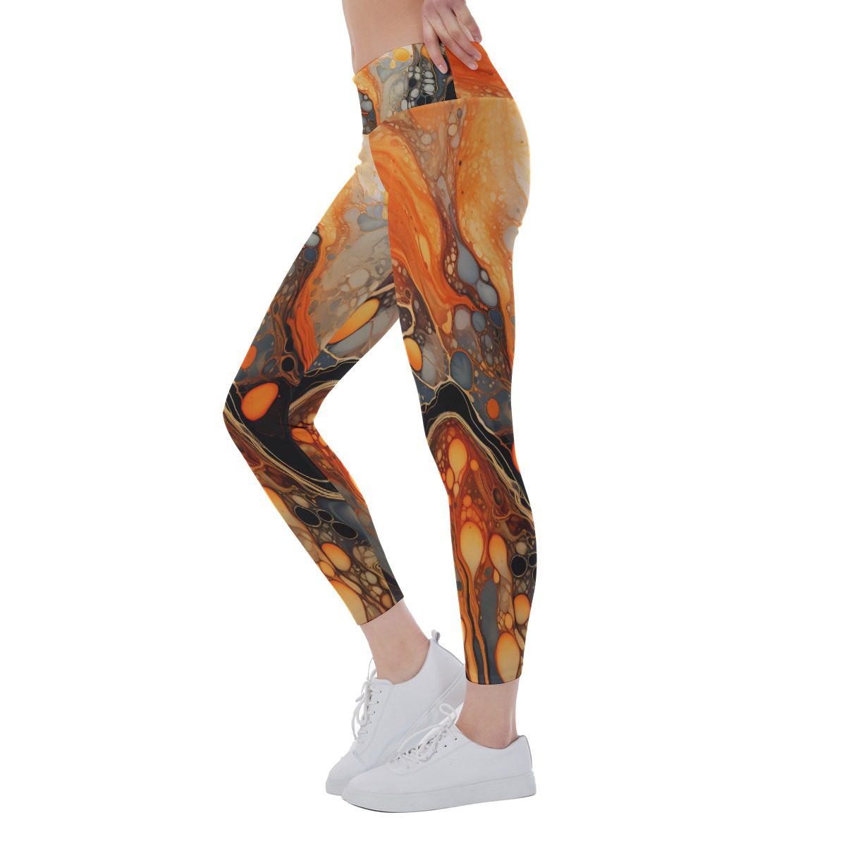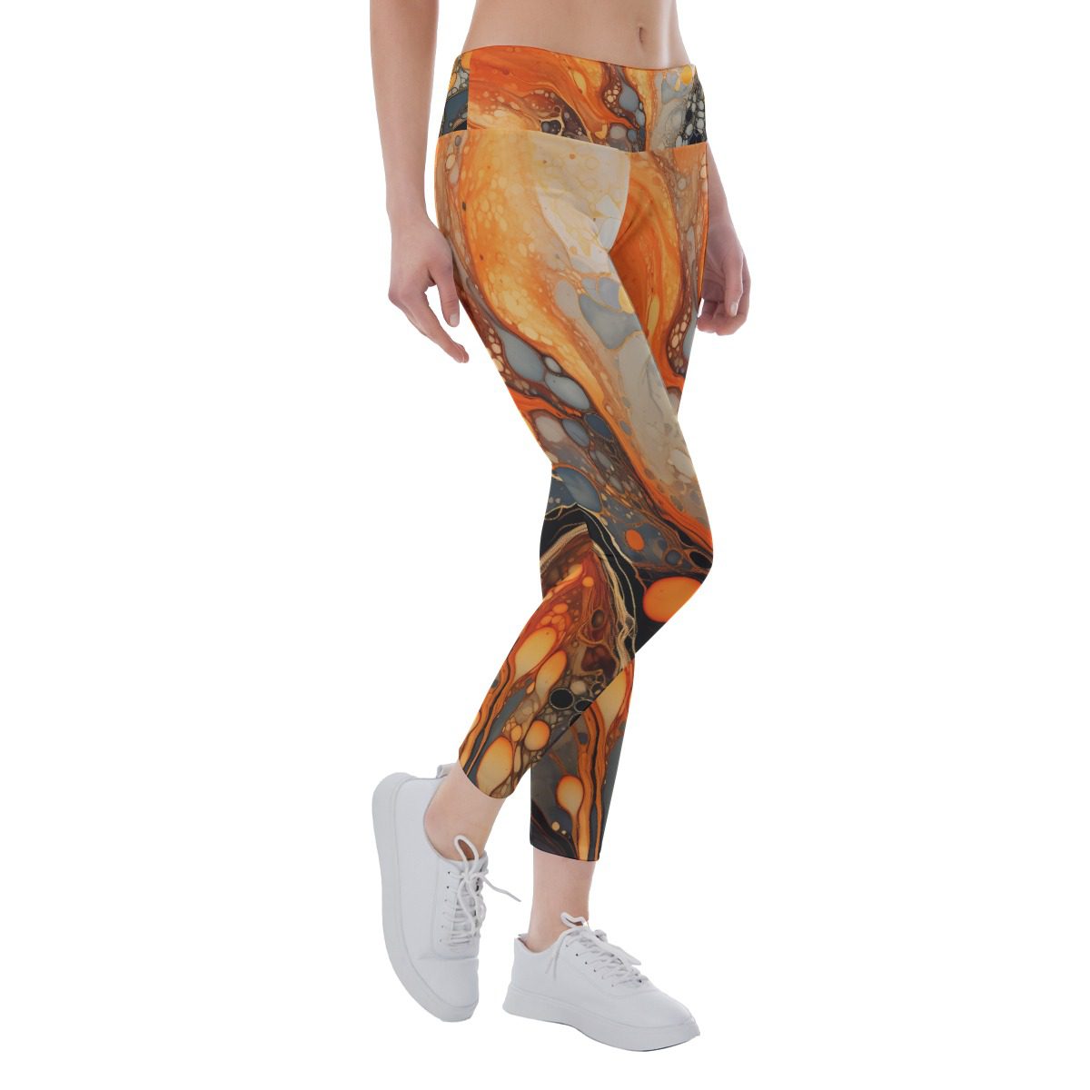 Alkohol Ink Orange Black Pattren Design, Super soft and friend to skin.Fabric is designed to contour perfectly to your body, giving you a streamlined look; Suitable for A Variety of Sports: Running, Yoga, Hiking, Fitness, Exercise, Jogging, Gym Ball Sports, Cycling and Daily casual wear.