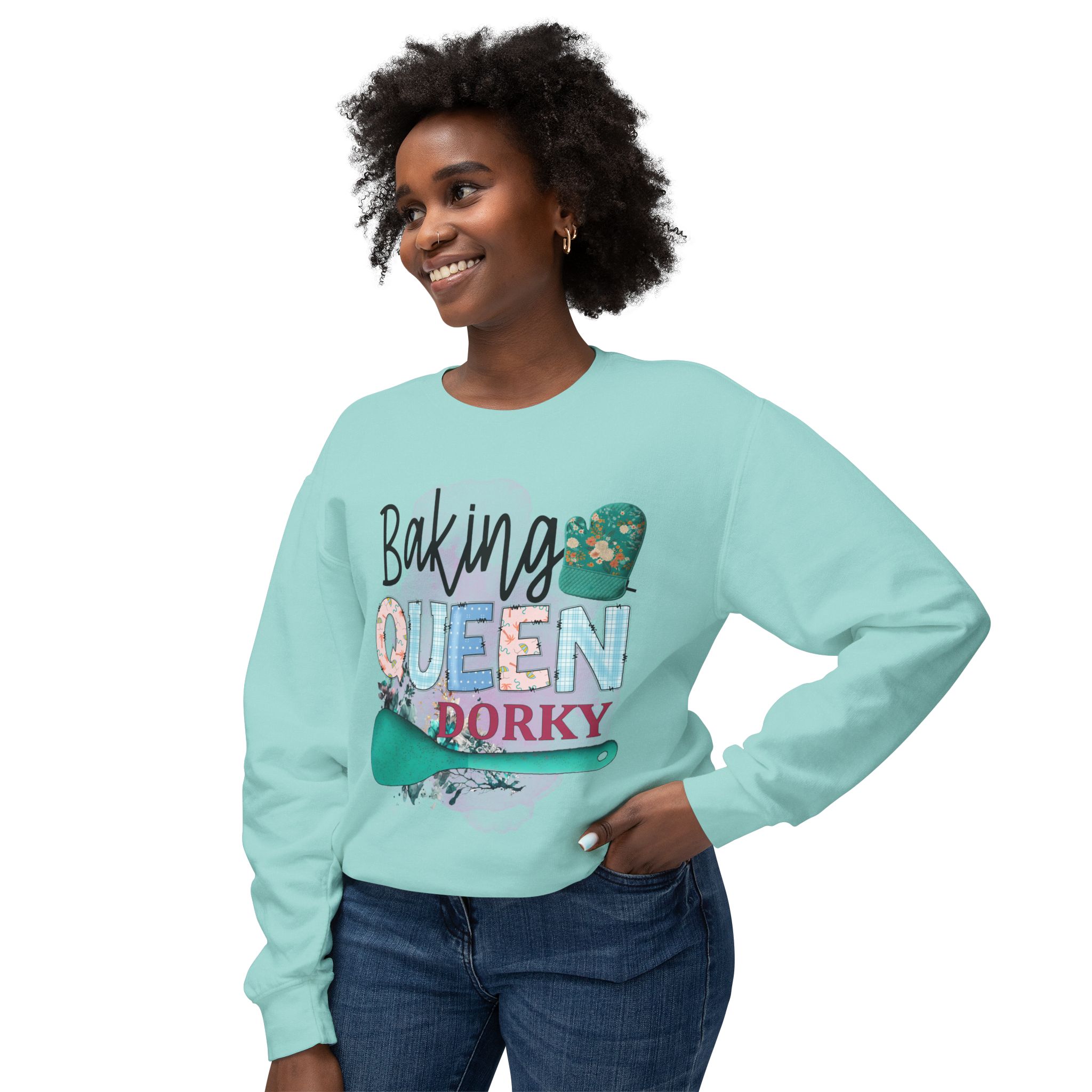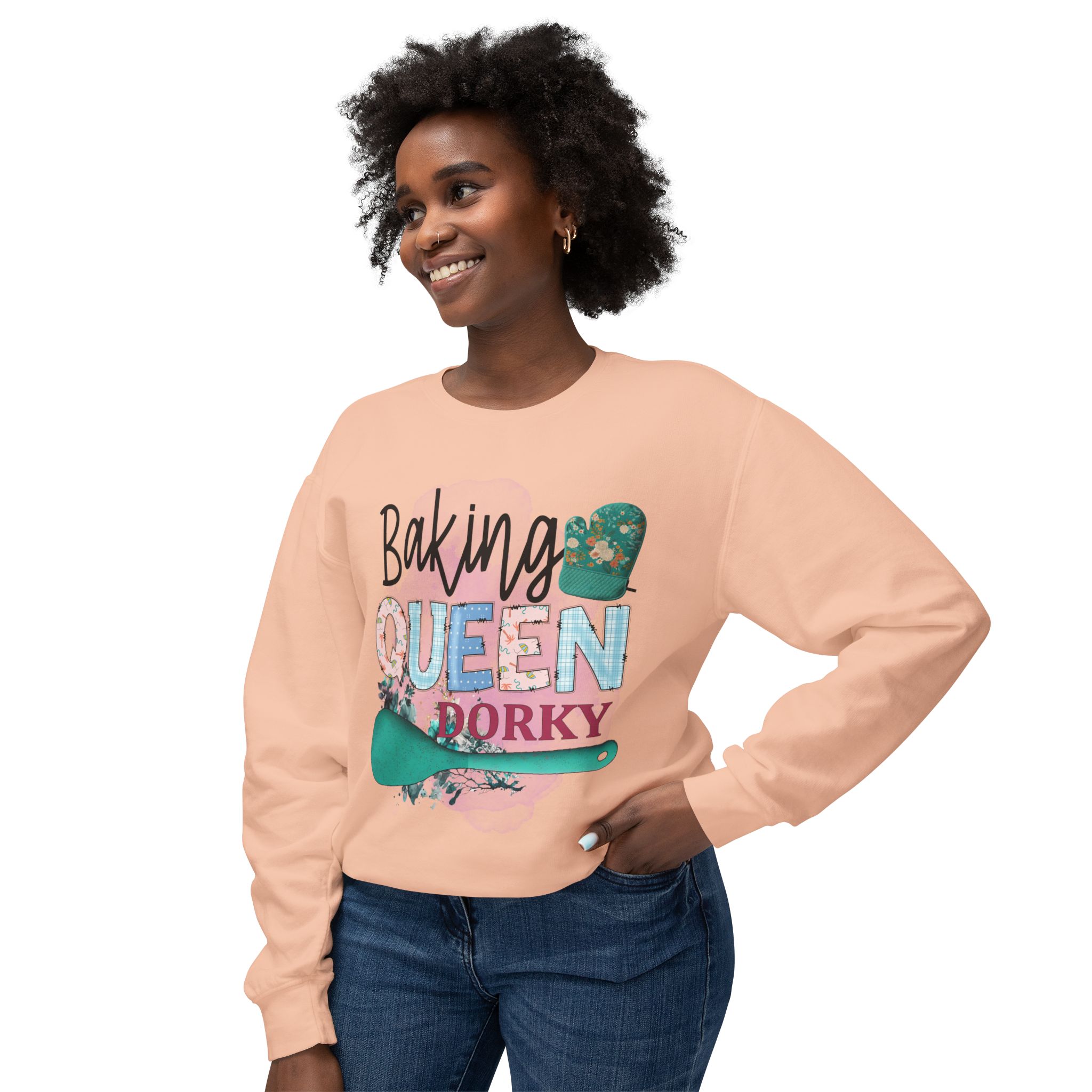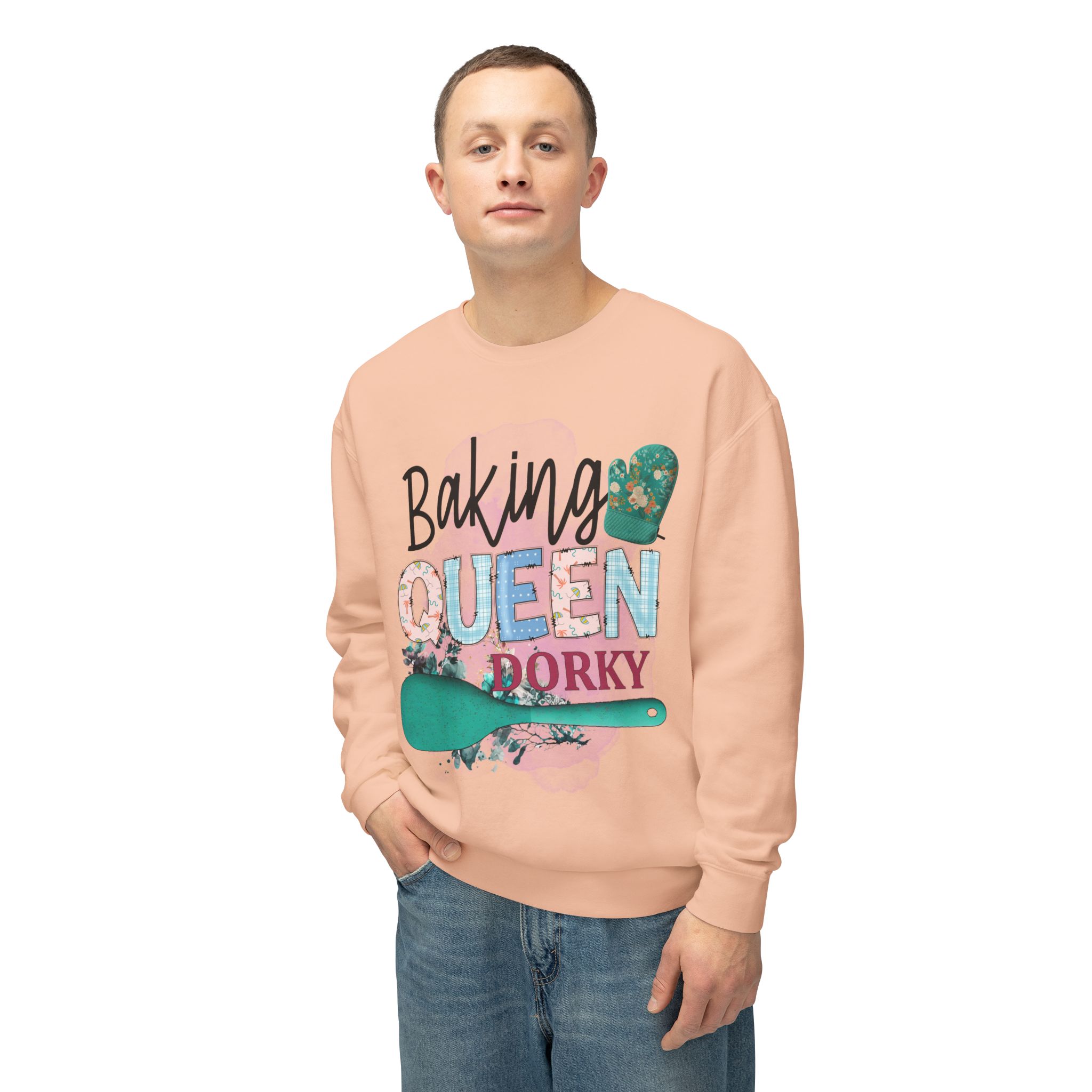 Baking queen dorky Design, This custom crewneck sweatshirt brings both incredible quality and amazing style to the mix. Made with soft, ring-spun cotton fabric with 100% cotton threads, it sits unmatched when it comes to softness. All sweatshirts feature a rolled forward shoulder and are printed with OEKO-TEX-certified low-impact dyes. Lastly, Comfort Colors is a proud member of the US Cotton Trust Protocol which means sustainable cotton sourcing that’s good for the environment.