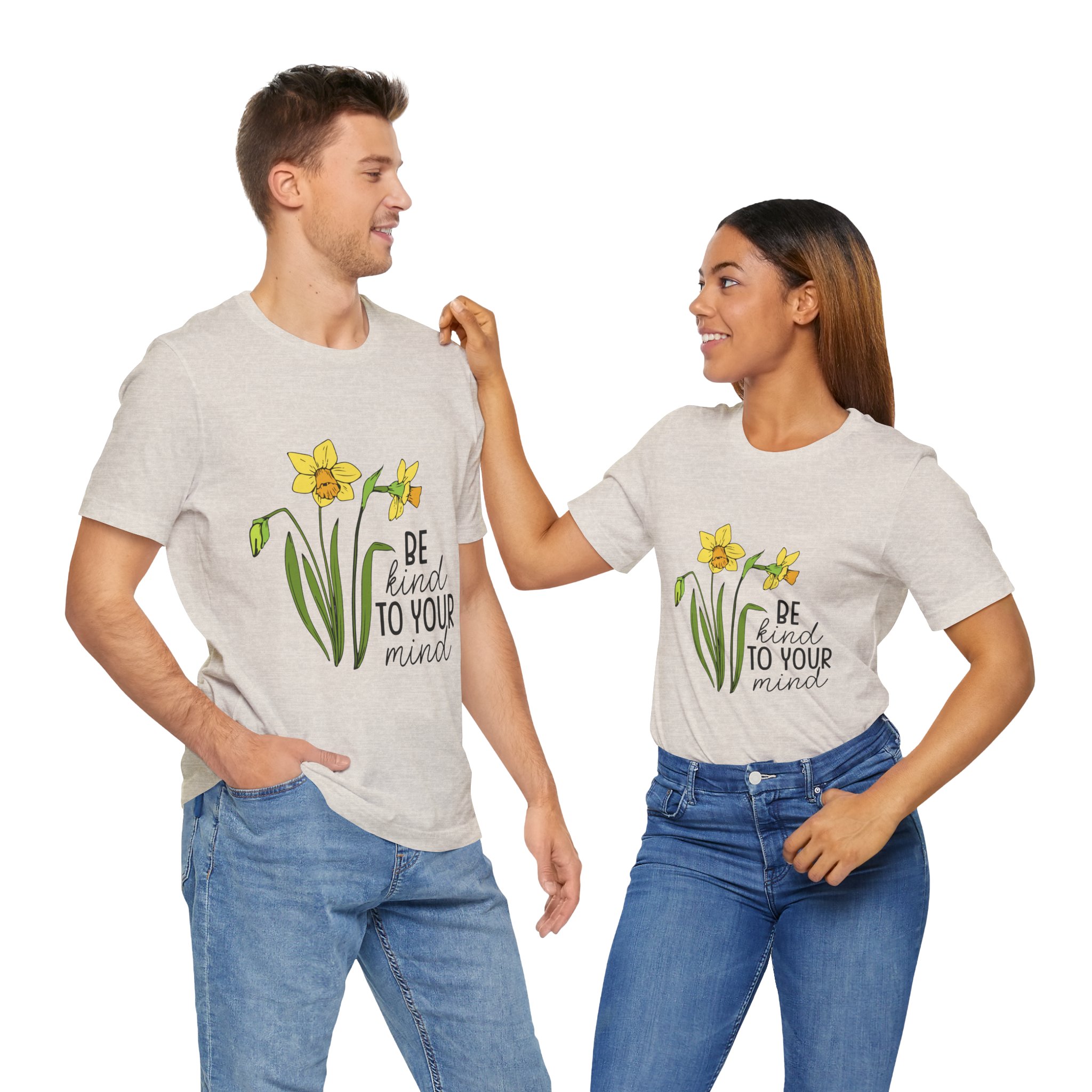 This T-Shirt features a ‘Be Kind To Your Mind’ quote with a beautiful flower design, giving off a positive and uplifting vibe. It is perfect for casual wear and can be easily layered for any occasion. Relevant for those who value mindfulness and self-care, suitable for Mental Health Awareness Month and everyday wear.