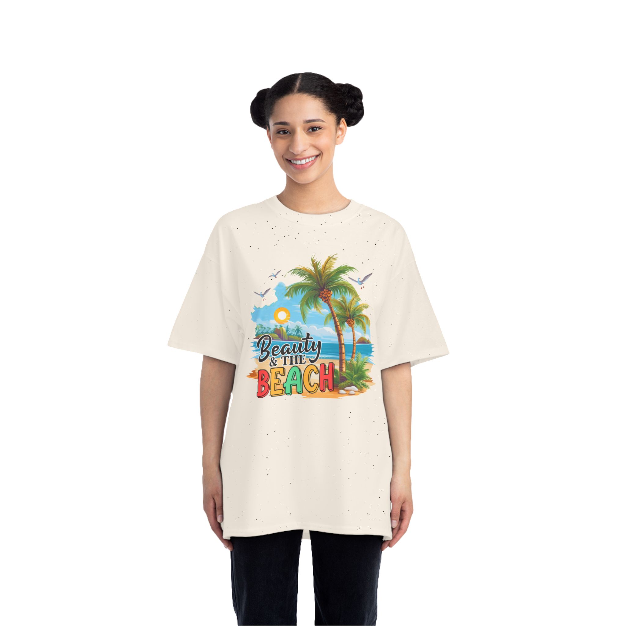 Beauty and the beach Design, These personalized Beefy-T® short-sleeve tees can now accommodate your personal designs and become a stylish wardrobe staple. Made with 100% pre-shrunk, ring-spun cotton for supreme softness in any occasion. With shoulder-to-shoulder taping, and double-needle stitched, lay-flat collars, sleeves, and bottom hem, these personalized t-shirts pass any durability test with flying colors.