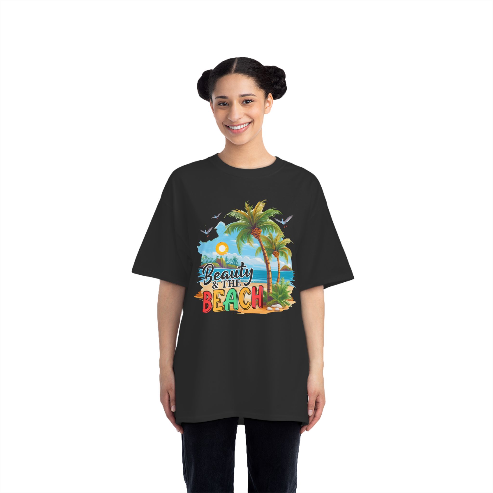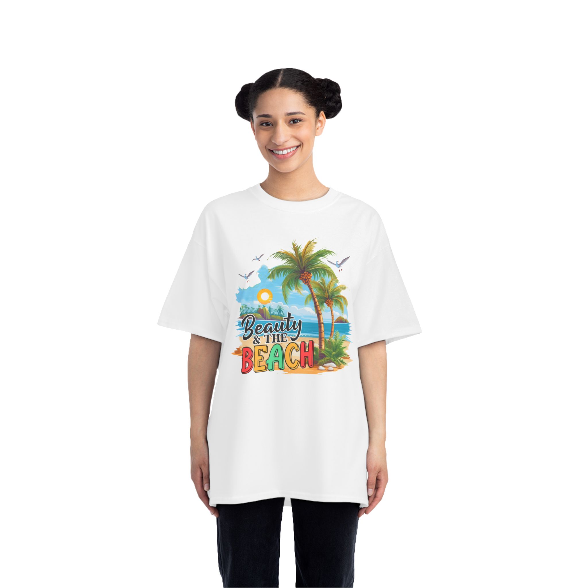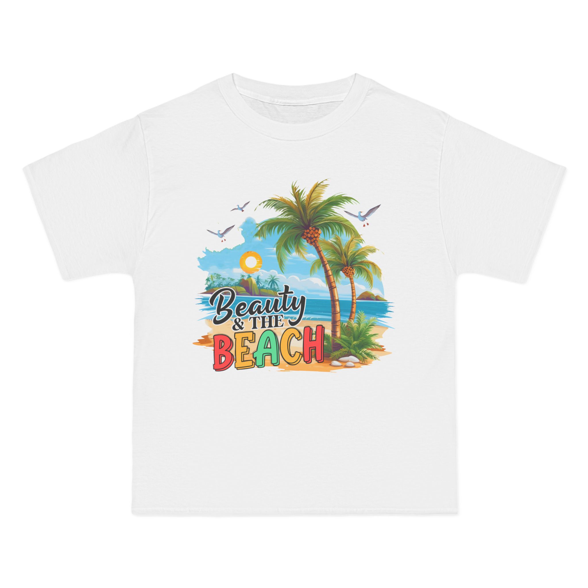 Beauty and the beach Design, These personalized Beefy-T® short-sleeve tees can now accommodate your personal designs and become a stylish wardrobe staple. Made with 100% pre-shrunk, ring-spun cotton for supreme softness in any occasion. With shoulder-to-shoulder taping, and double-needle stitched, lay-flat collars, sleeves, and bottom hem, these personalized t-shirts pass any durability test with flying colors.