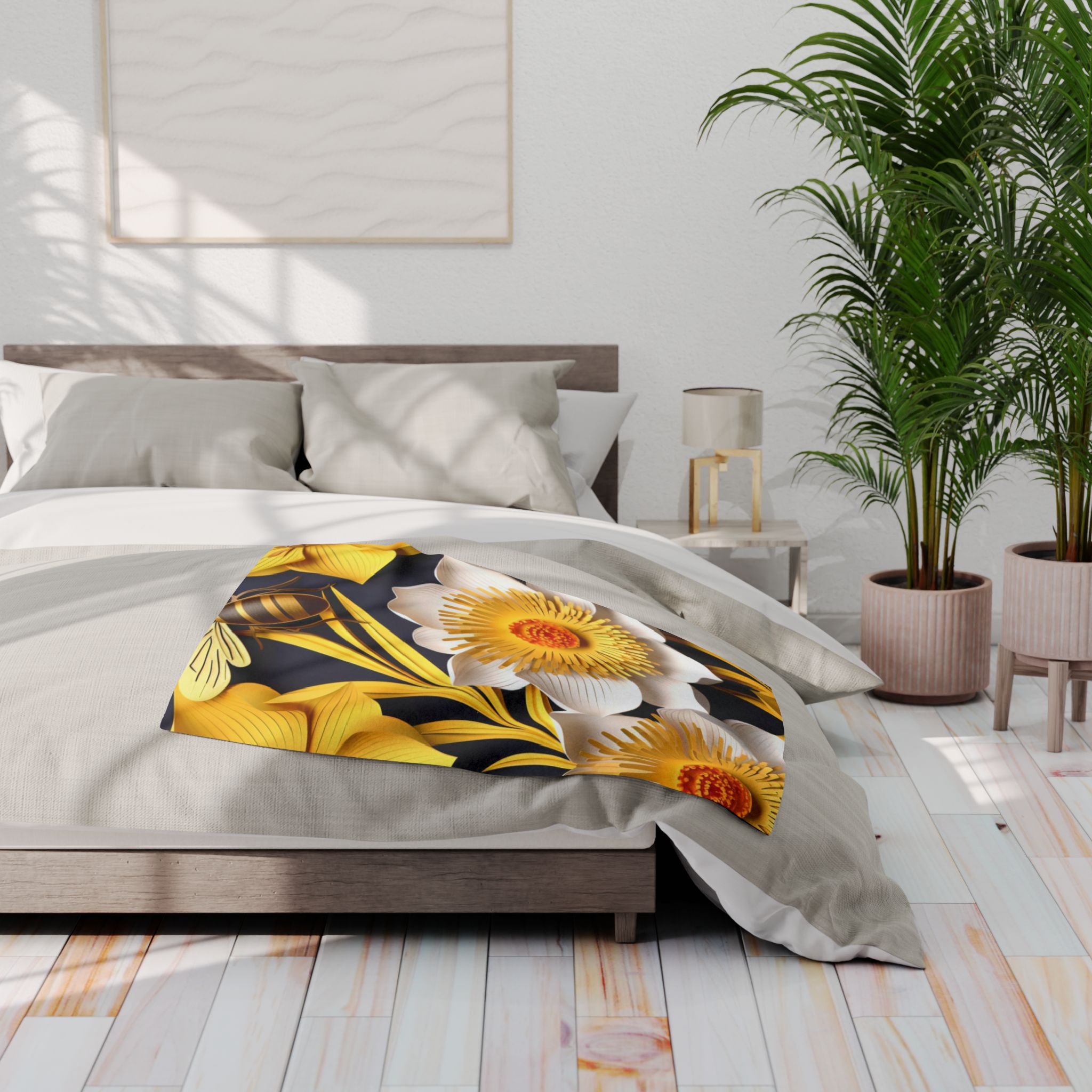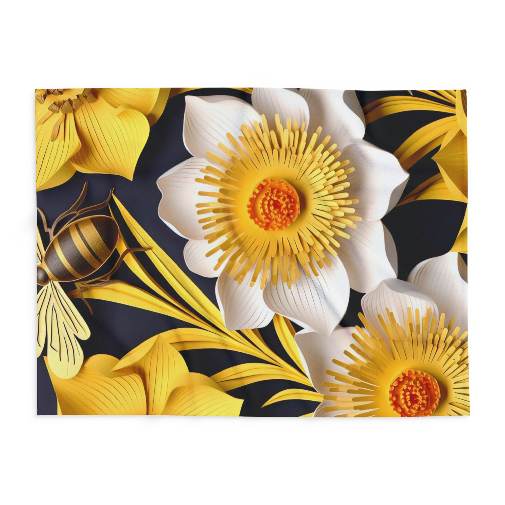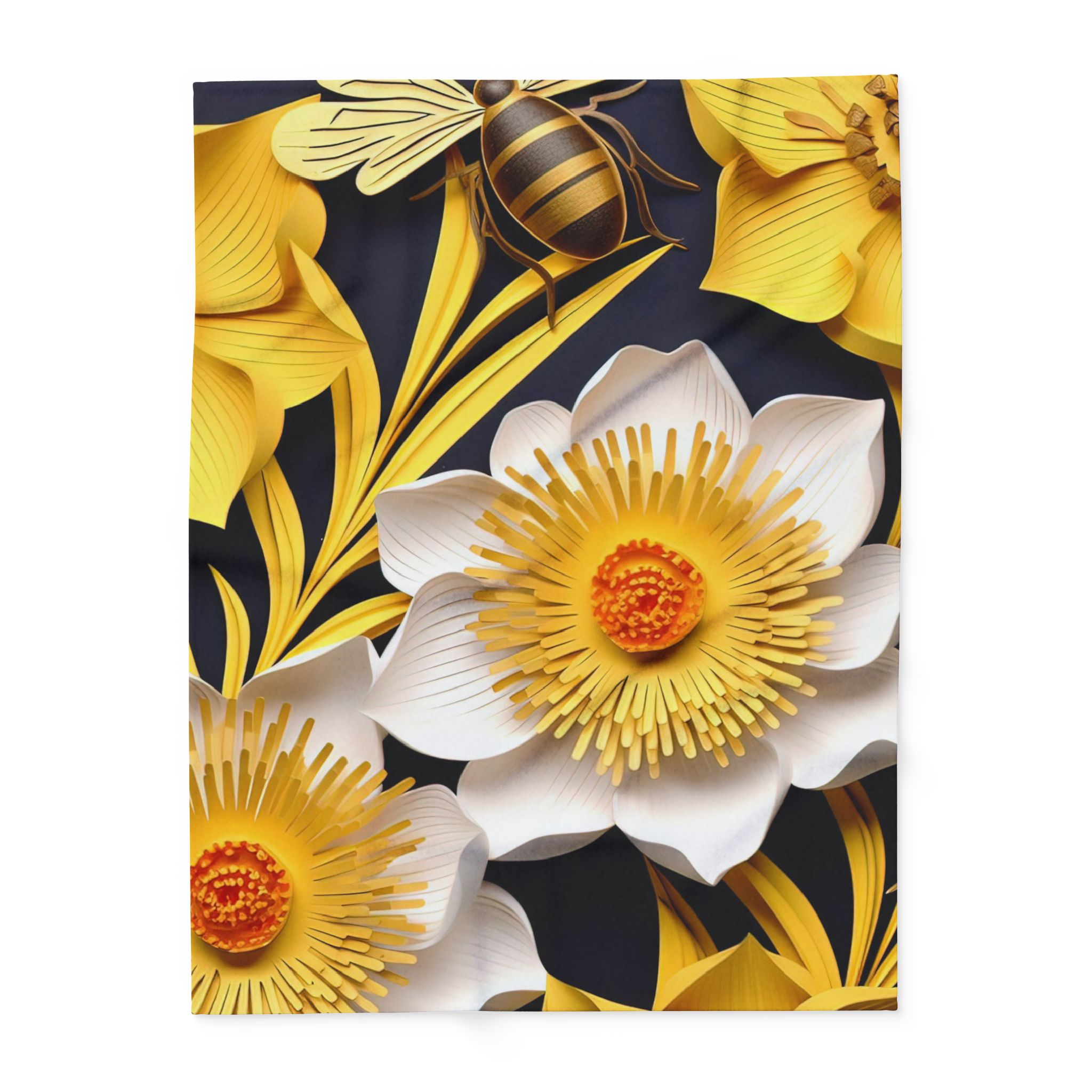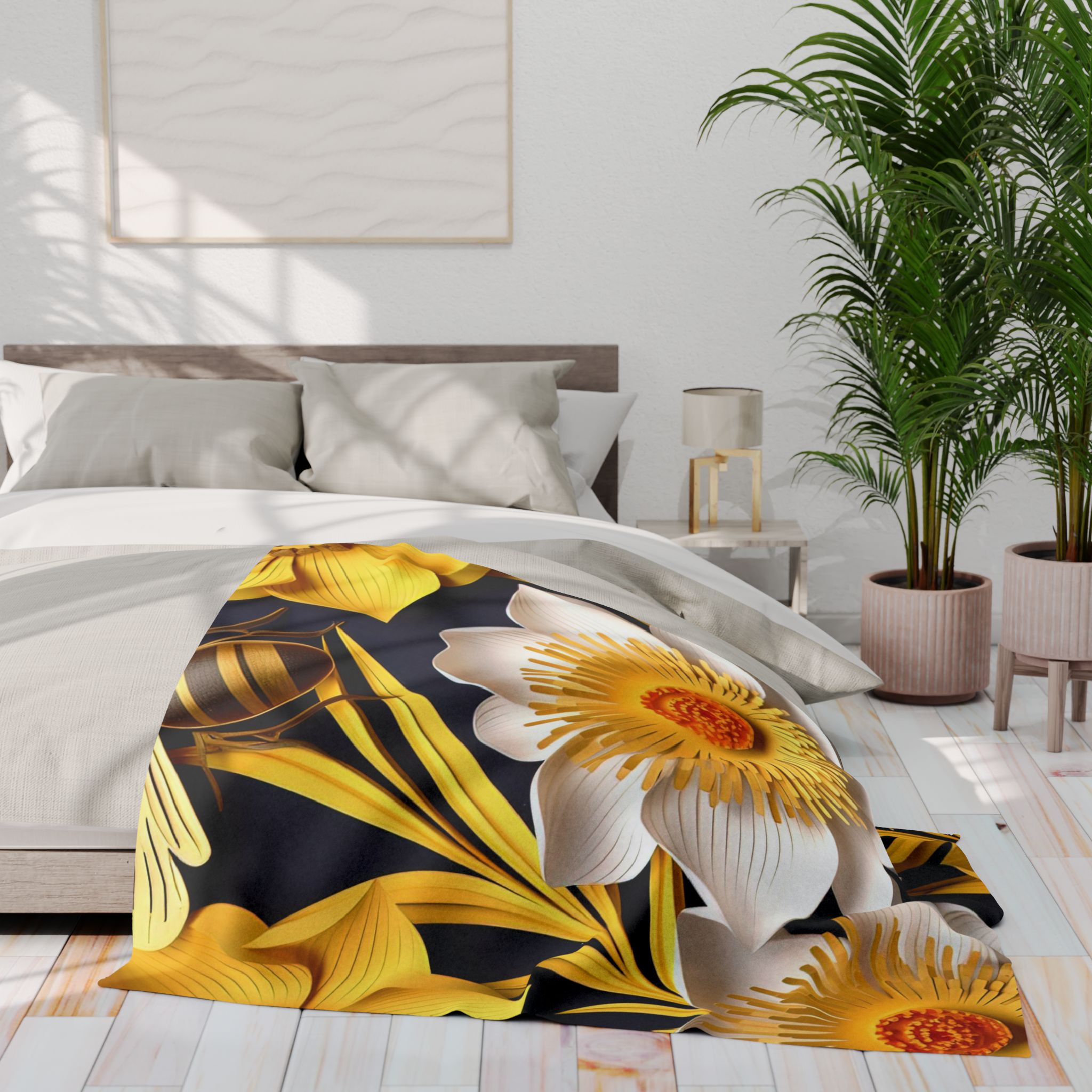 This soft polyester blanket featuring 3D spring yellow flowers with a bee gives a cozy and comforting vibe, perfect for snuggling up on chilly evenings. Ideal for nature lovers and those who appreciate vibrant floral designs. Relevant for springtime celebrations, Mother’s Day, and Easter.
