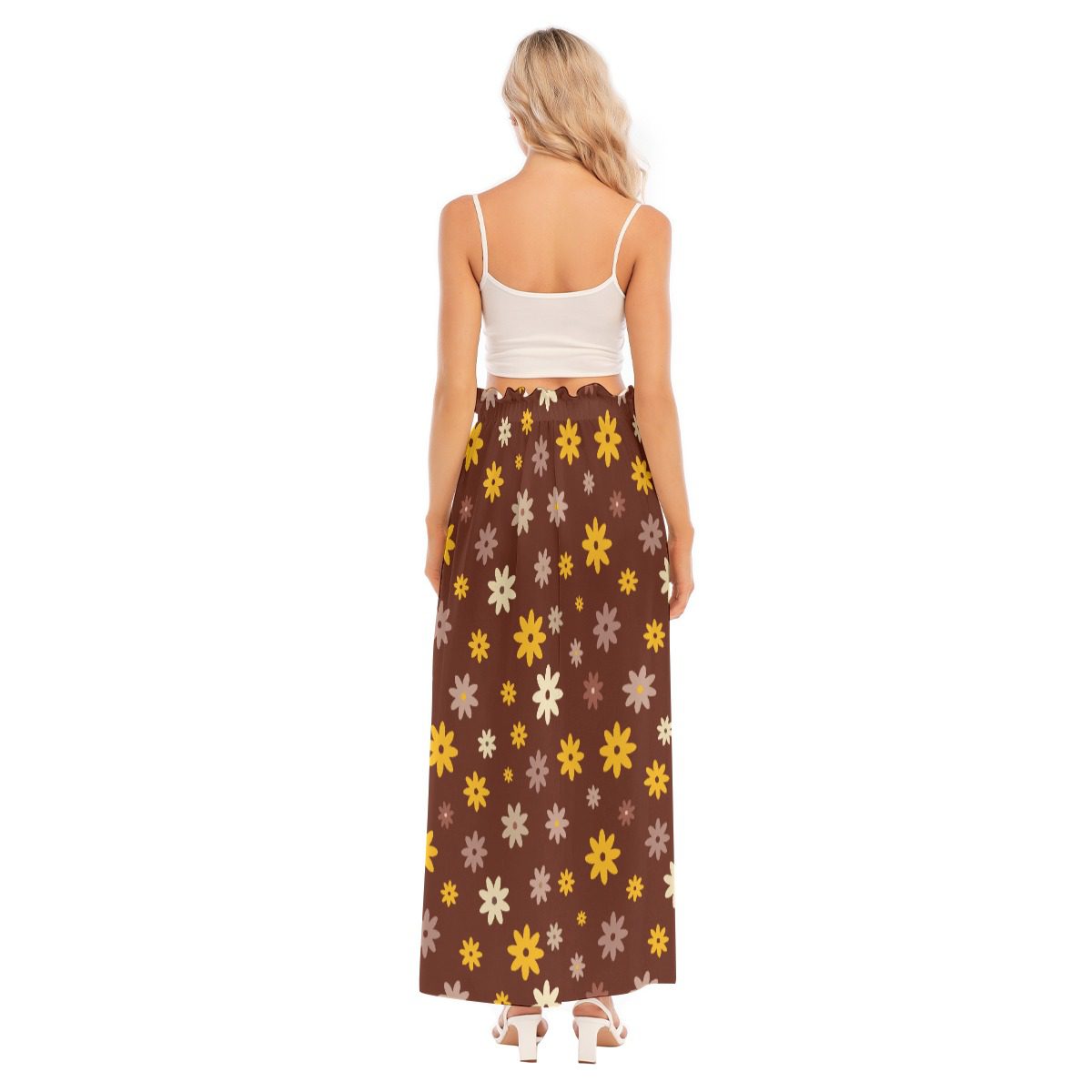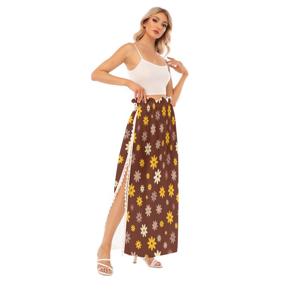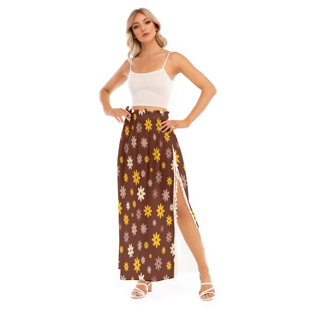 Brown Easter Flower Pattern Design, This Charming high waist A-Line Shape dress is made of soft and lightweight fabric that can keep you cool and comfortable all day. The elastic waist makes it comfortable to wear and dress on / off easily.The fringed edges and high-side slits design are definitely the trademarks of the whole skirt.Â