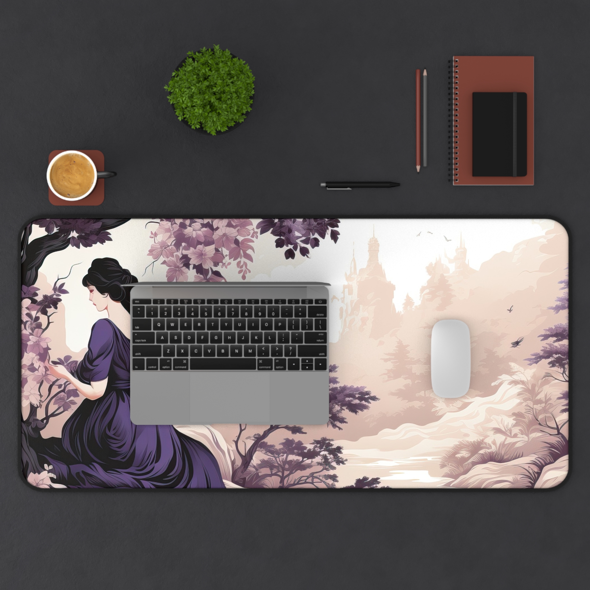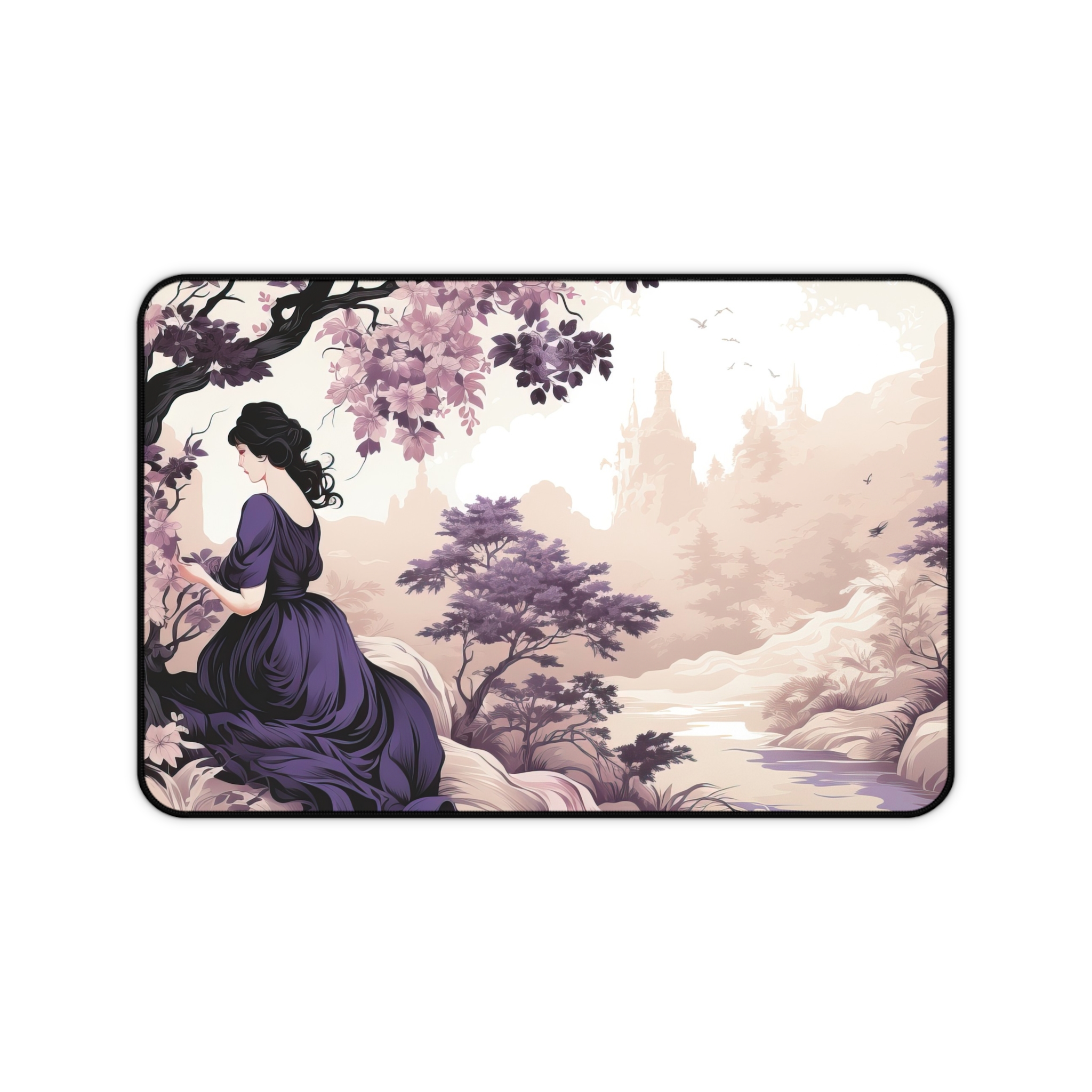 Cameos in Cream Lavender Girl Illustration Design, This fully customizable desk mat is perfect for that extra personal touch at work or in your home office. Made of 3mm thick neoprene material, it has an anti-slip backing and a hemmed edge for durability and stability. Pick it in three sizes 12” × 18”, 12” × 22” & 32″ × 16″, and glow up your workspace.