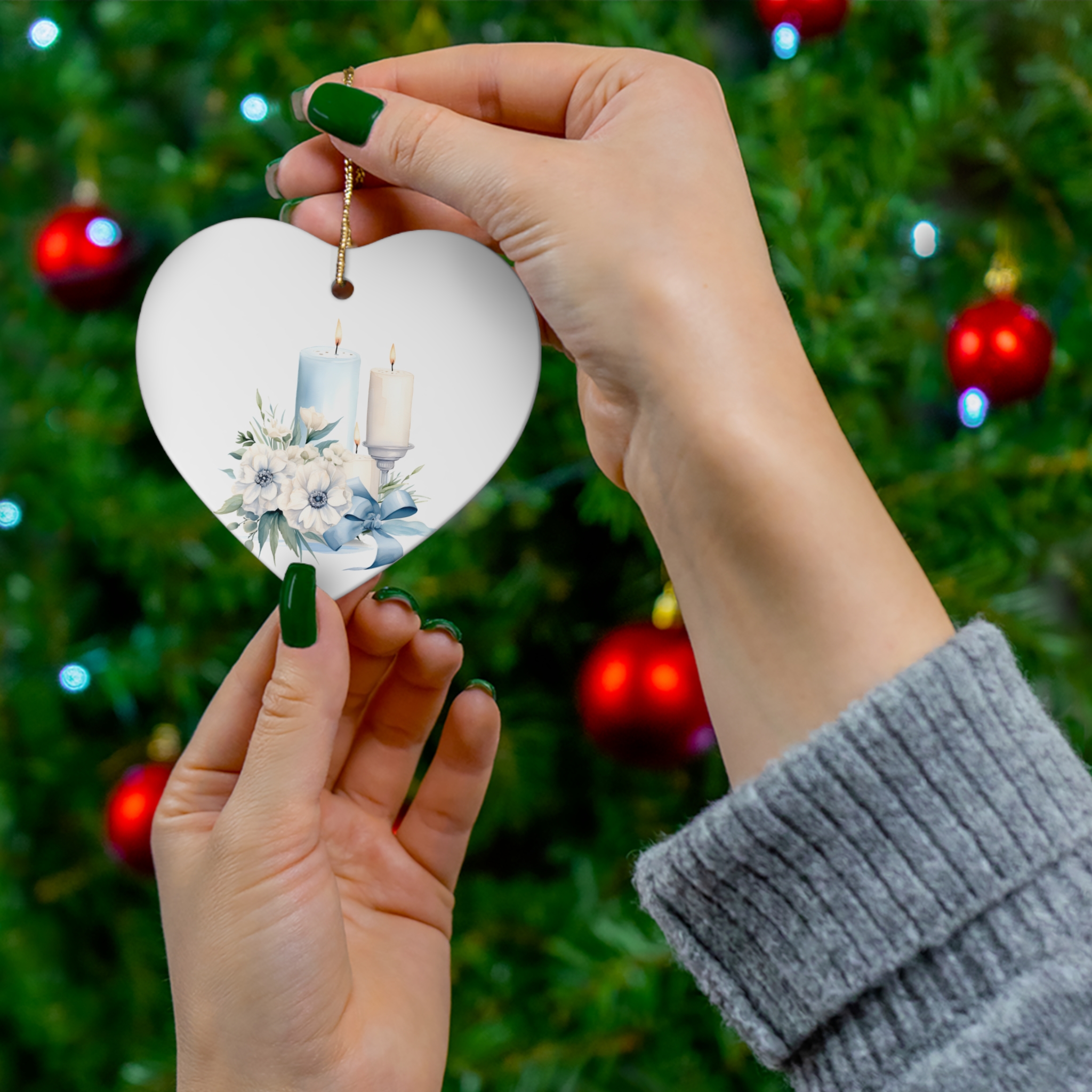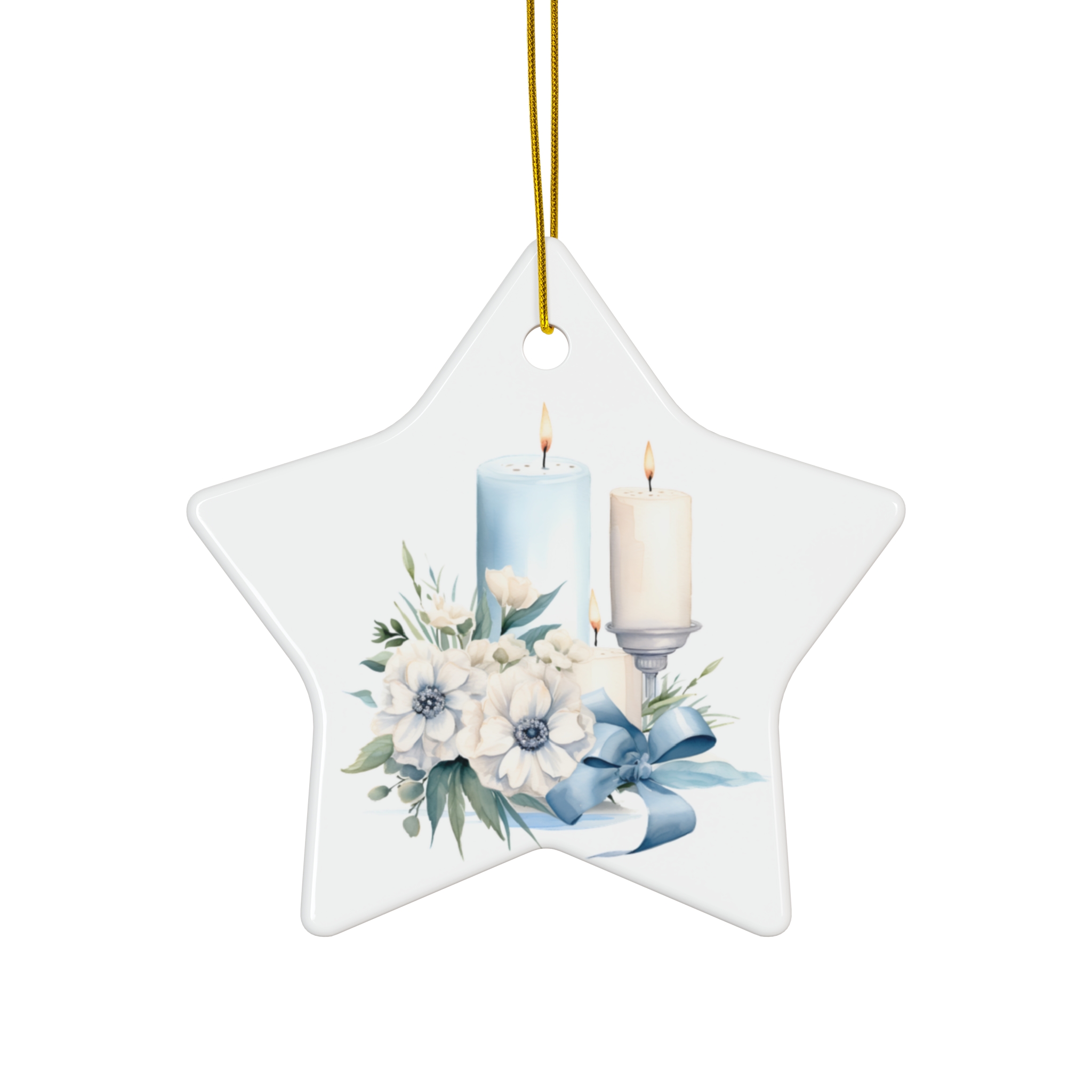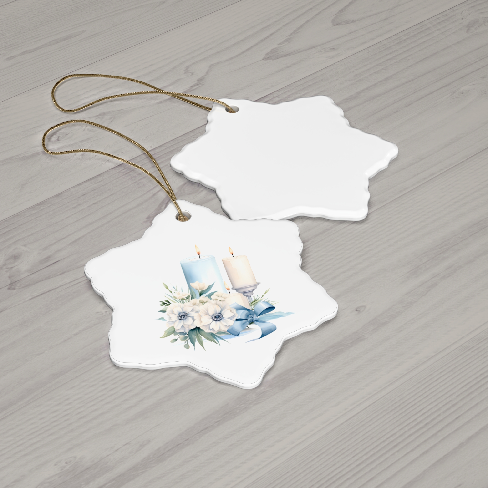 This Watercolor Botanical Candle ceramic ornament features vibrant colors and a glossy finish, adding a touch of nature to your holiday decor. Perfect for those who love botanical designs and want to add a unique element to their Christmas tree or festive decorations.