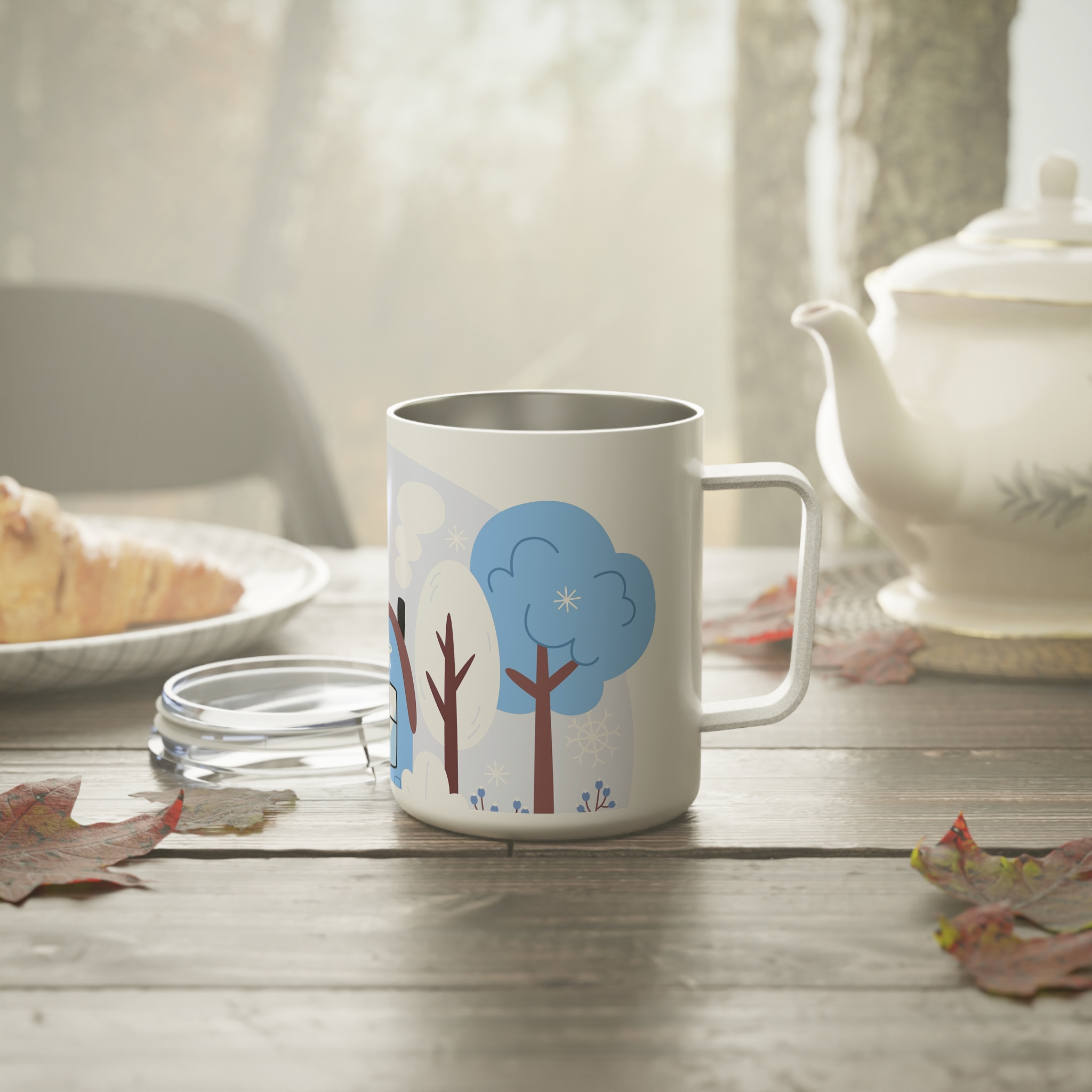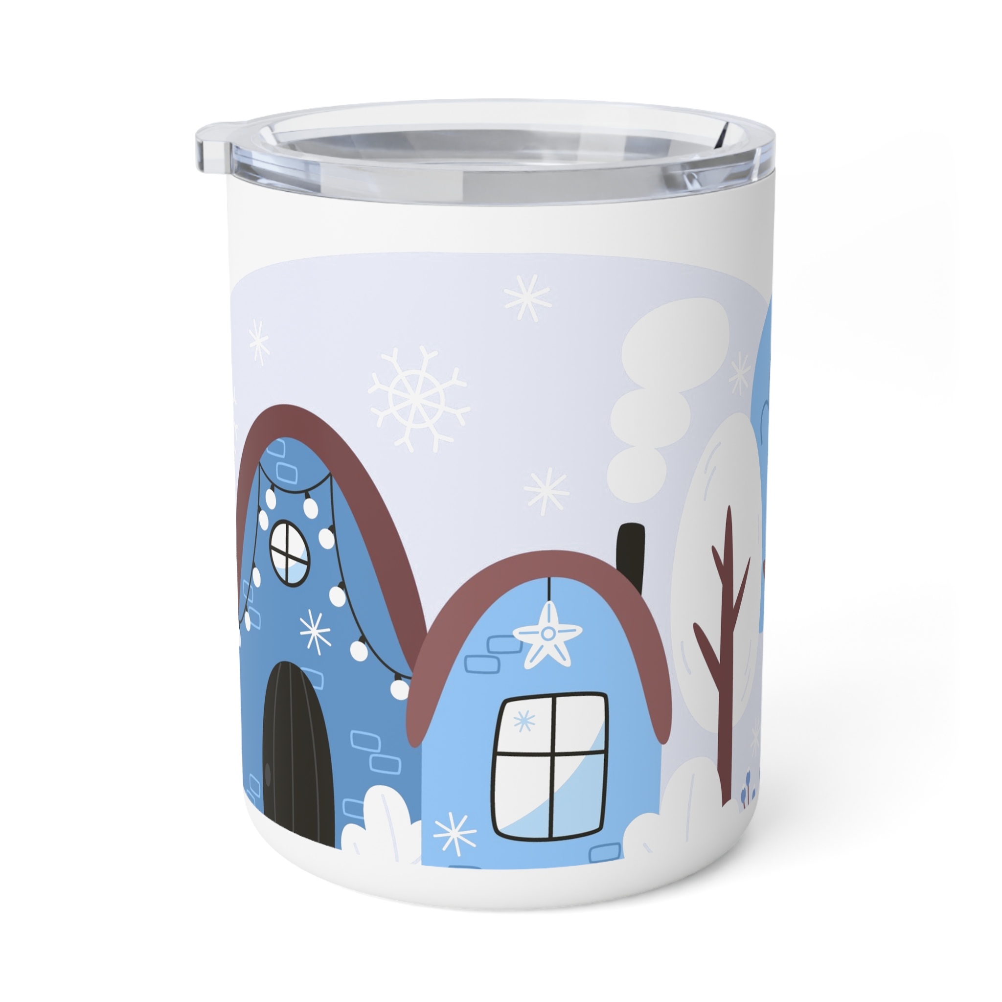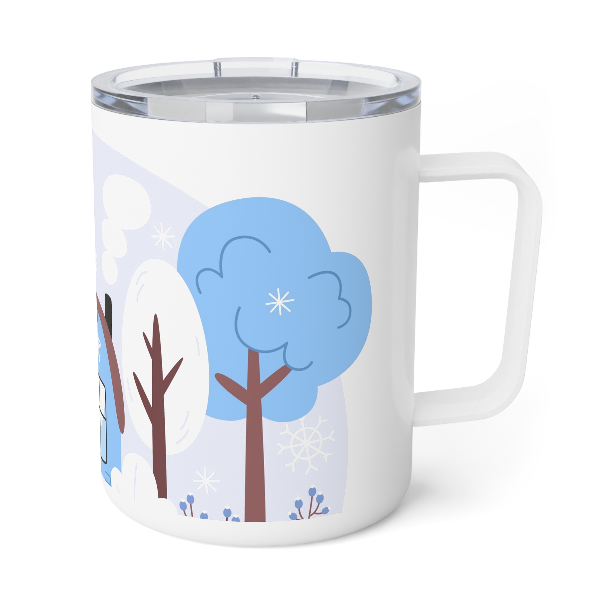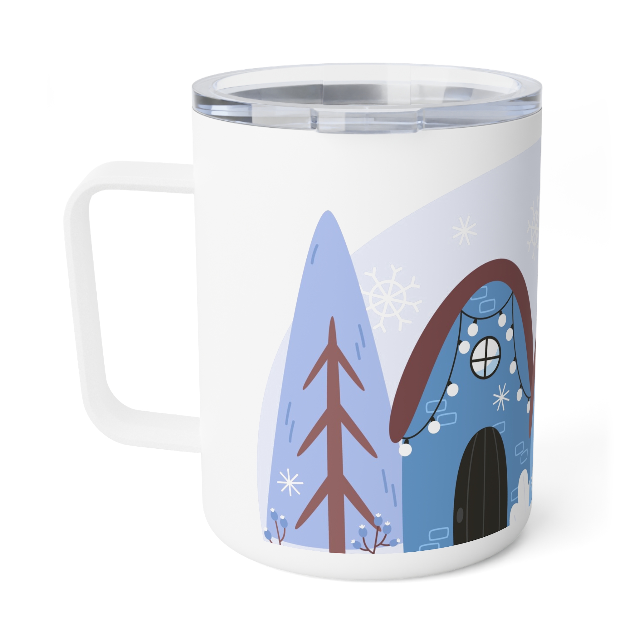 This insulated coffee mug features a Winter Snow Background Design, perfect for cozy mornings and chilly days. It keeps drinks warm with its double-wall insulation and spill-resistant acrylic lid. Ideal for coffee lovers and winter enthusiasts, this mug is great for enjoying hot beverages during the holiday season.