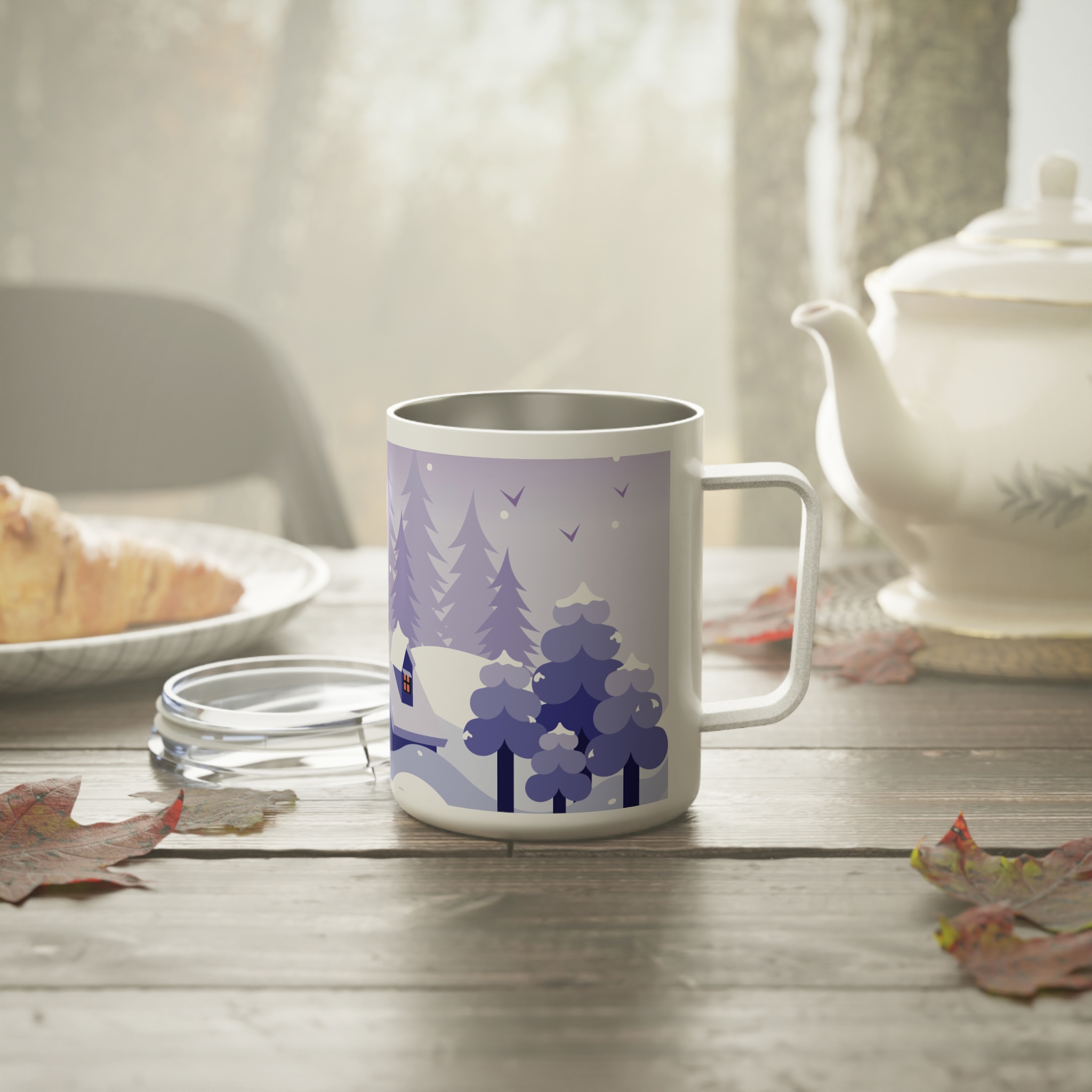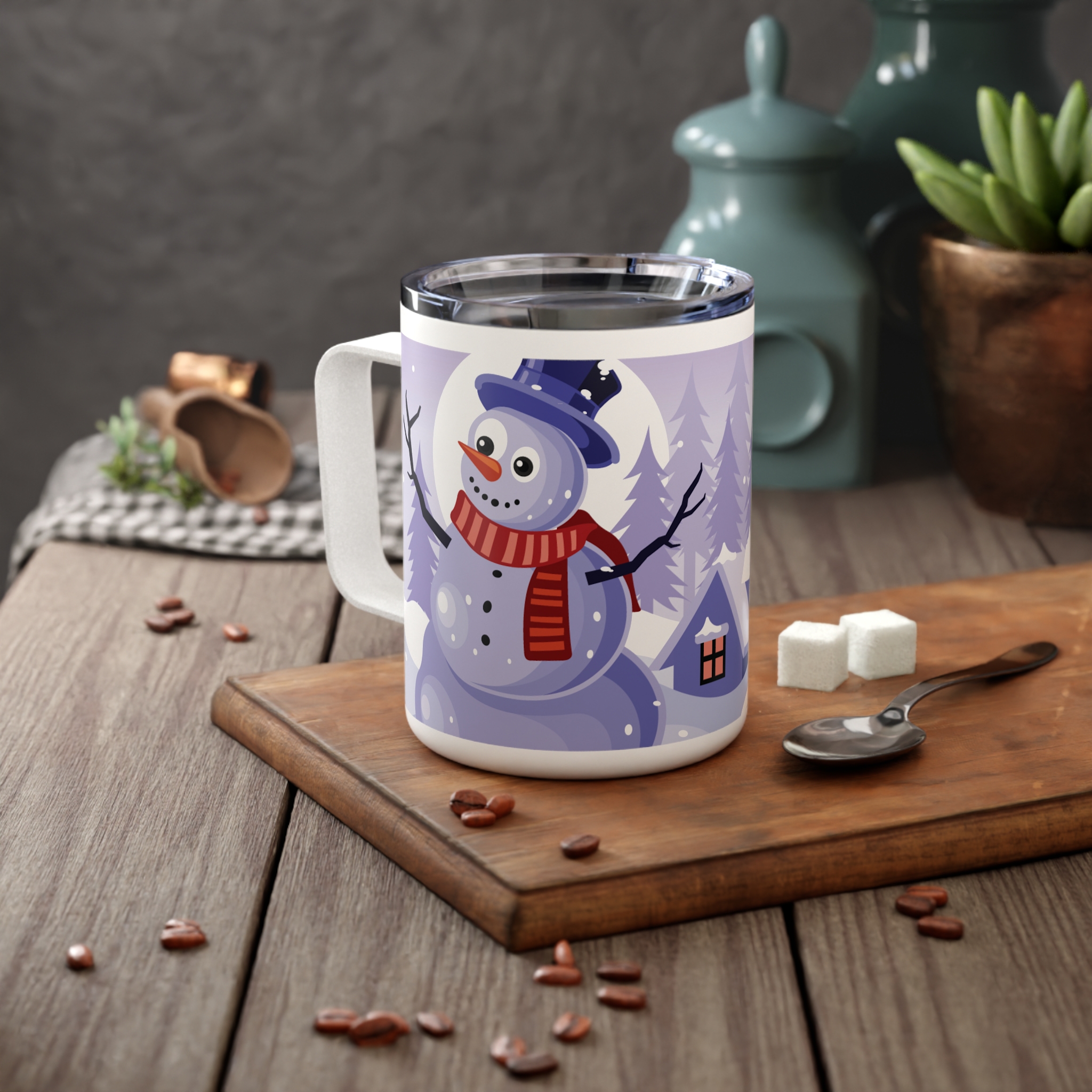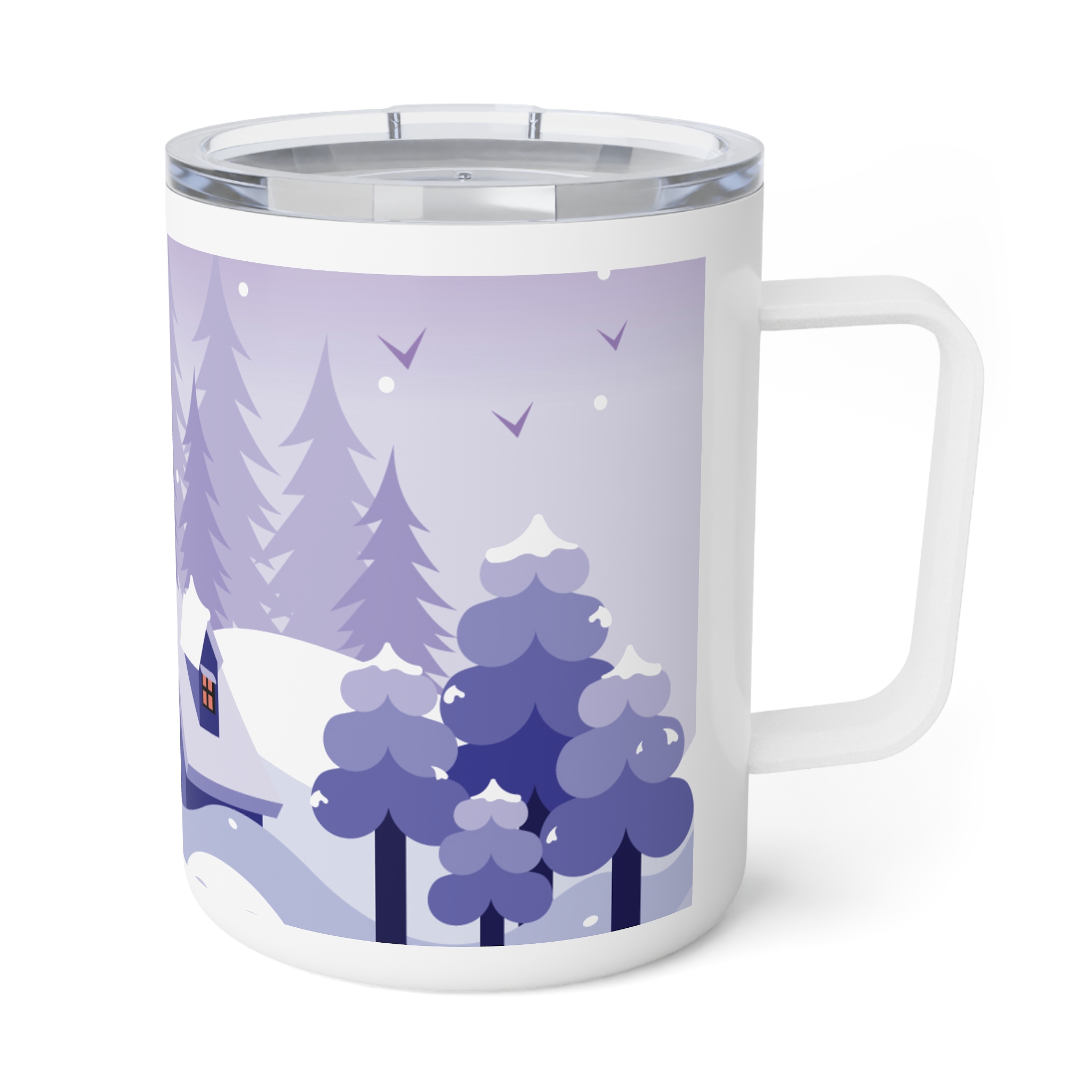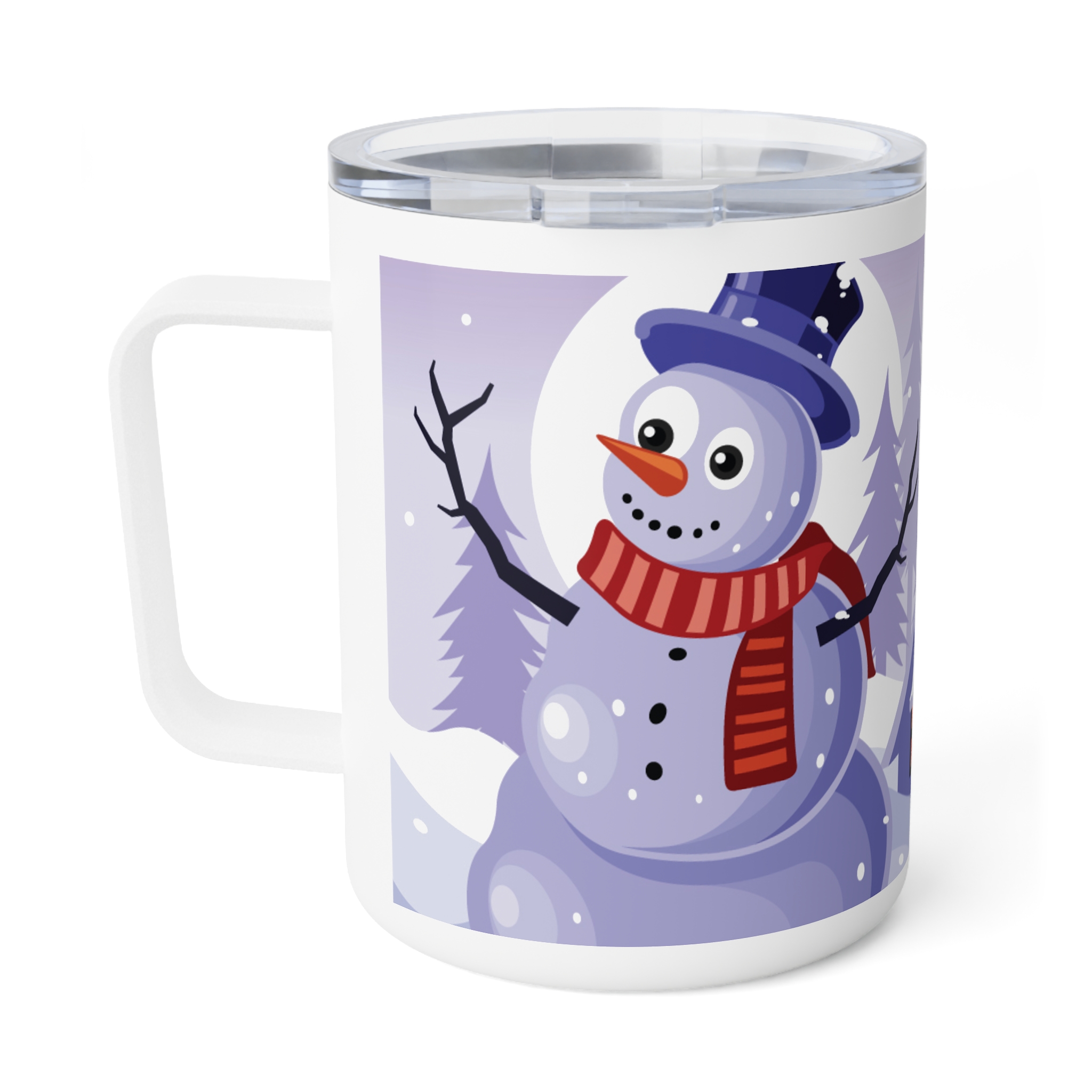This insulated coffee mug features a Winter Snow Background Design, perfect for cozy mornings and chilly days. It keeps drinks warm with its double-wall insulation and spill-resistant acrylic lid. Ideal for coffee lovers and winter enthusiasts, this mug is great for enjoying hot beverages during the holiday season.