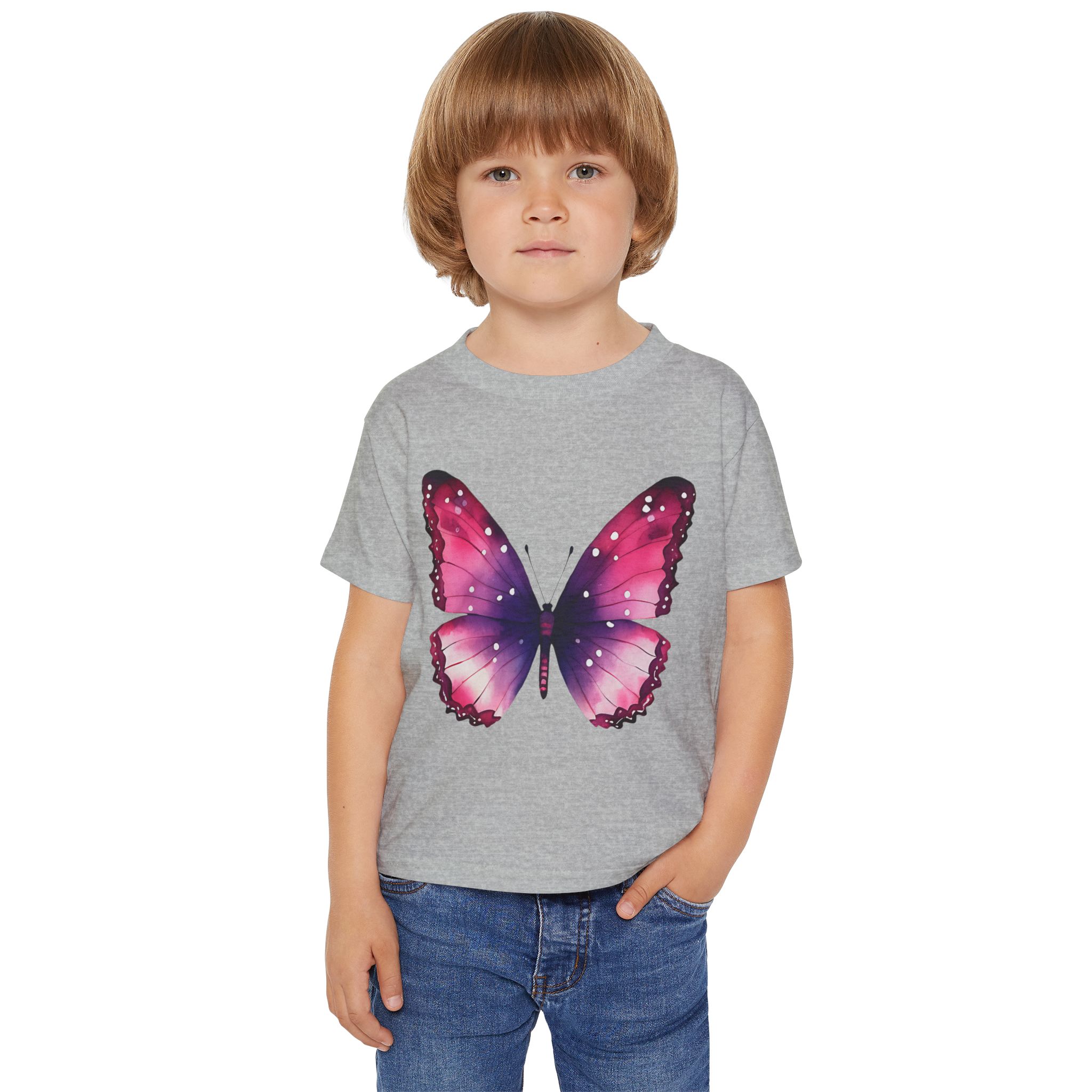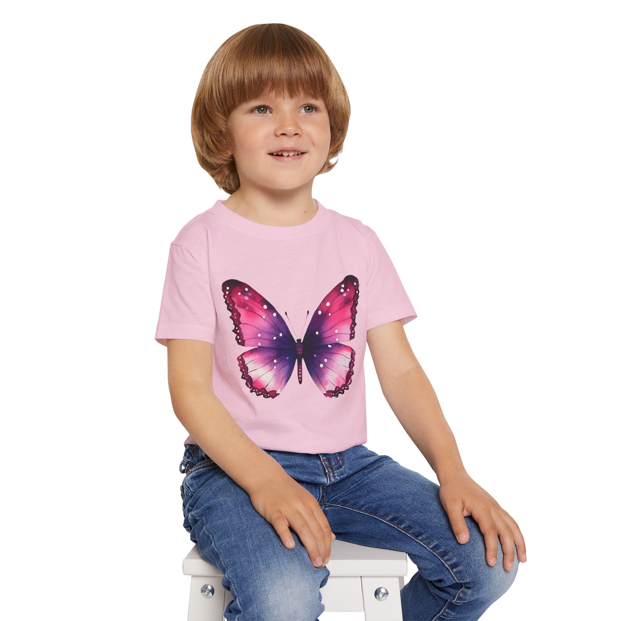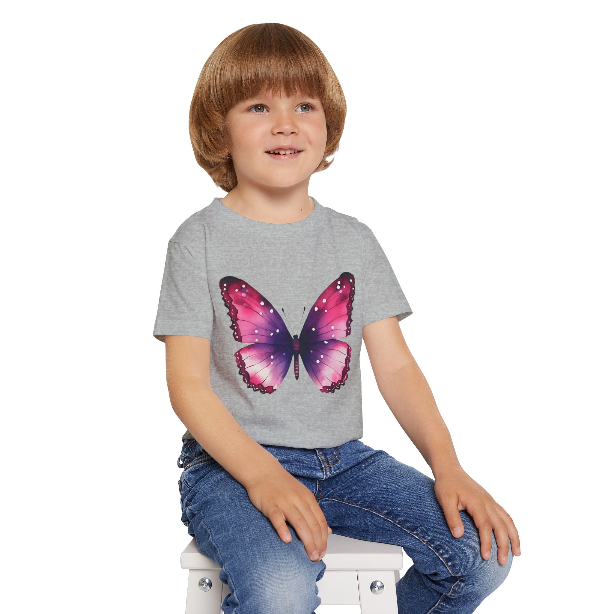 Colorful Butterfly Design, The Gildan 5100P Heavy Cotton™ tee for toddlers brings incredible style and ecologic sensibility to the table. Made with 100% cotton (Sport Grey is 90/10 cotton/polyester), each tee offers top-tier softness to the touch. Meanwhile, the classic width and rib collar add a nice touch of style and all-day comfort. Gildan is a proud member of the US Cotton Trust Protocol and each tee is printed with OEKO-TEX certified, low-impact dyes.