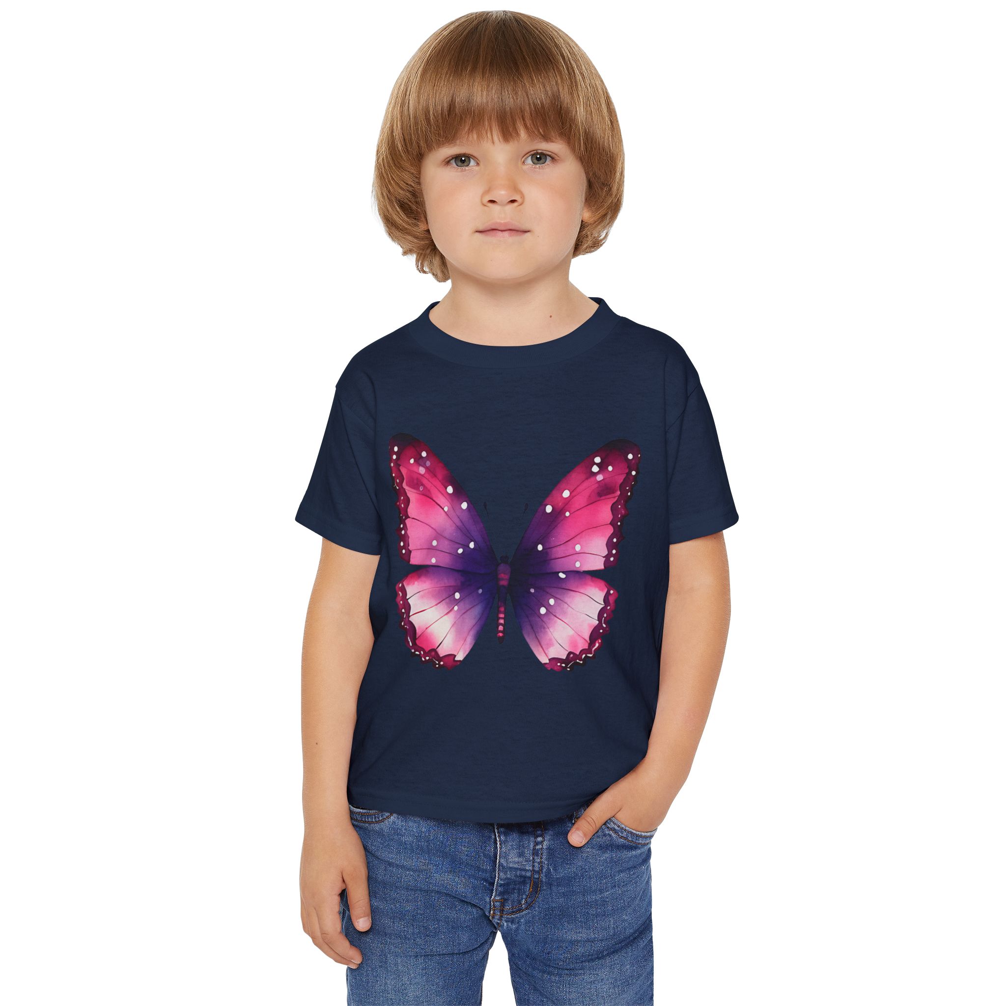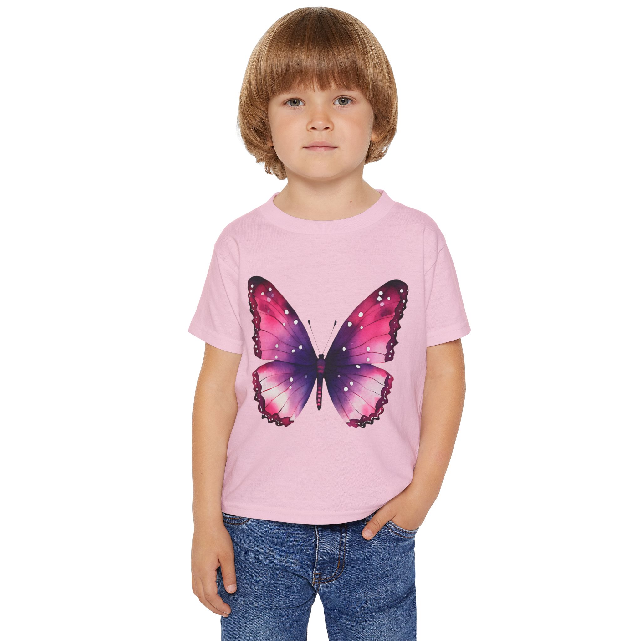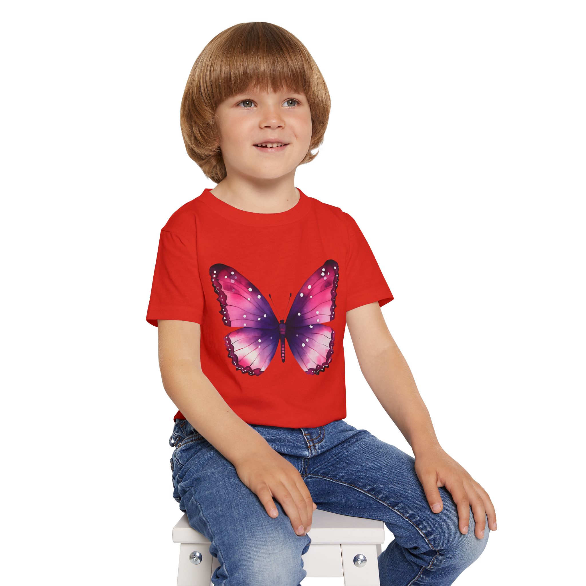 Colorful Butterfly Design, The Gildan 5100P Heavy Cotton™ tee for toddlers brings incredible style and ecologic sensibility to the table. Made with 100% cotton (Sport Grey is 90/10 cotton/polyester), each tee offers top-tier softness to the touch. Meanwhile, the classic width and rib collar add a nice touch of style and all-day comfort. Gildan is a proud member of the US Cotton Trust Protocol and each tee is printed with OEKO-TEX certified, low-impact dyes.