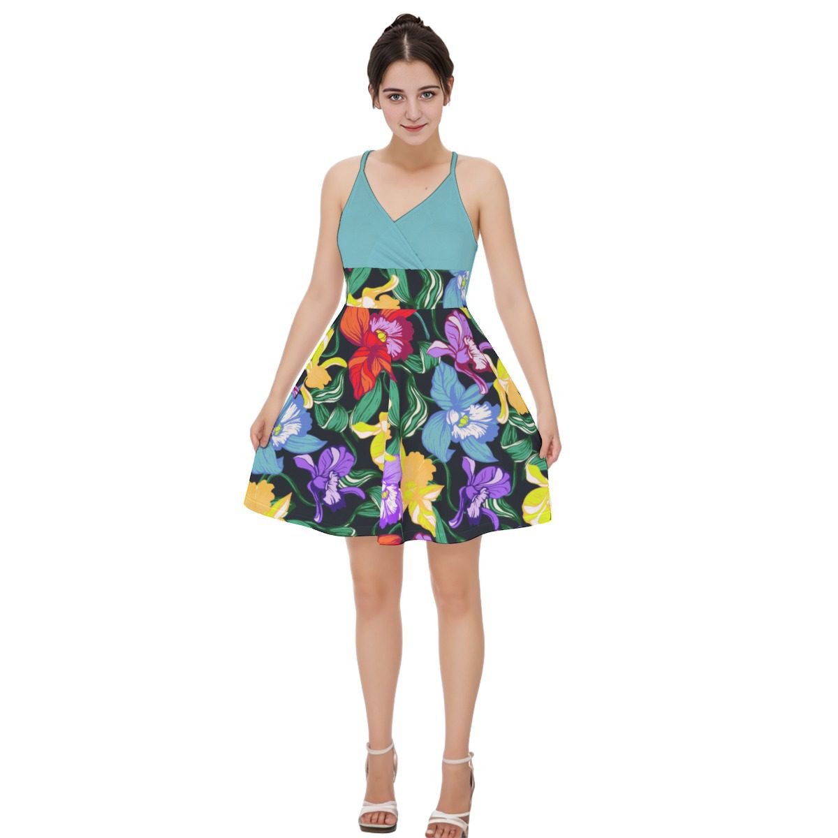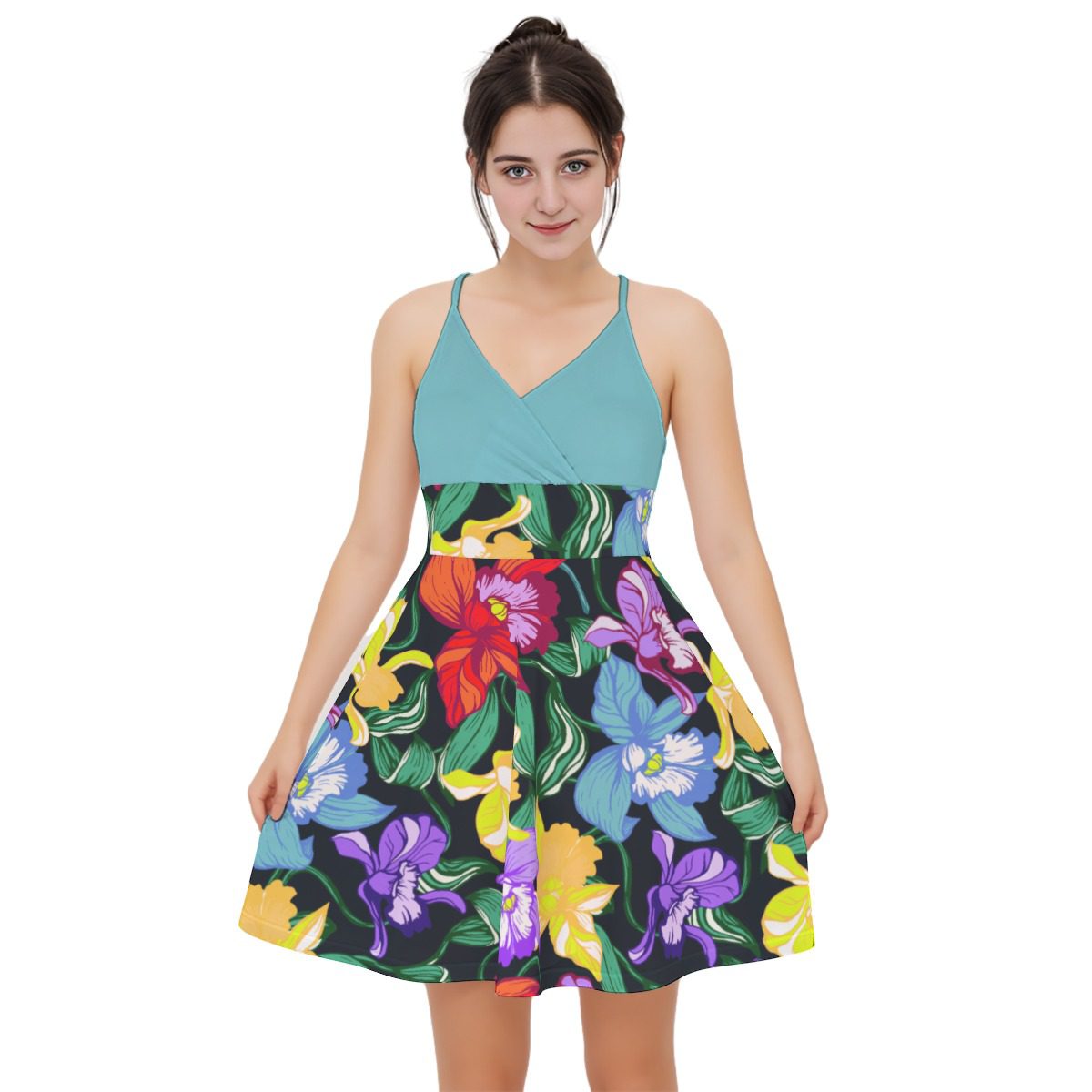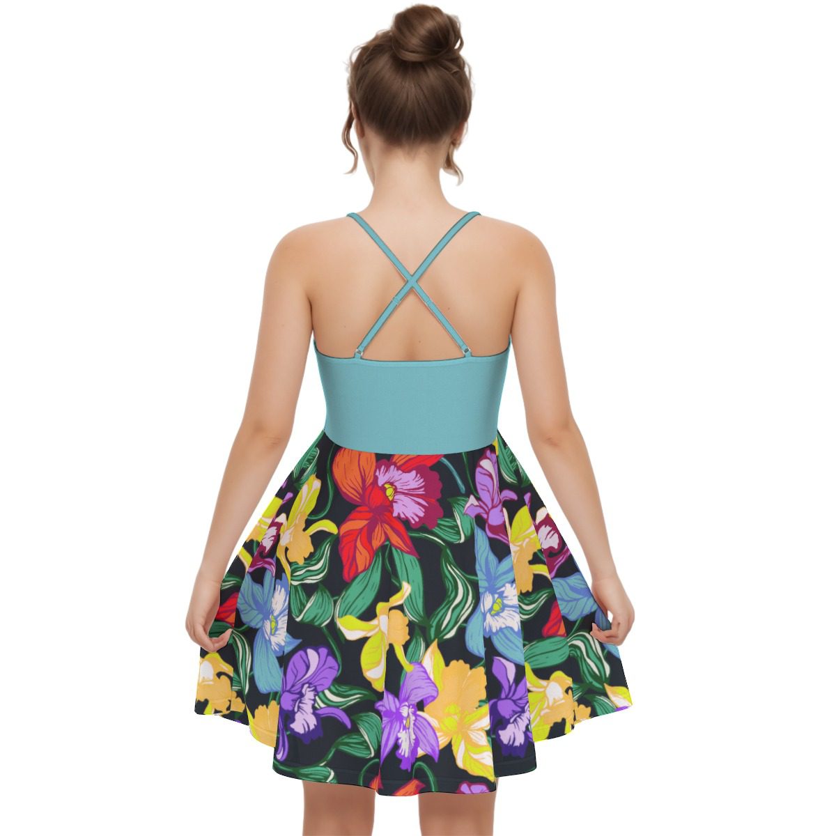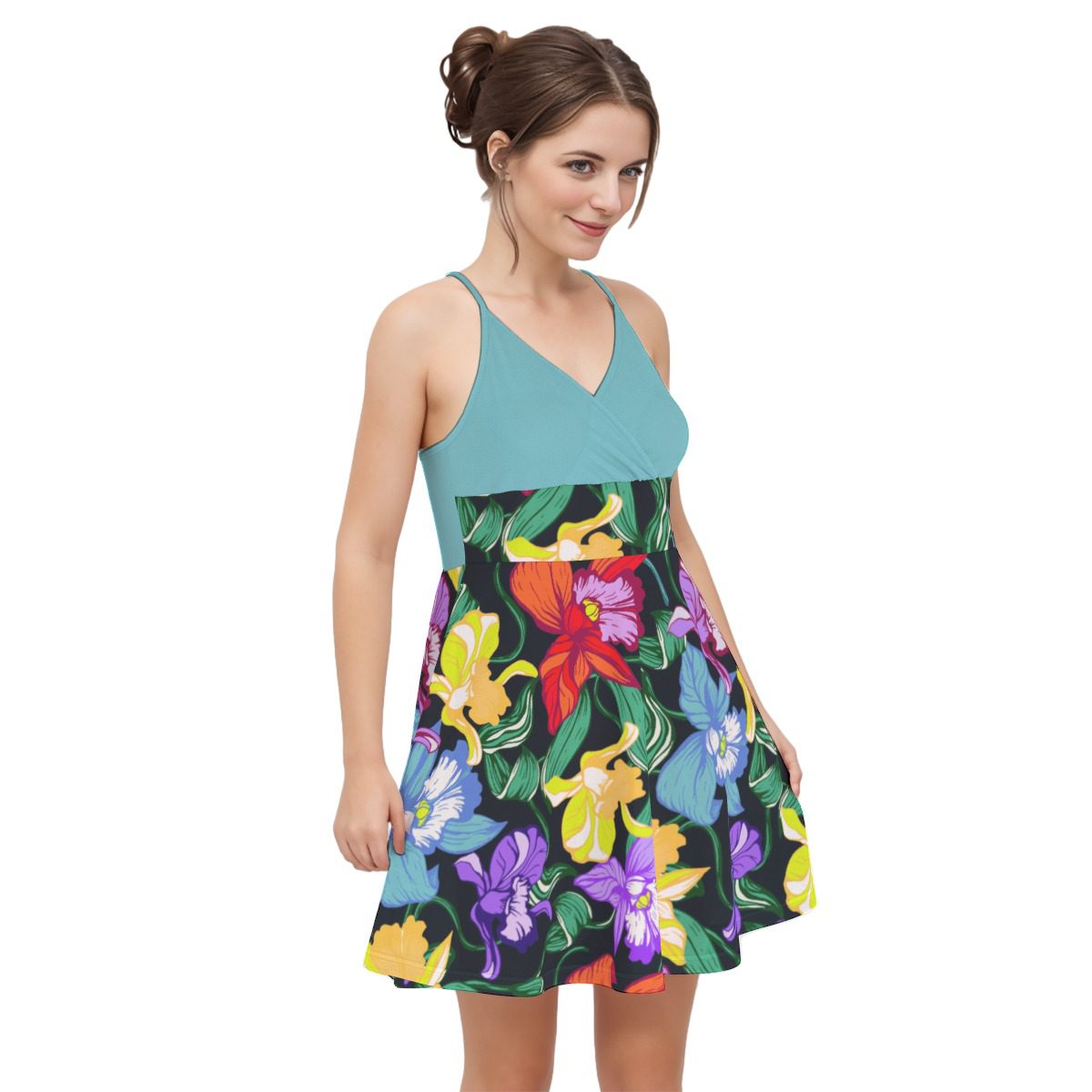 Colorful Orchids Flowers Pattren Design, This casual wardrobe-essential cami dress features a lightweight fit for comfortable everyday wear.Clothing made of renewable fabrics responds to environmental protection and promotes ecological balance while retaining the skin feel of the original fabric.