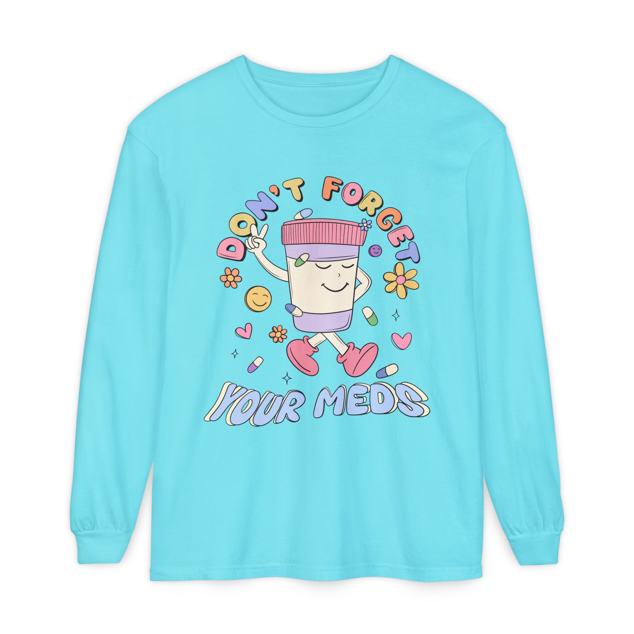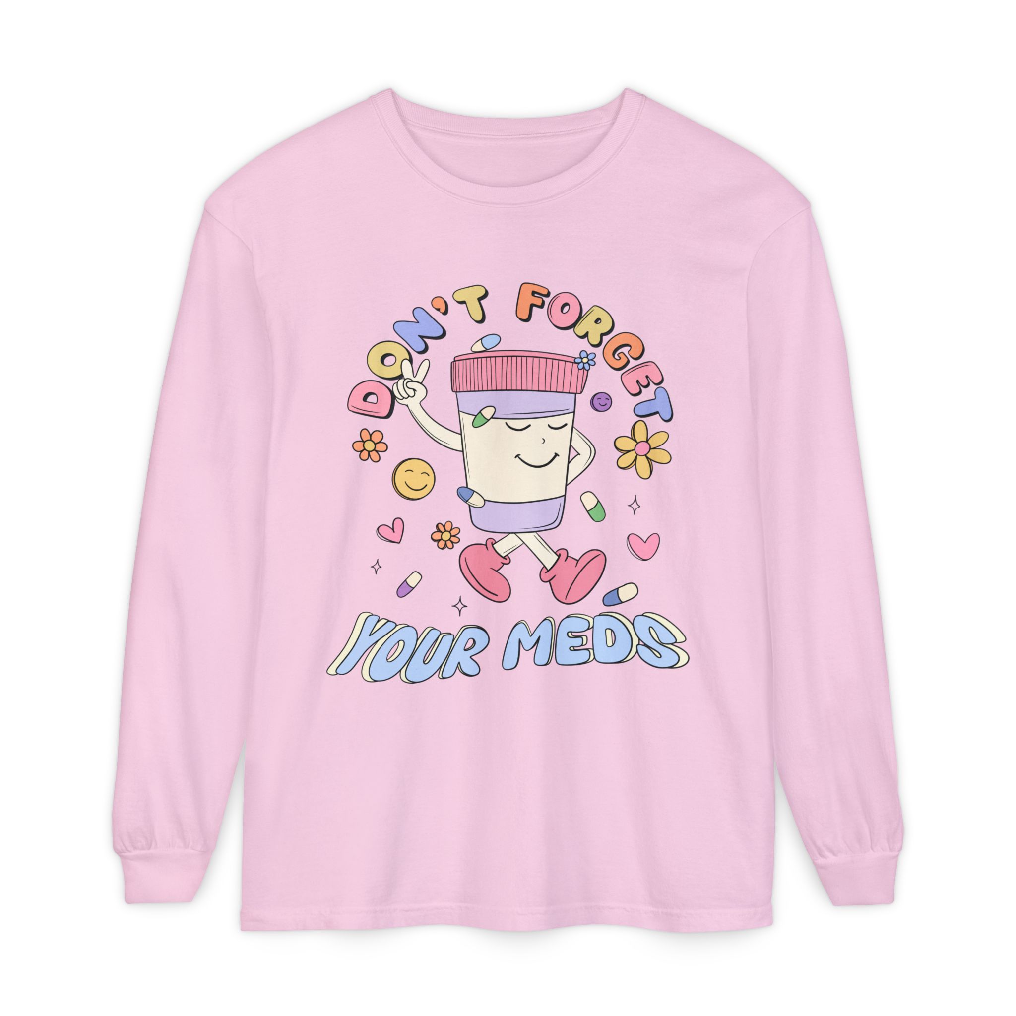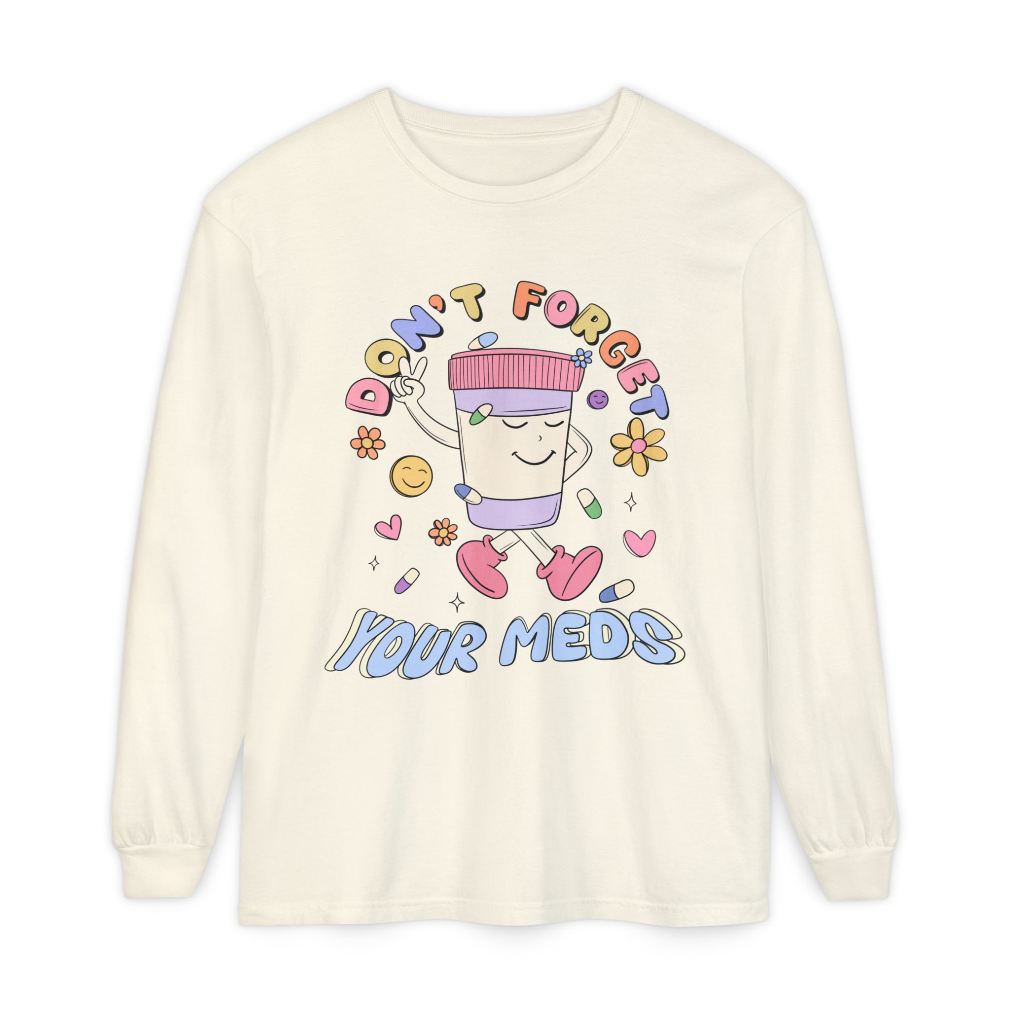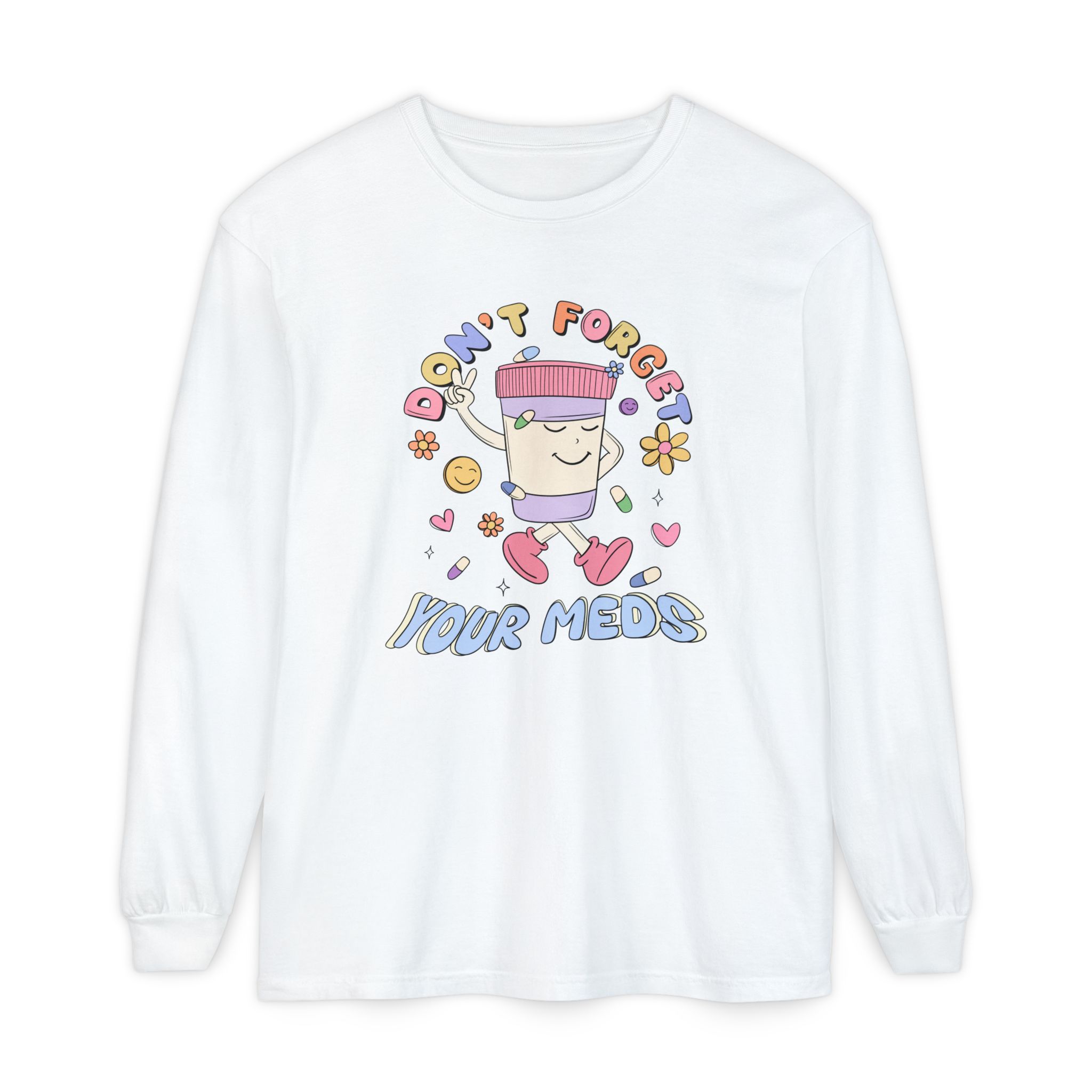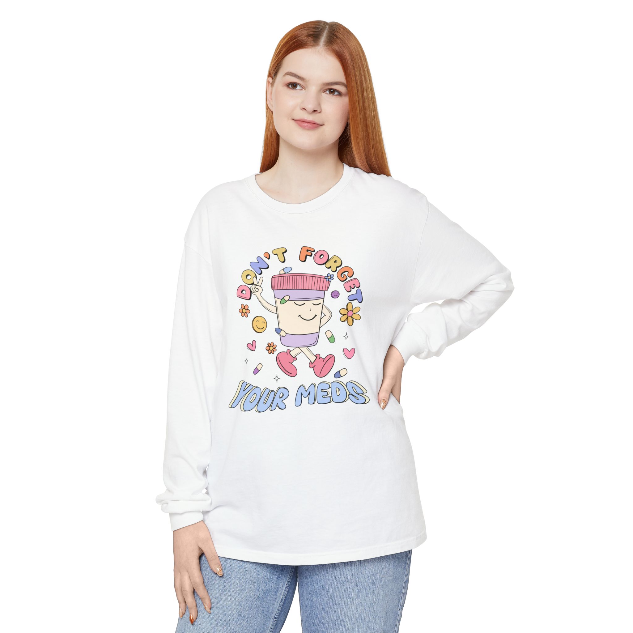 Don’t Forget Your Meds Cartoon Design – Unisex Garment-dyed Long Sleeve T-Shirt