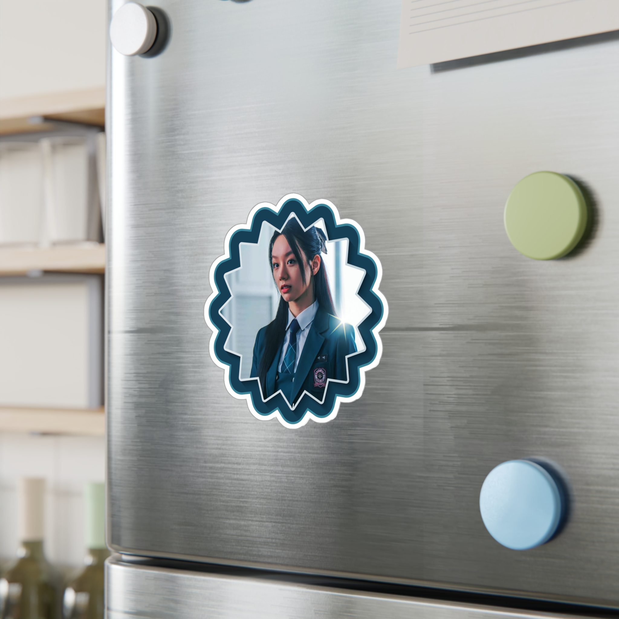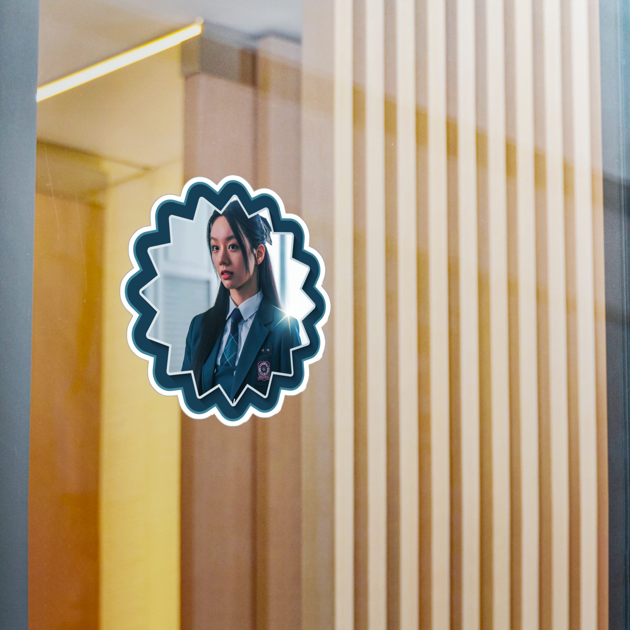 Artistic Korean actress design kiss-cut vinyl decals Sticker with vibrant colors and a satin finish. Perfect for decorating your home with a unique fashion touch. Ideal for fans of Korean Friendly Rivalry drama and Lee Hye-ri. Great for gift-giving on birthdays, holidays, or special occasions.
