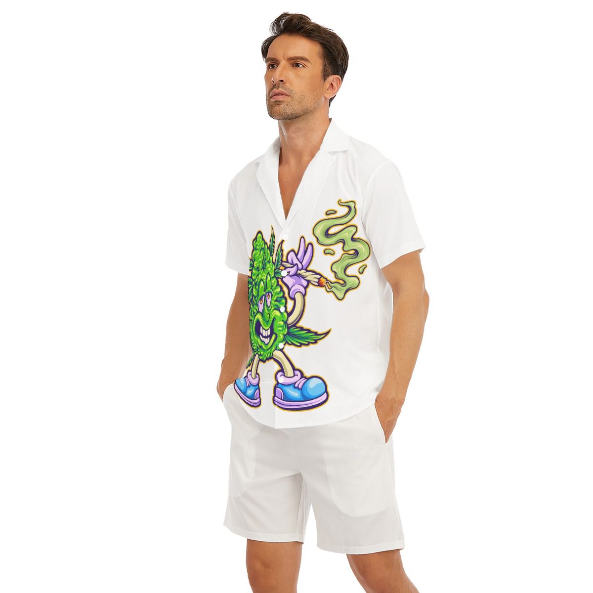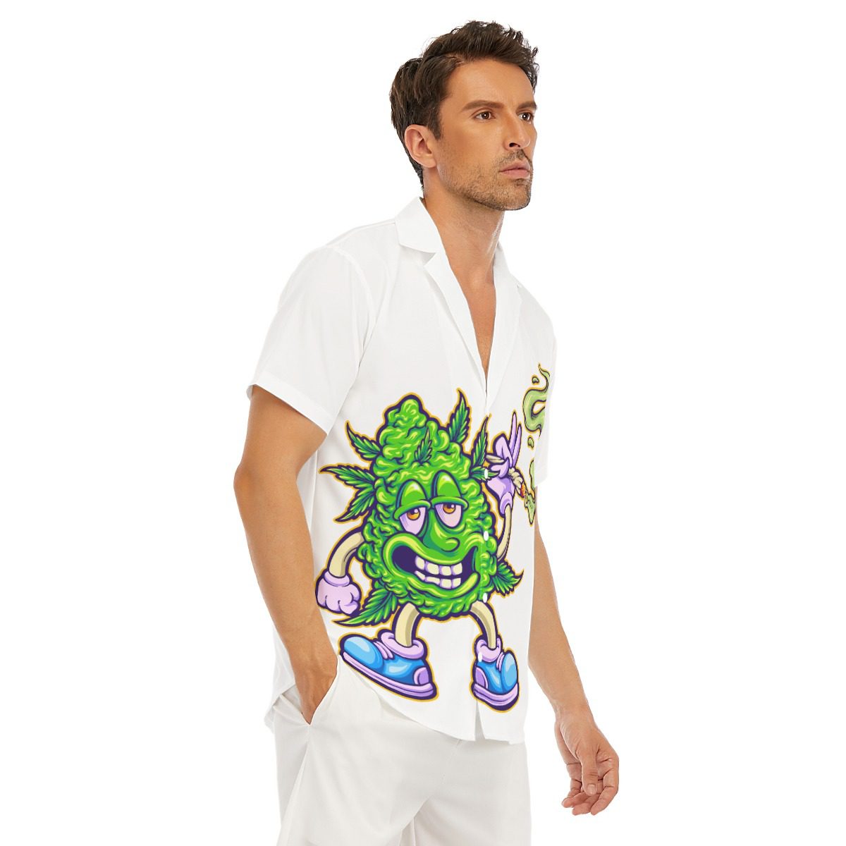 Funky weed bud smoking cannabis Design, Men’s deep V-neck blouse with light and comfortable fabric, button closure, you can design many unique patterns, using high-quality printing, ready-to-wear will be great