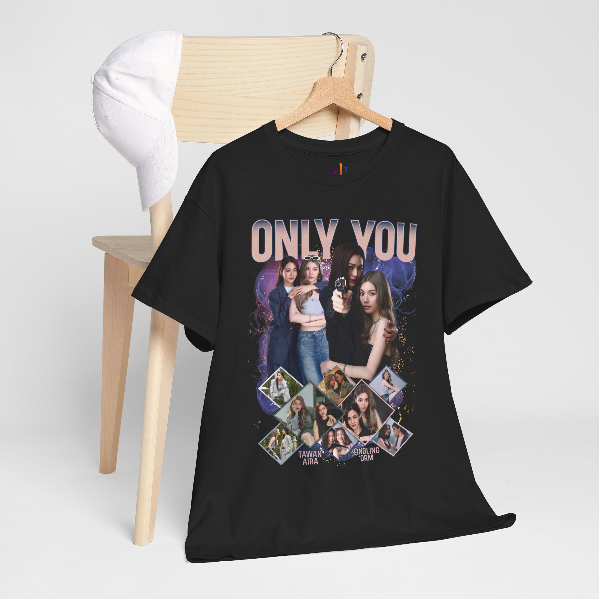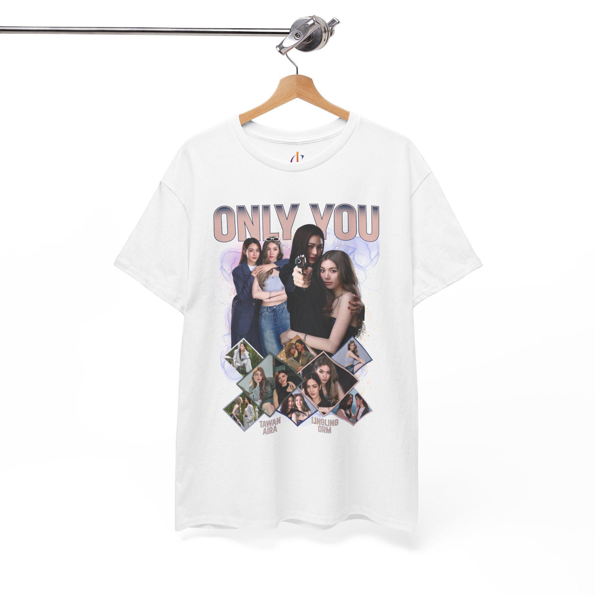 The ‘Only You Series’ inspired T-shirt featuring a beautiful and eye-catching design by Tawan & Aira. This unisex heavy cotton tee is perfect for fans of Lingling & Orm, offering a comfy and relaxed fit with a classic crew neckline. Suitable for adults, this tee is made with medium fabric for year-round comfort and sustainability.