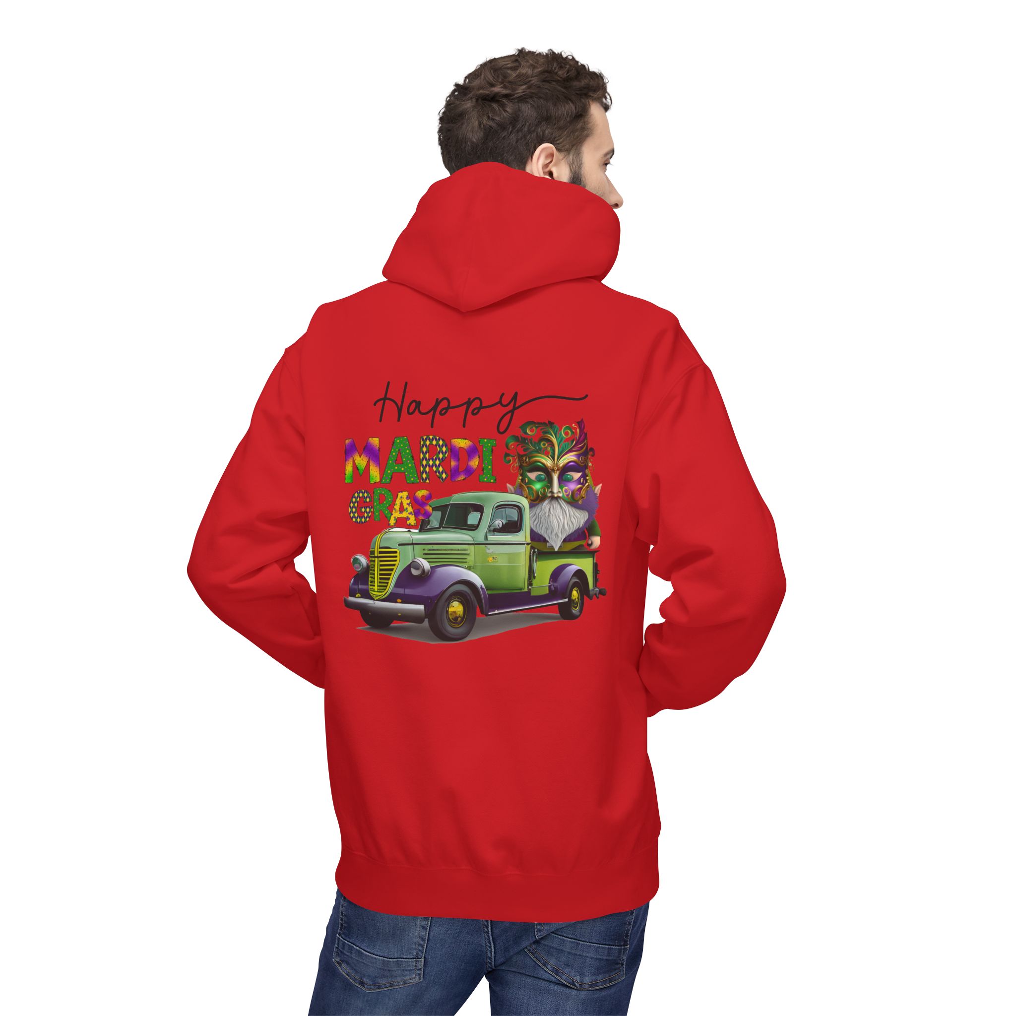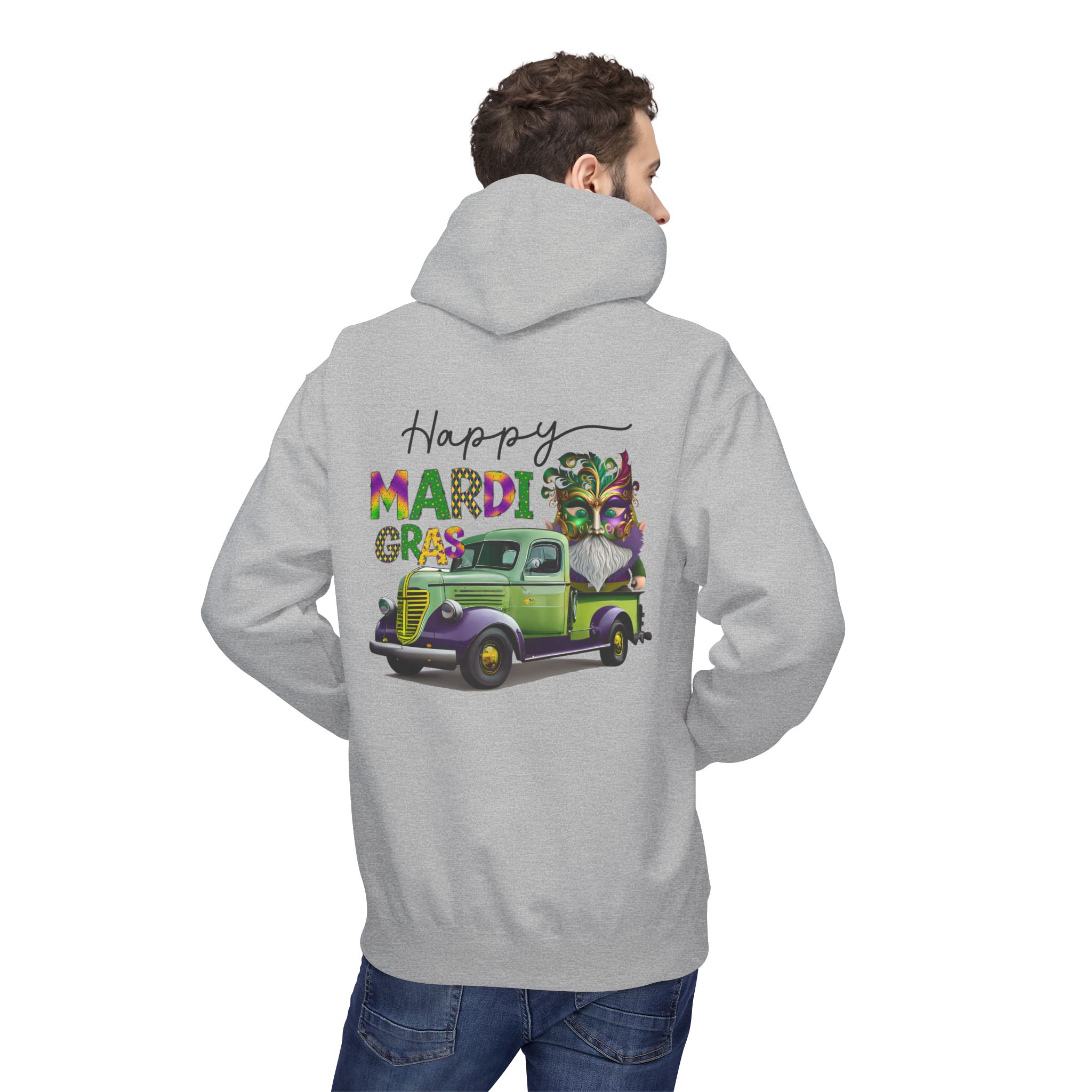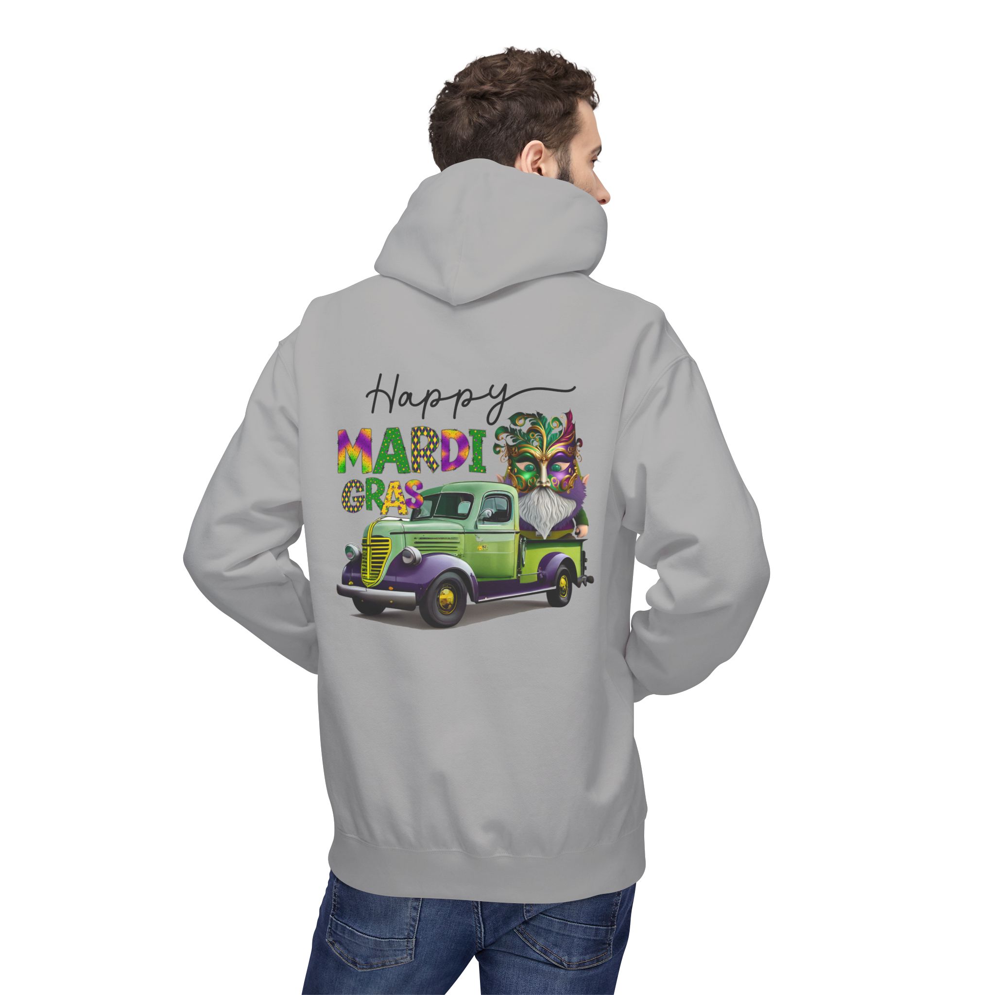 Happy mardi gras Design, Elevate your casual wardrobe with our custom fleece hoodies, expertly crafted from an 80% ring-spun cotton and 20% polyester blend, with a 100% cotton face for a soft, premium feel (Dark Heather is 50/50 cotton/polyester, Sport Grey is 75/25 cotton/polyester). This hoodie features a 2-piece, color-matched jersey fabric-lined hood, a stylish dropped shoulder, and a convenient pouch pocket. Emphasizing sustainability, it meets the OEKO-TEX Standard 100 for eco-friendly production and is manufactured in a WRAP-certified facility that partners with the Fair Labor Association, ensuring ethical and socially responsible practices.
