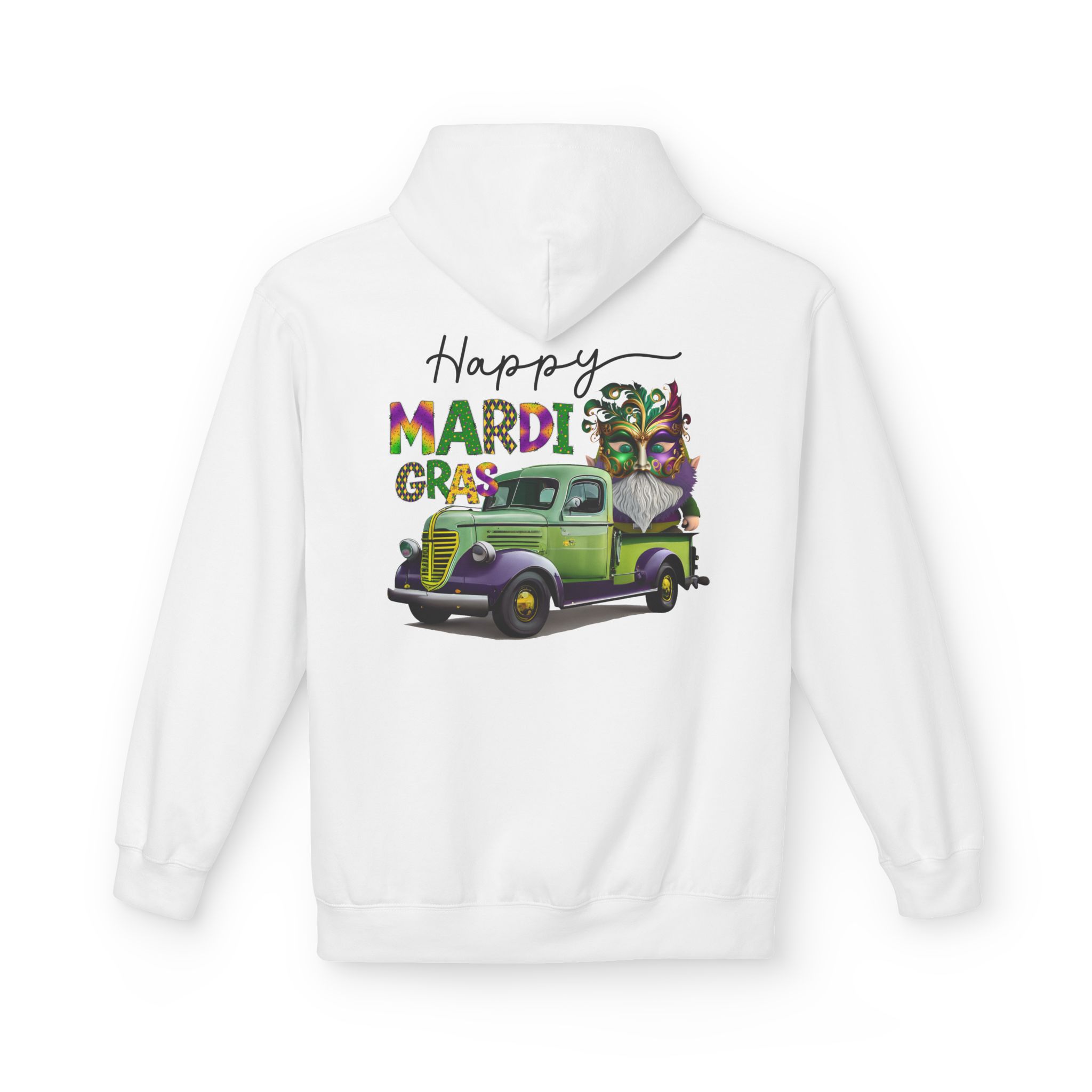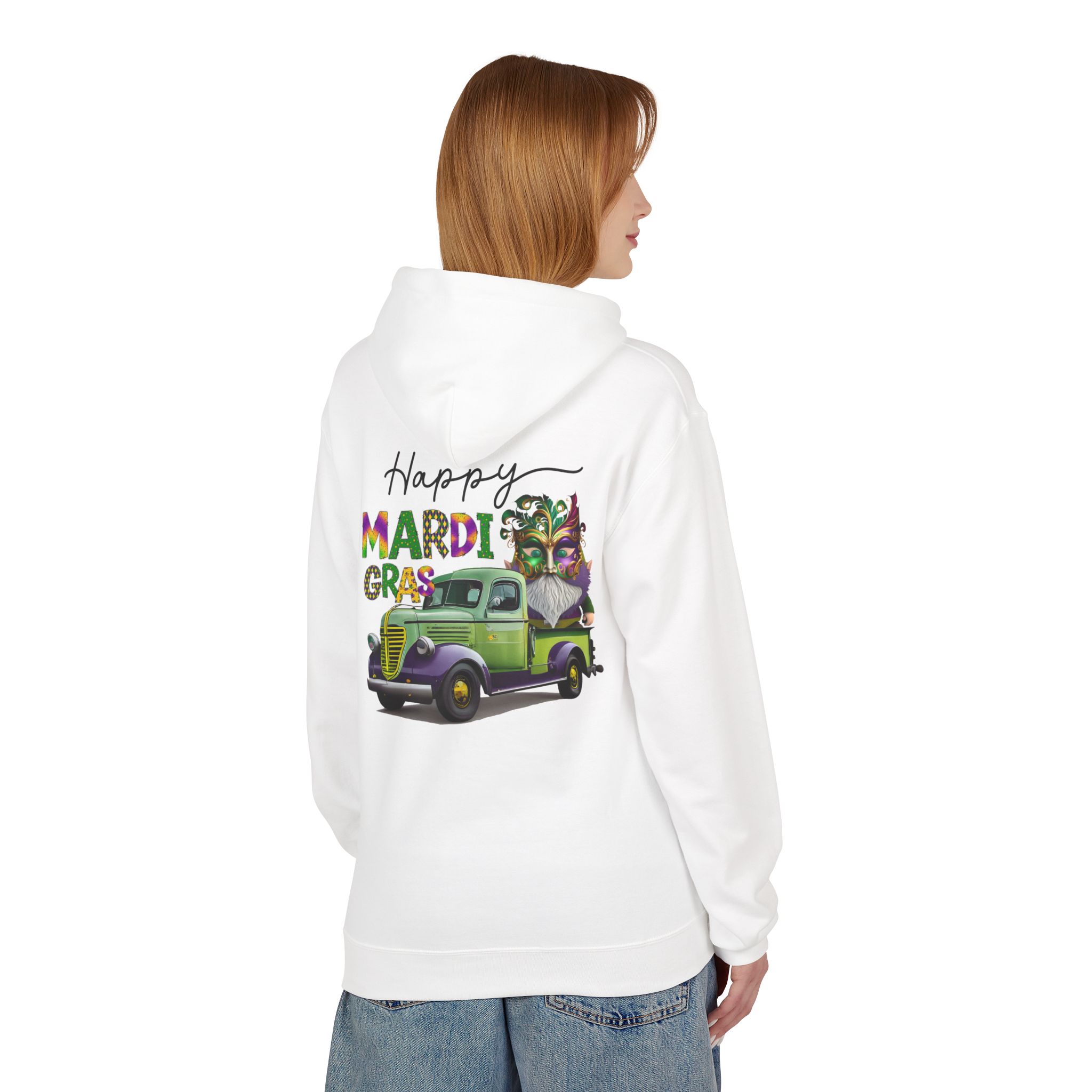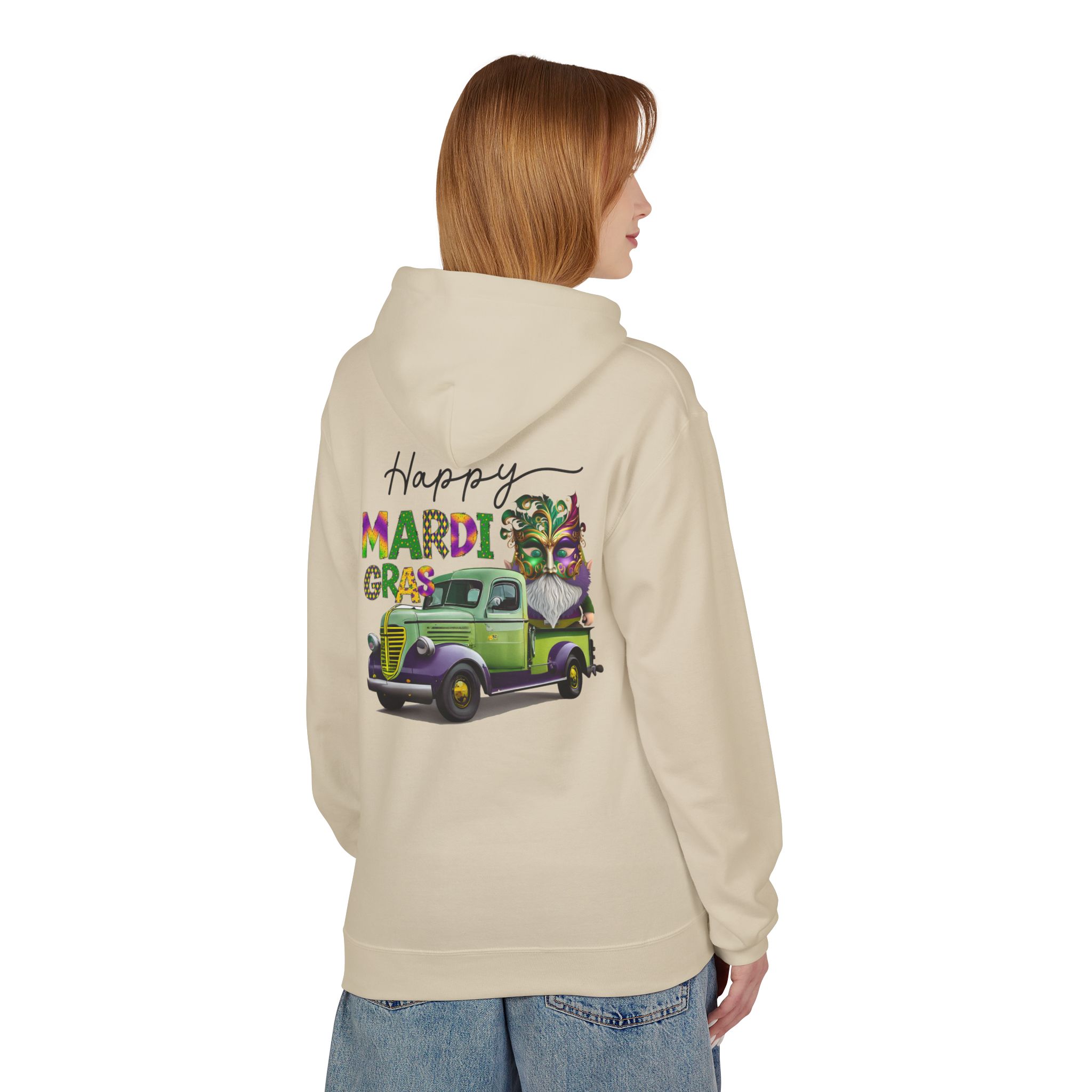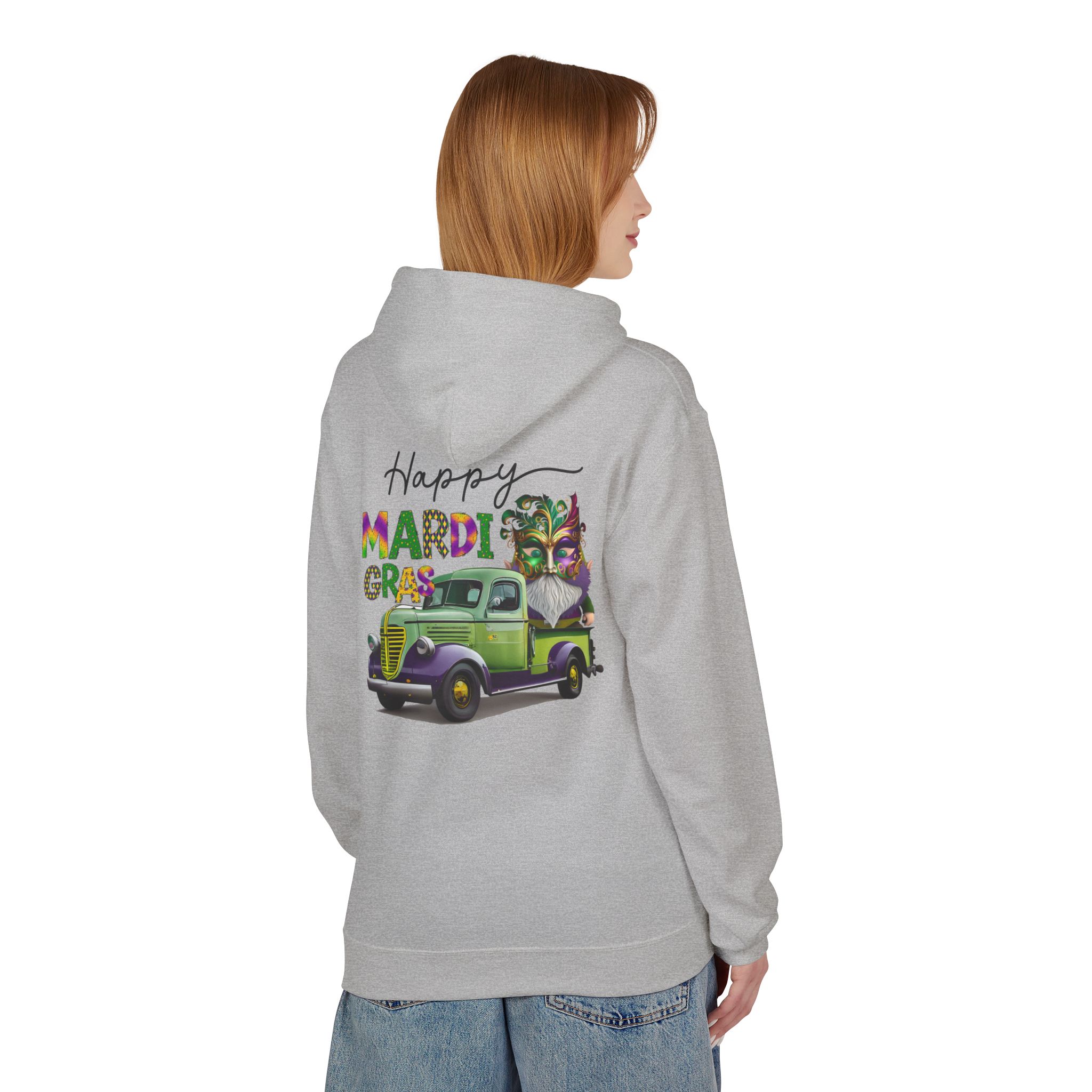 Happy mardi gras Design, Elevate your casual wardrobe with our custom fleece hoodies, expertly crafted from an 80% ring-spun cotton and 20% polyester blend, with a 100% cotton face for a soft, premium feel (Dark Heather is 50/50 cotton/polyester, Sport Grey is 75/25 cotton/polyester). This hoodie features a 2-piece, color-matched jersey fabric-lined hood, a stylish dropped shoulder, and a convenient pouch pocket. Emphasizing sustainability, it meets the OEKO-TEX Standard 100 for eco-friendly production and is manufactured in a WRAP-certified facility that partners with the Fair Labor Association, ensuring ethical and socially responsible practices.