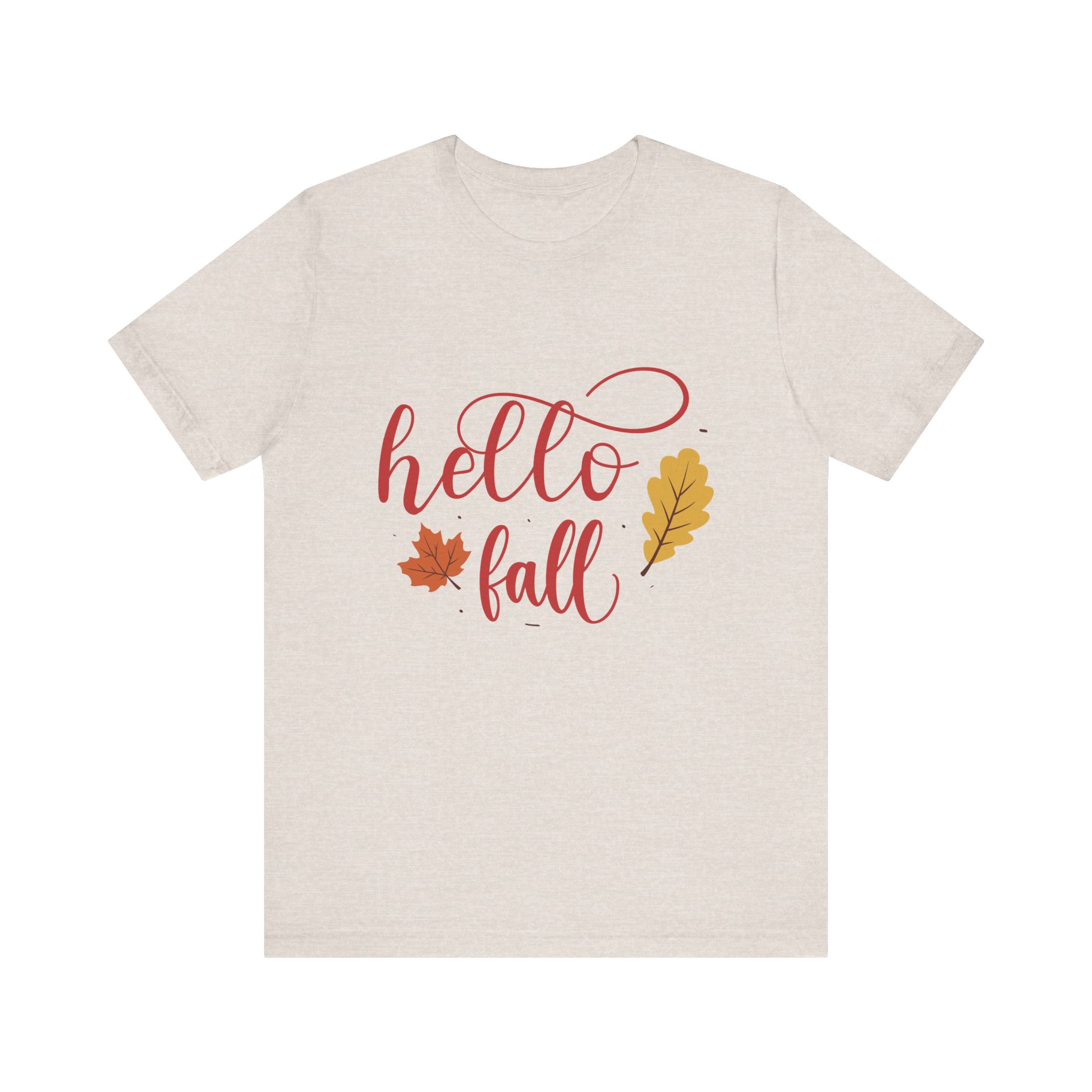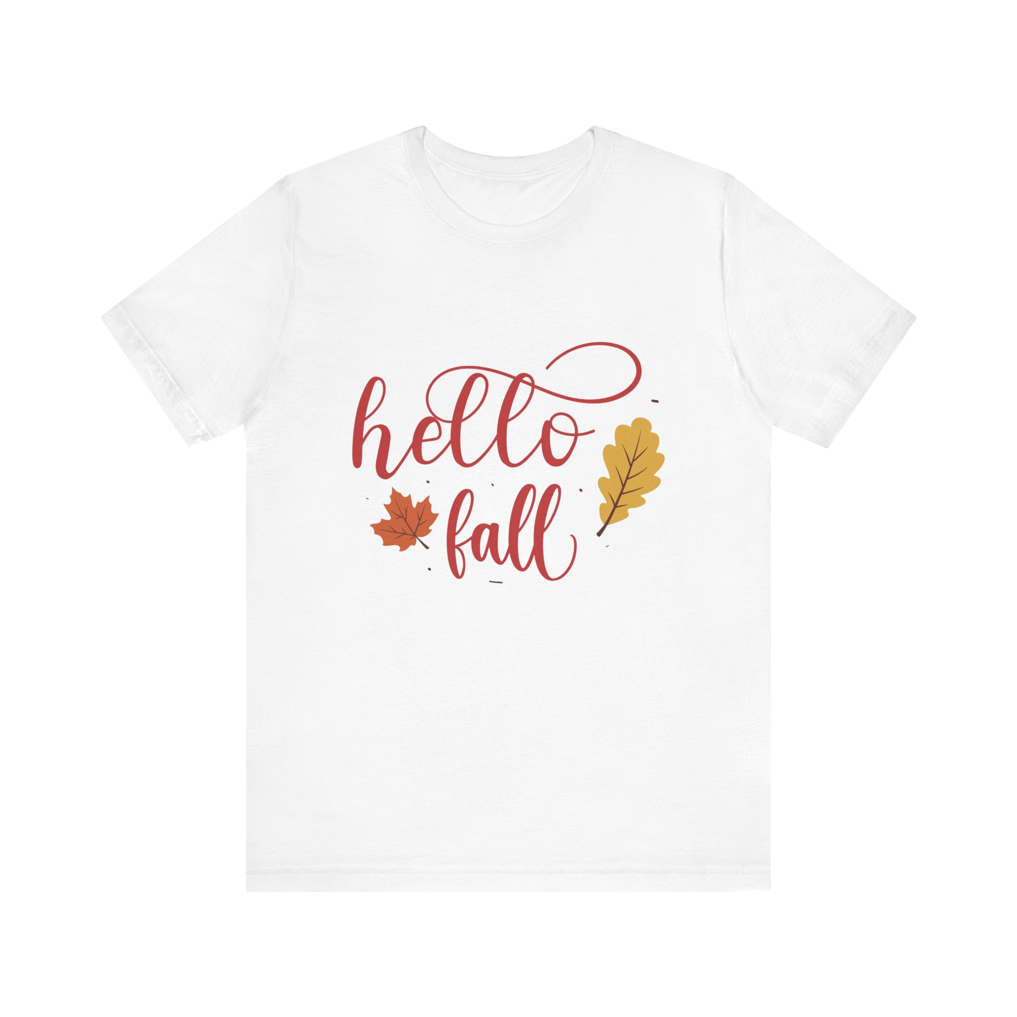 Hello Fall Design, This classic unisex jersey short sleeve tee fits like a well-loved favorite. Soft cotton and quality print make users fall in love with it over and over again. These t-shirts have-ribbed knit collars to bolster shaping. The shoulders are tapered for a better fit over time. Dual side seams hold the garment’s shape for longer.