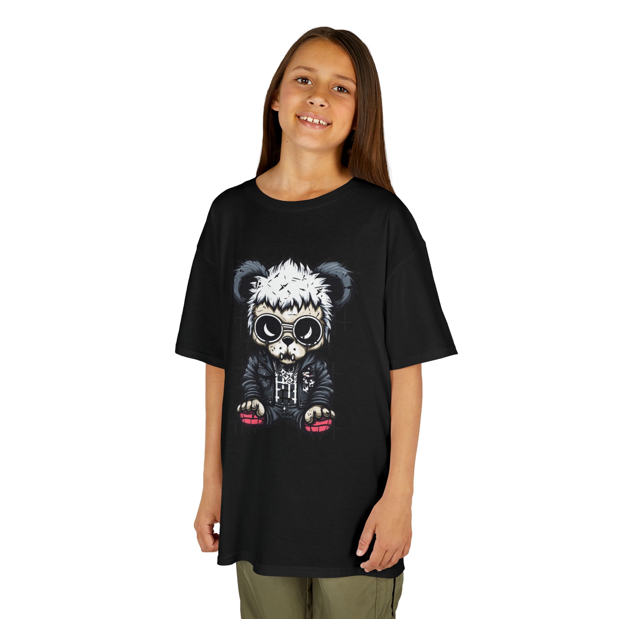 This Kids Heavy Cotton™ Tee features a unique black sad injured bear design, perfect for little ones with a sense of style and imagination. Crafted from 100% soft, durable US cotton for solid colors, and a cotton-polyester blend for heather variants, this shirt ensures all-day comfort and easy care. The crew neckline and classic fit give it a timeless look, while the ribbed collar resists curling for long-lasting wear. Ethically made and Oeko-Tex certified for safety, this tee is ideal for everyday adventures.