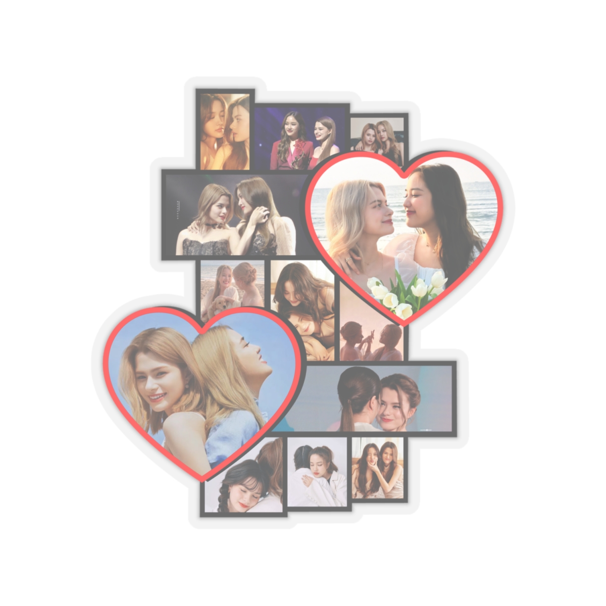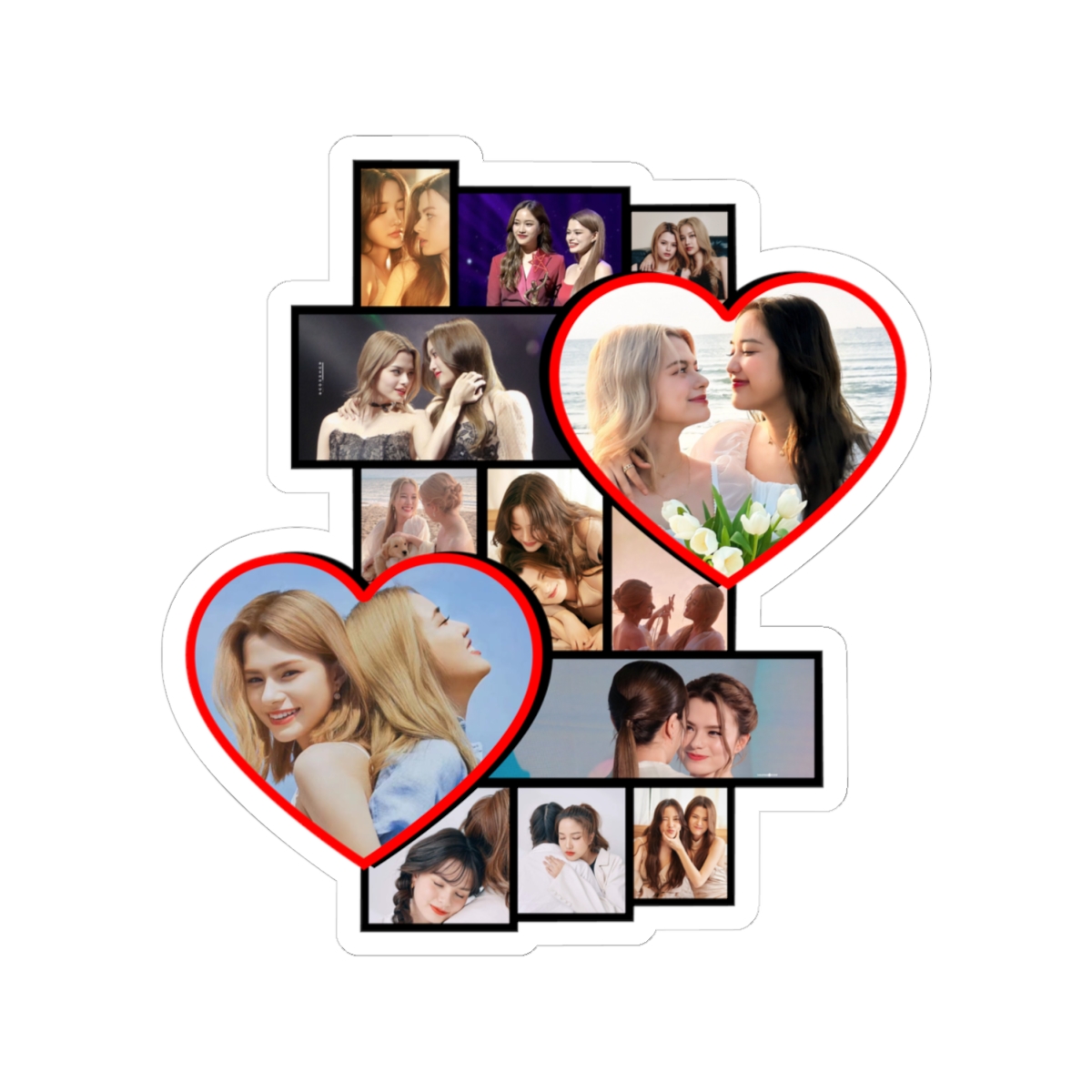 Vibrant and glossy kiss-cut stickers featuring Freen Sarocha And Becky, Rebecca Patricia Armstrong GL Series Actresses Gallery Pics. Perfect for adorning laptops, journals, and windows. Ideal for fans of the actresses and those who love colorful designs. Great for birthdays, fan celebrations, or just adding a pop of color to everyday life.