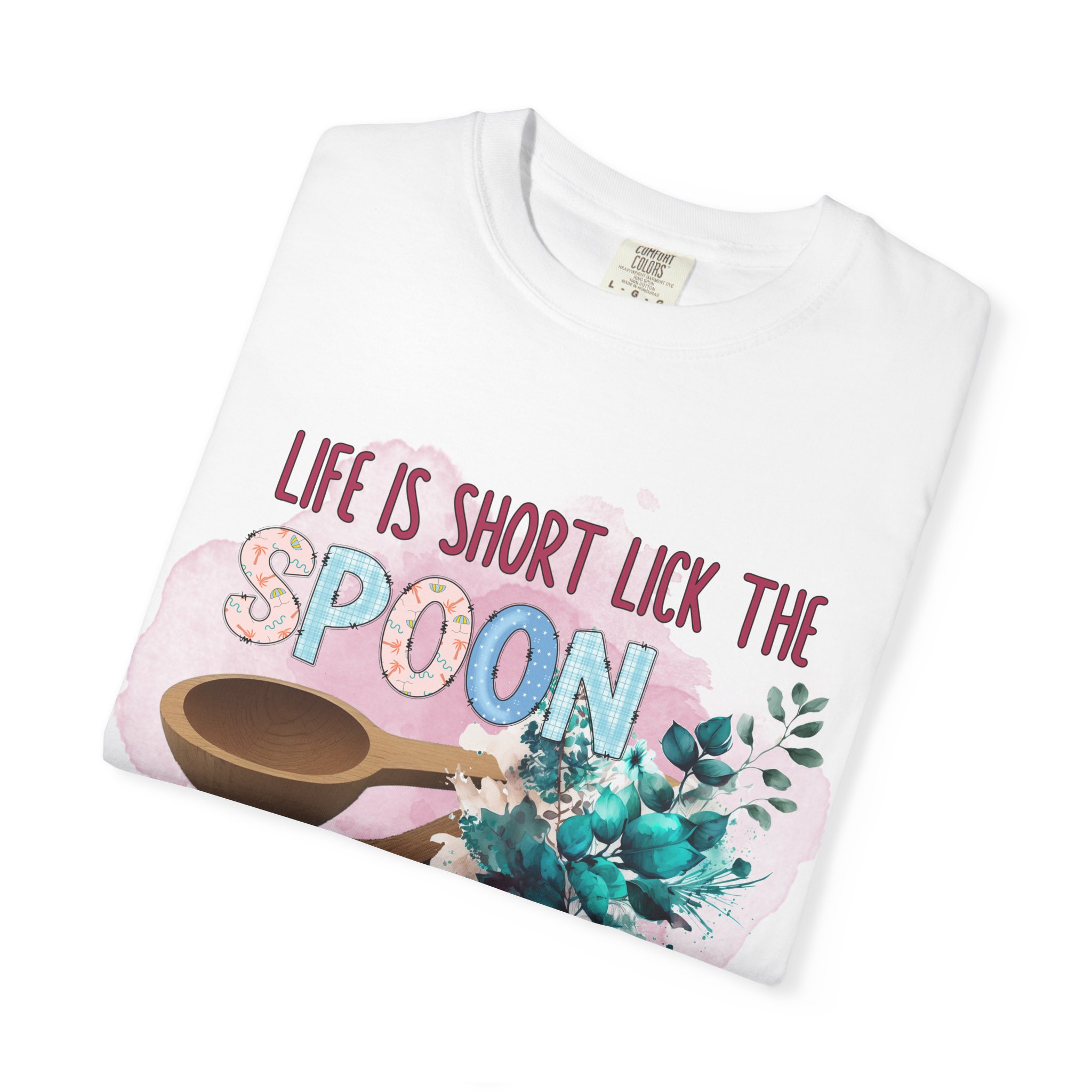 Life is short lick the spoon Design, Comfort Colors introduces the “Comfort Colors 1717” garment-dyed t-shirt; a fully customizable tee made 100% with ring-spun cotton. The soft-washed, garment-dyed fabric brings extra coziness to your wardrobe while the relaxed fit makes it an excellent daily choice. The double-needle stitching throughout the tee makes it highly durable while the lack of side-seams helps the shirt retain its tubular shape. Discover all 58 colors in our Comfort Colors 1717 color charts below.
