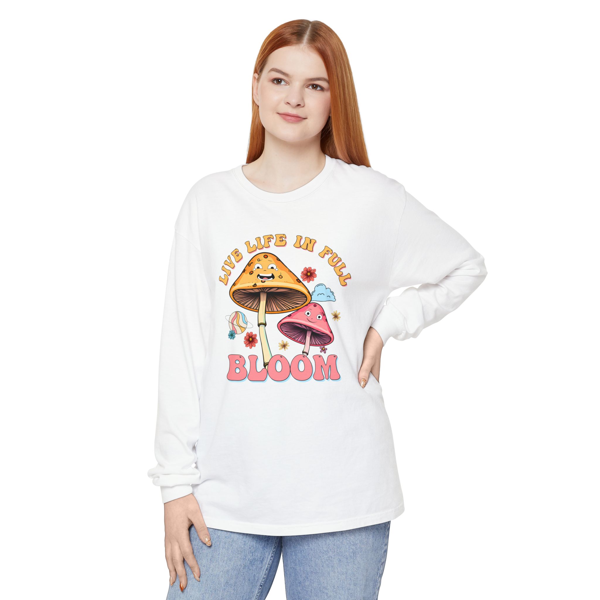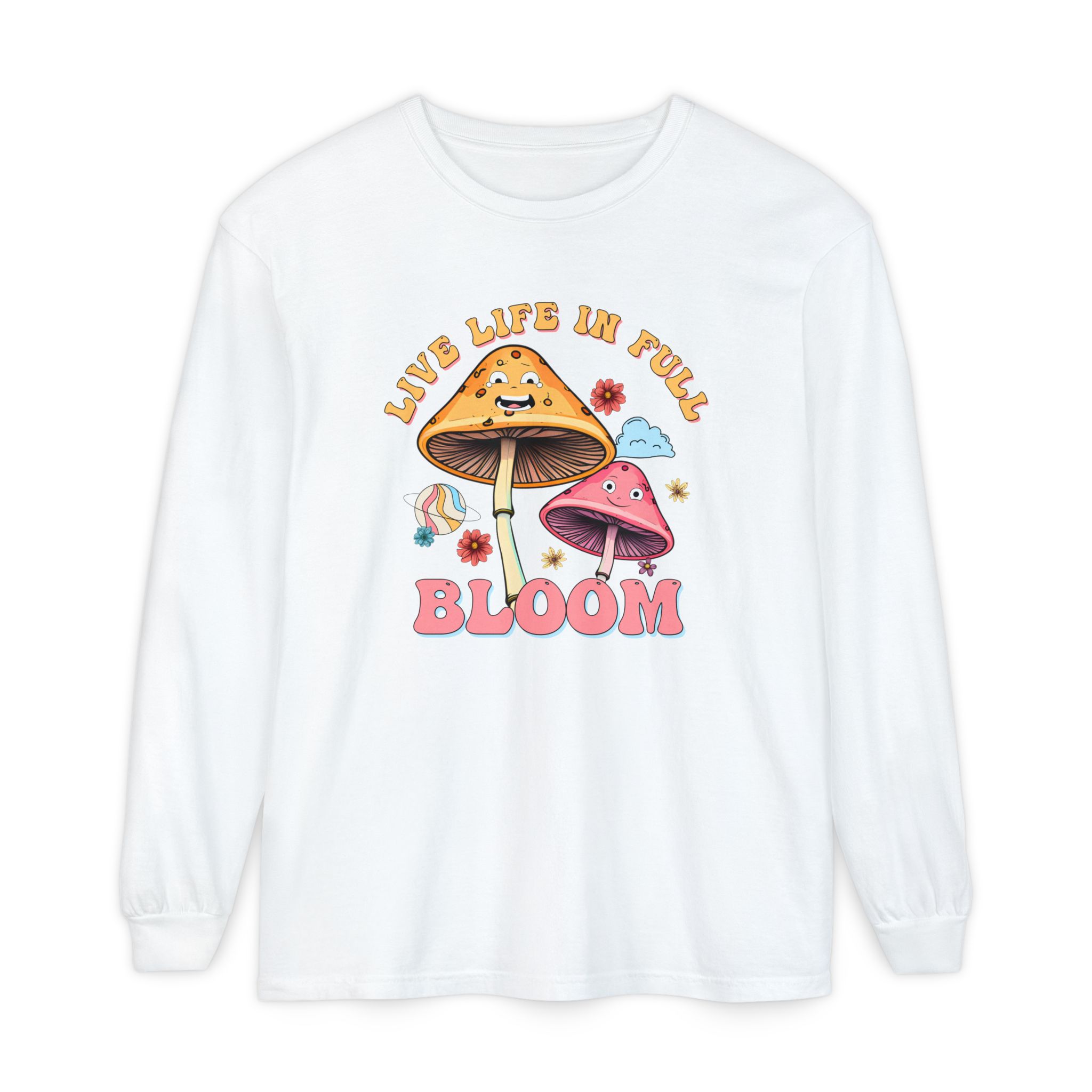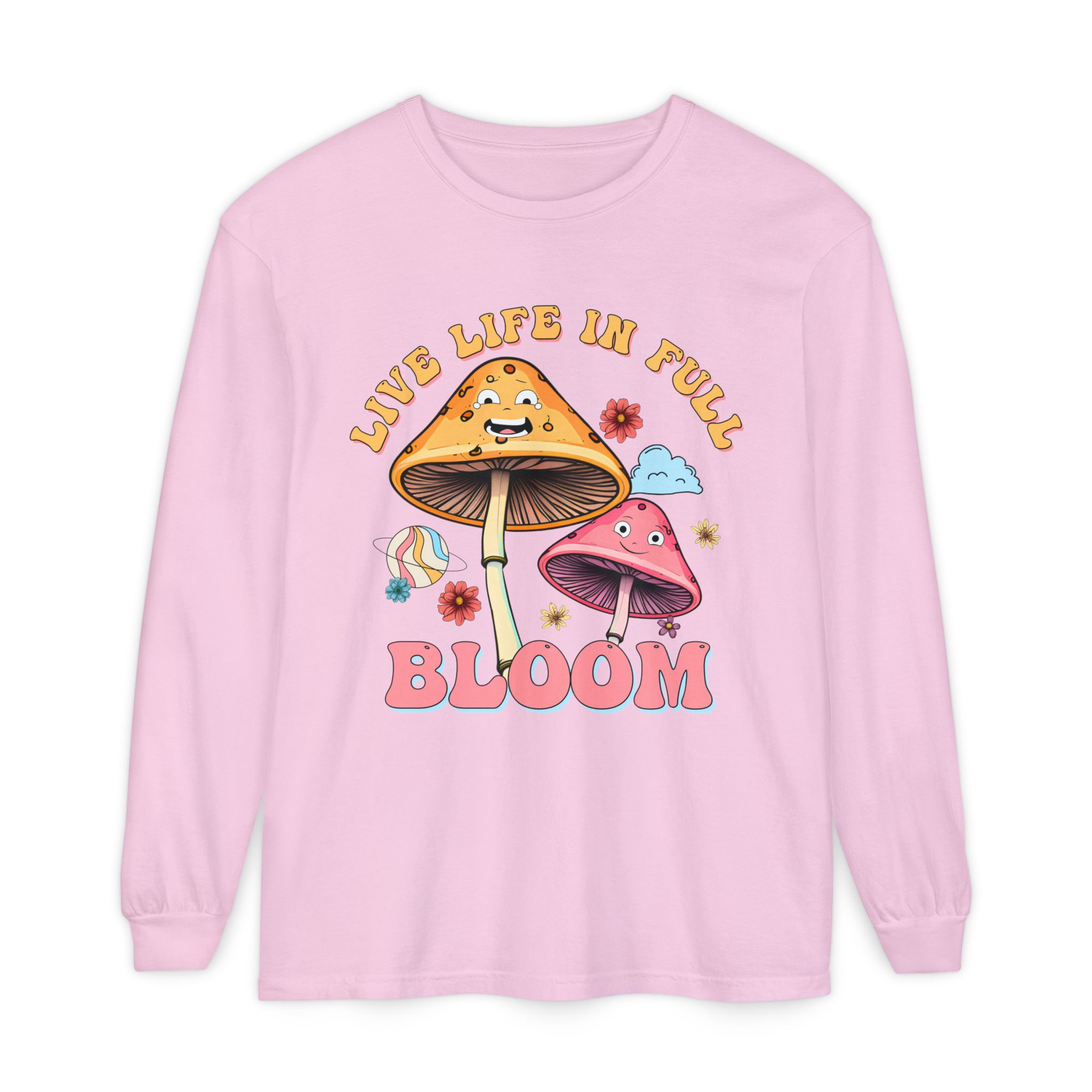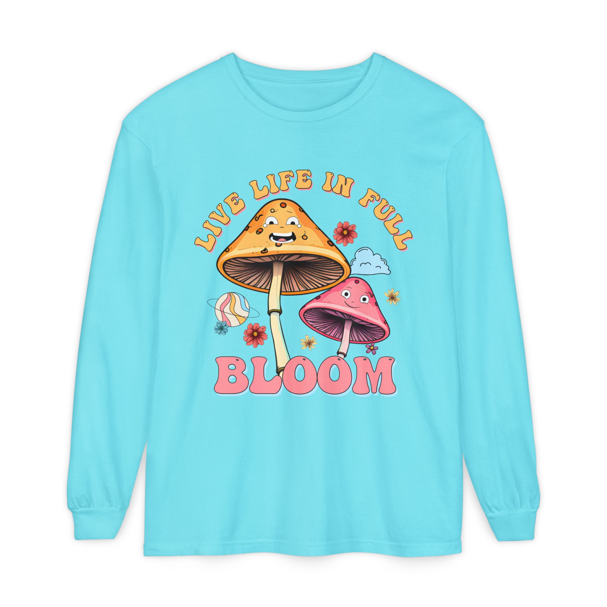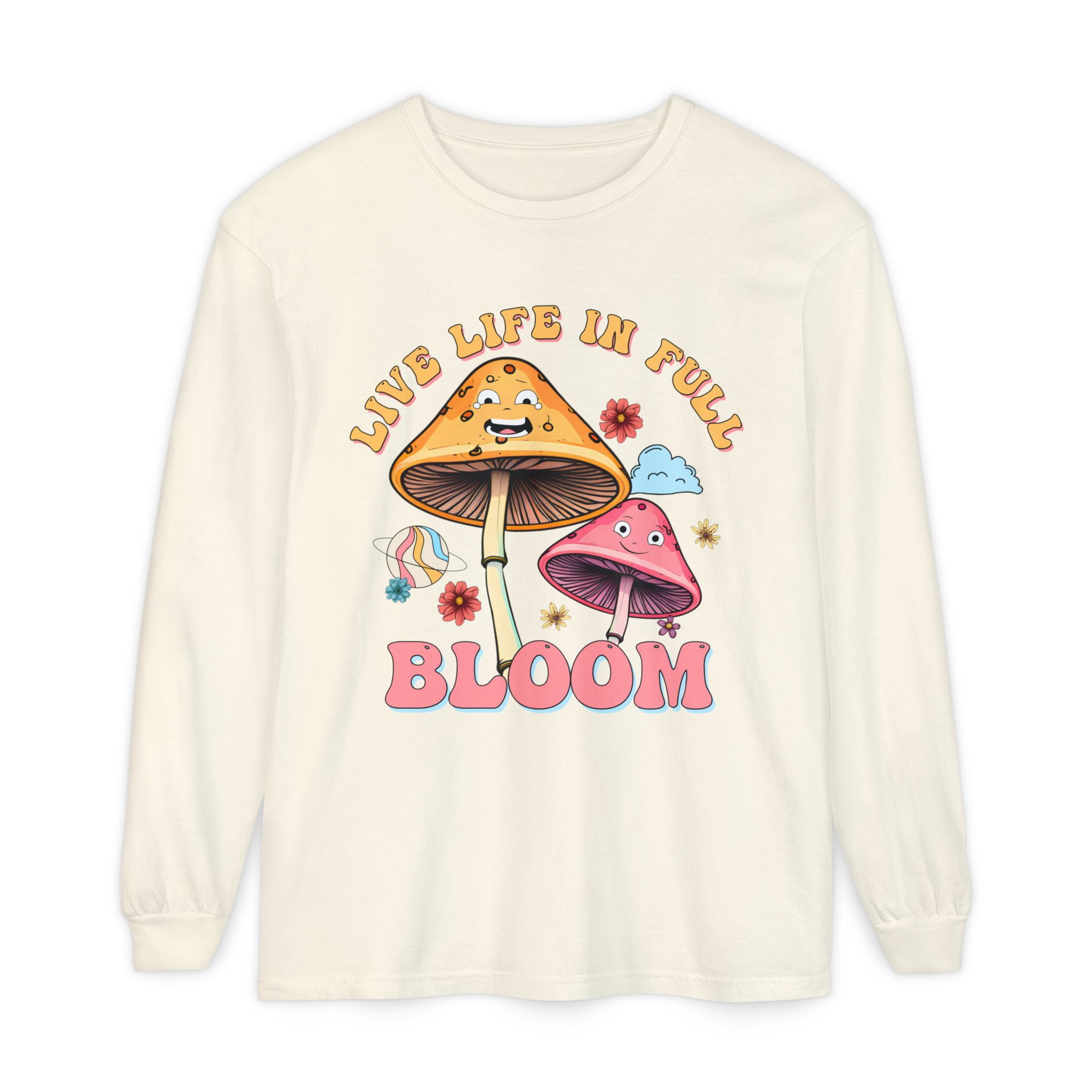 Live Life In Full Bloom Design – Unisex Garment-dyed Long Sleeve T-Shirt
