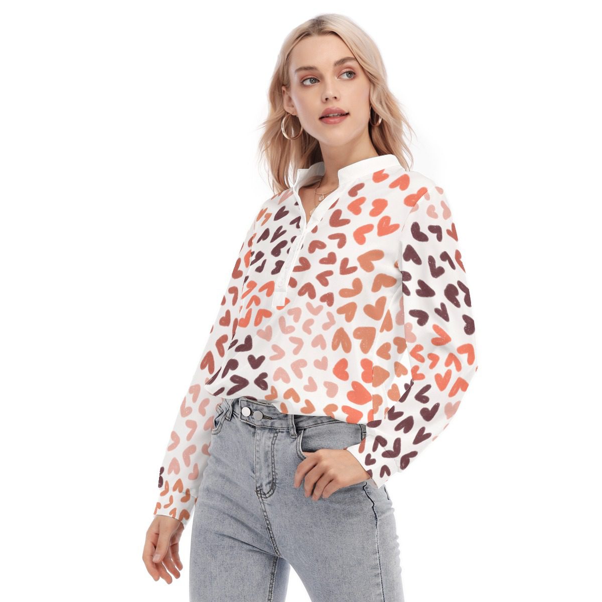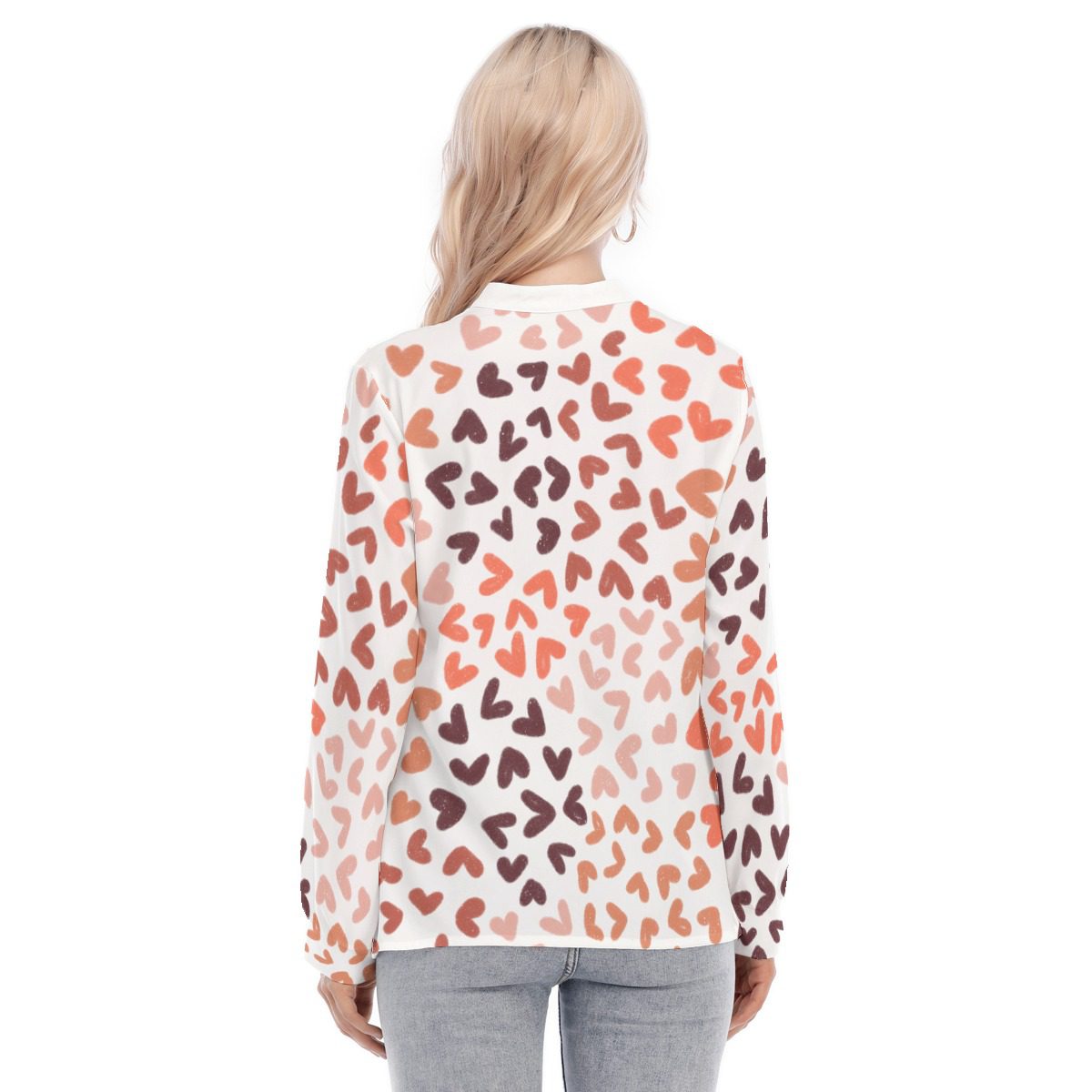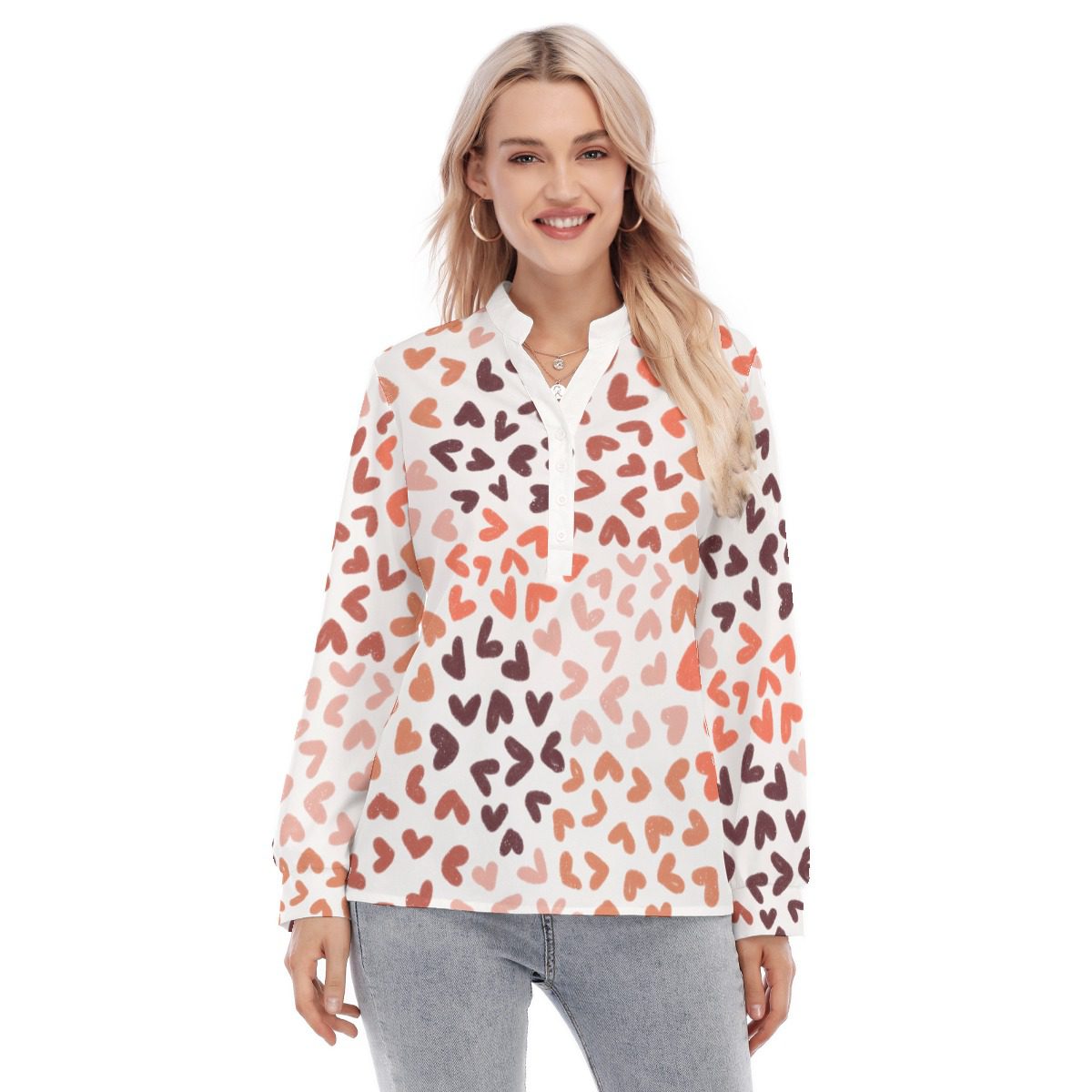 All-Over Print Women’s Long Sleeve Blouse With Button Closure
