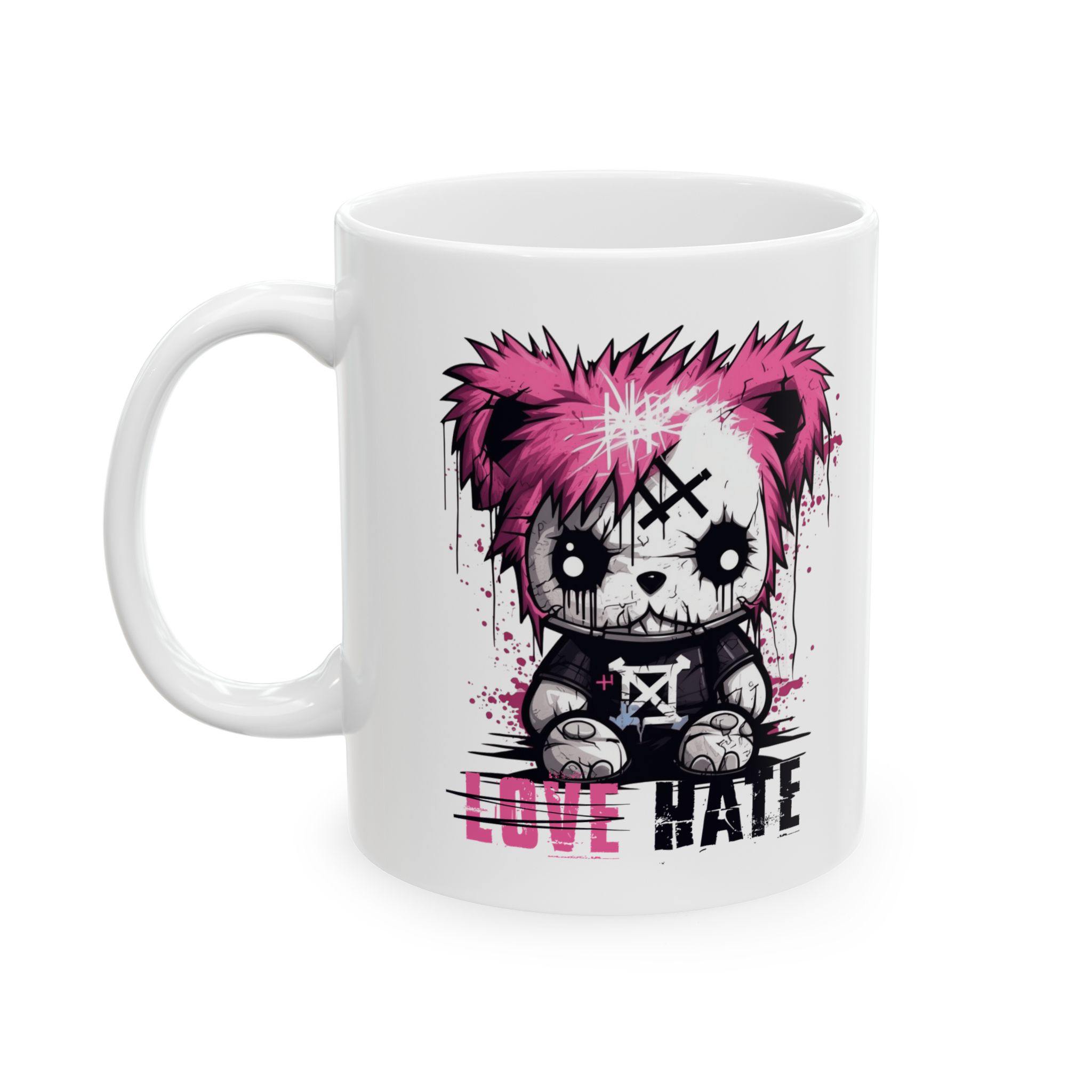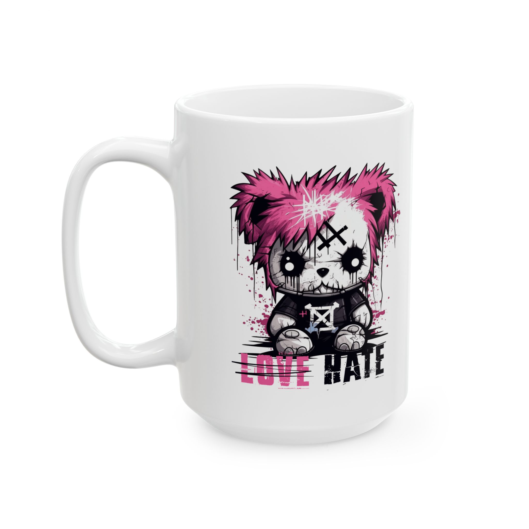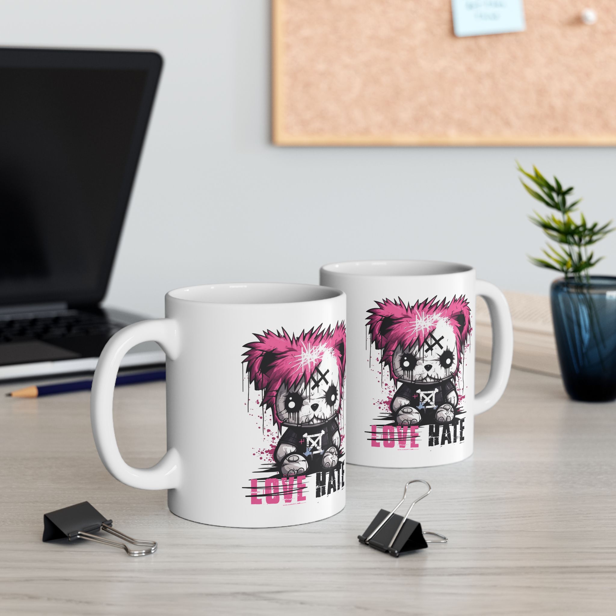 Love Hate Injured Bear Cartoon design – Ceramic Mug, (11oz, 15oz)