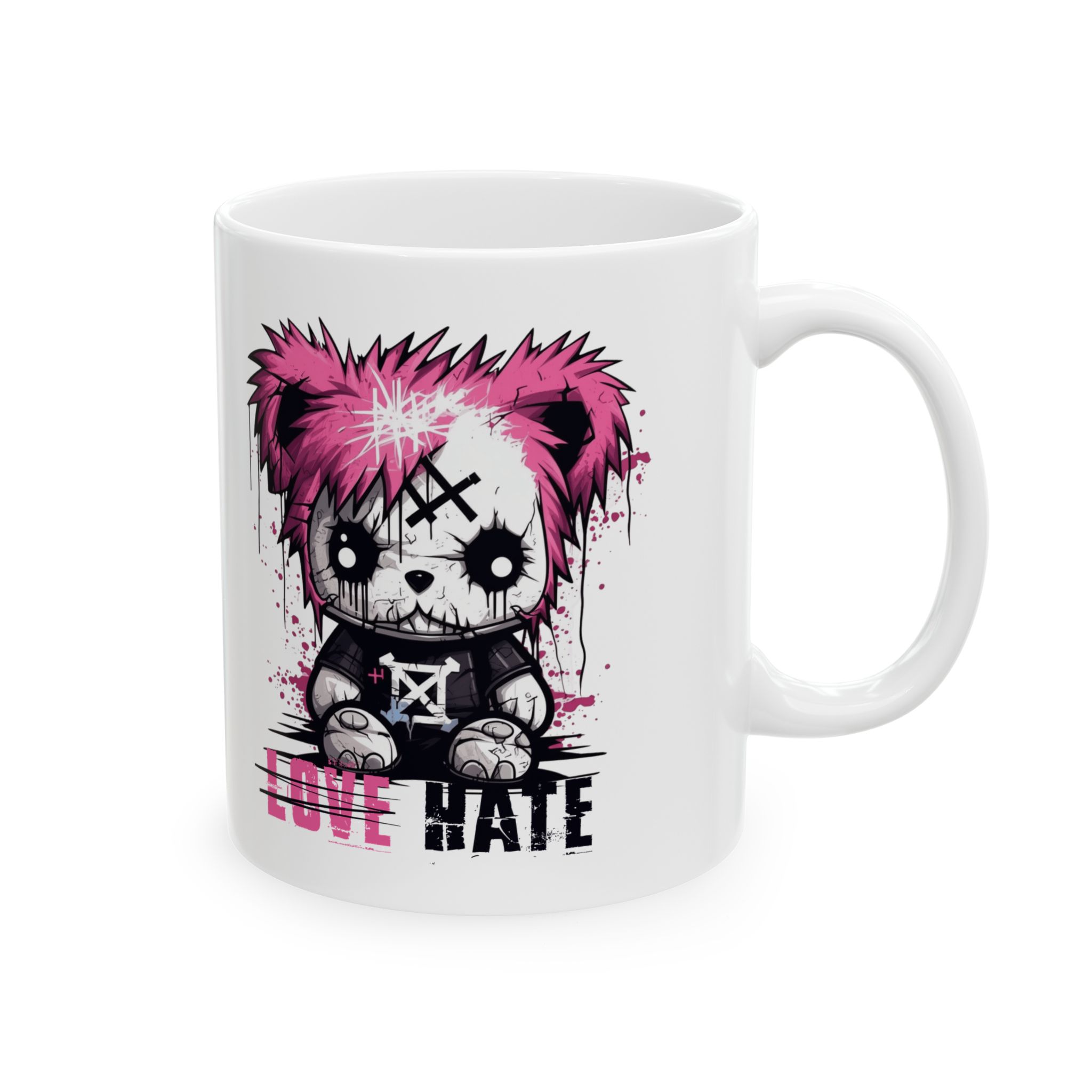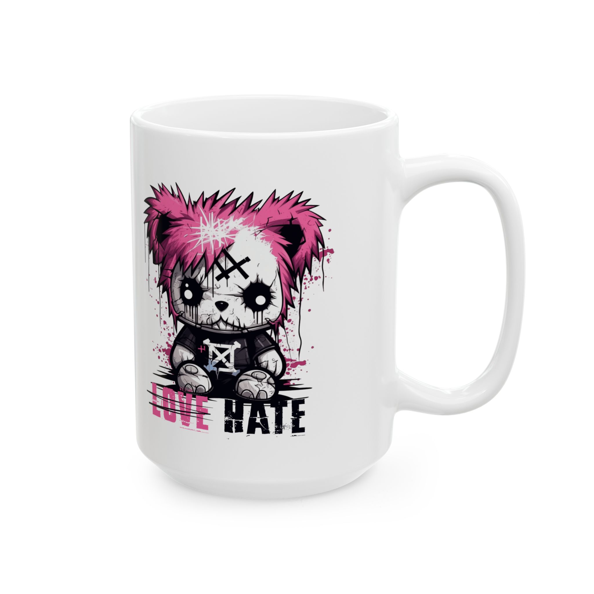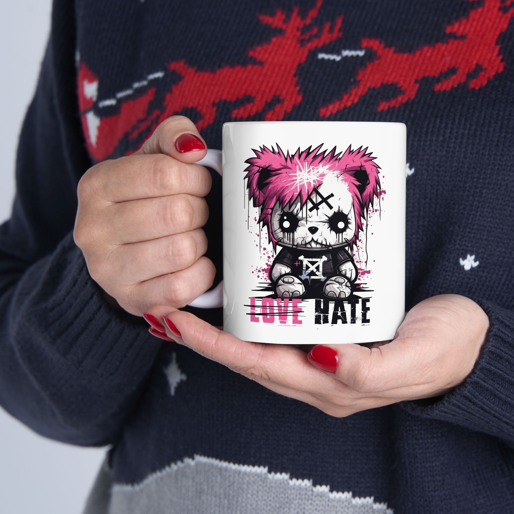 Love Hate Injured Bear Cartoon design – Ceramic Mug, (11oz, 15oz)