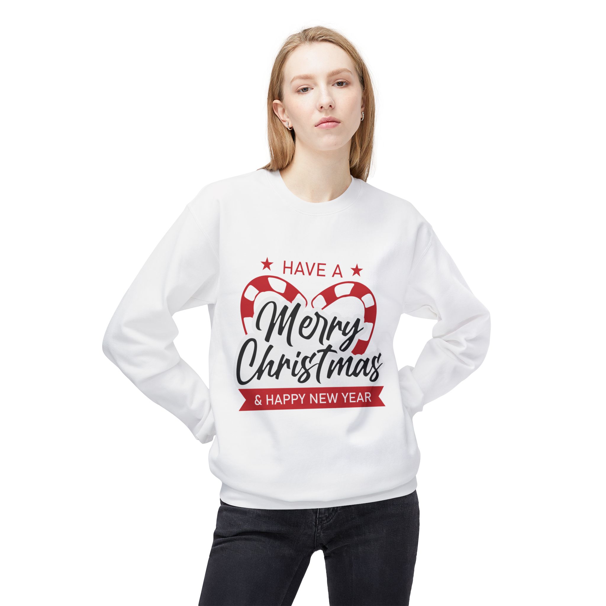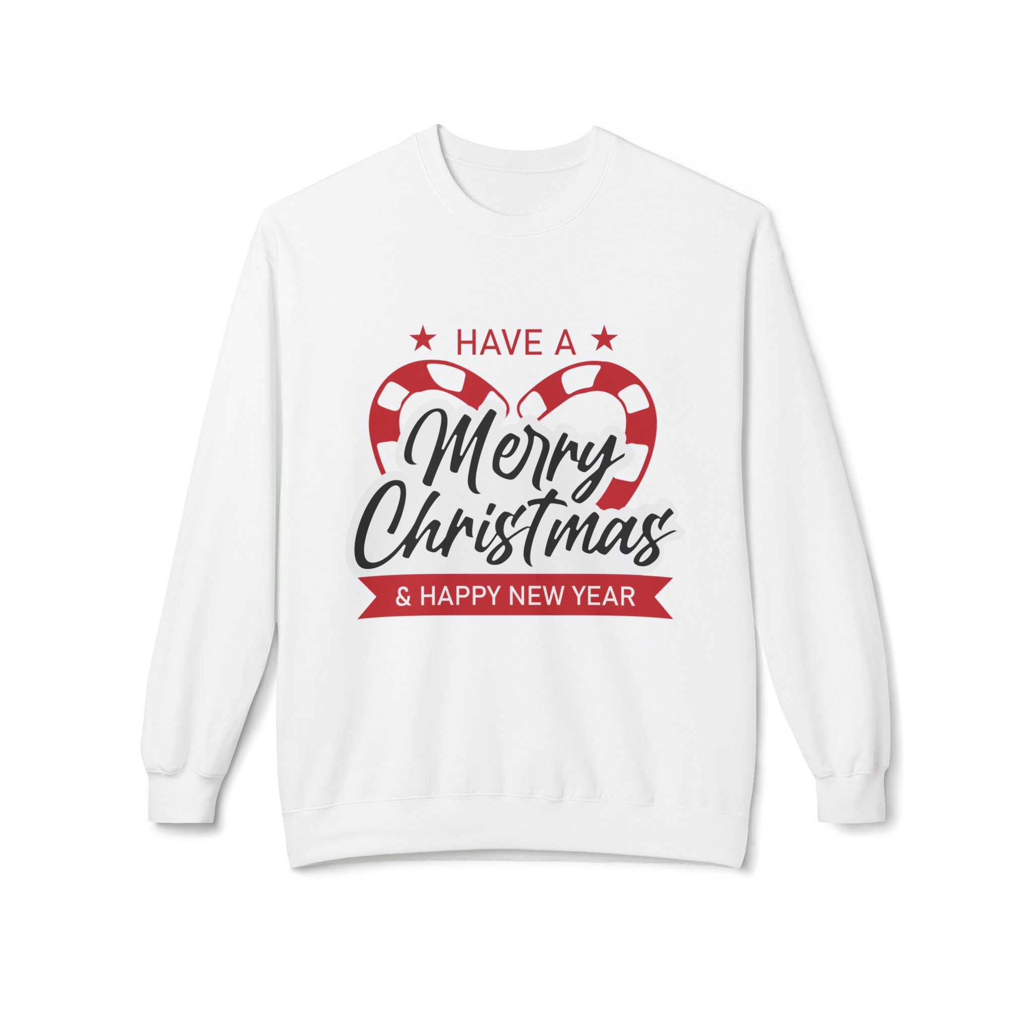 This sweatshirt features a bright and cheerful candy cane heart design paired with the message “Have A Merry Christmas & Happy New Year”. It’s simple, clean, and visually festive. It’s perfect for holiday parties, family gatherings, and Christmas photos.