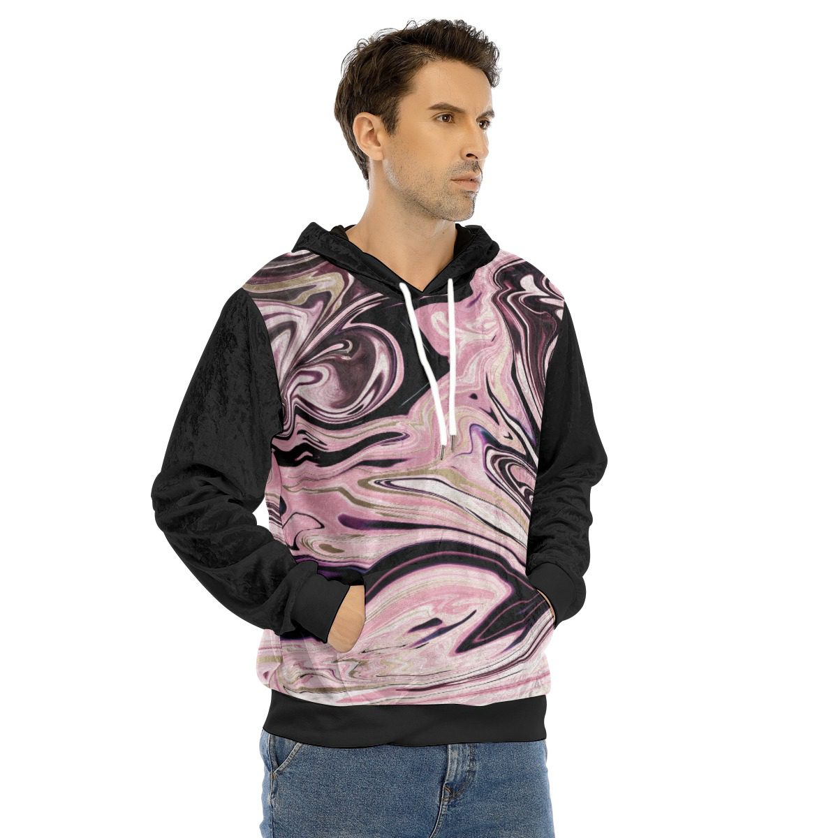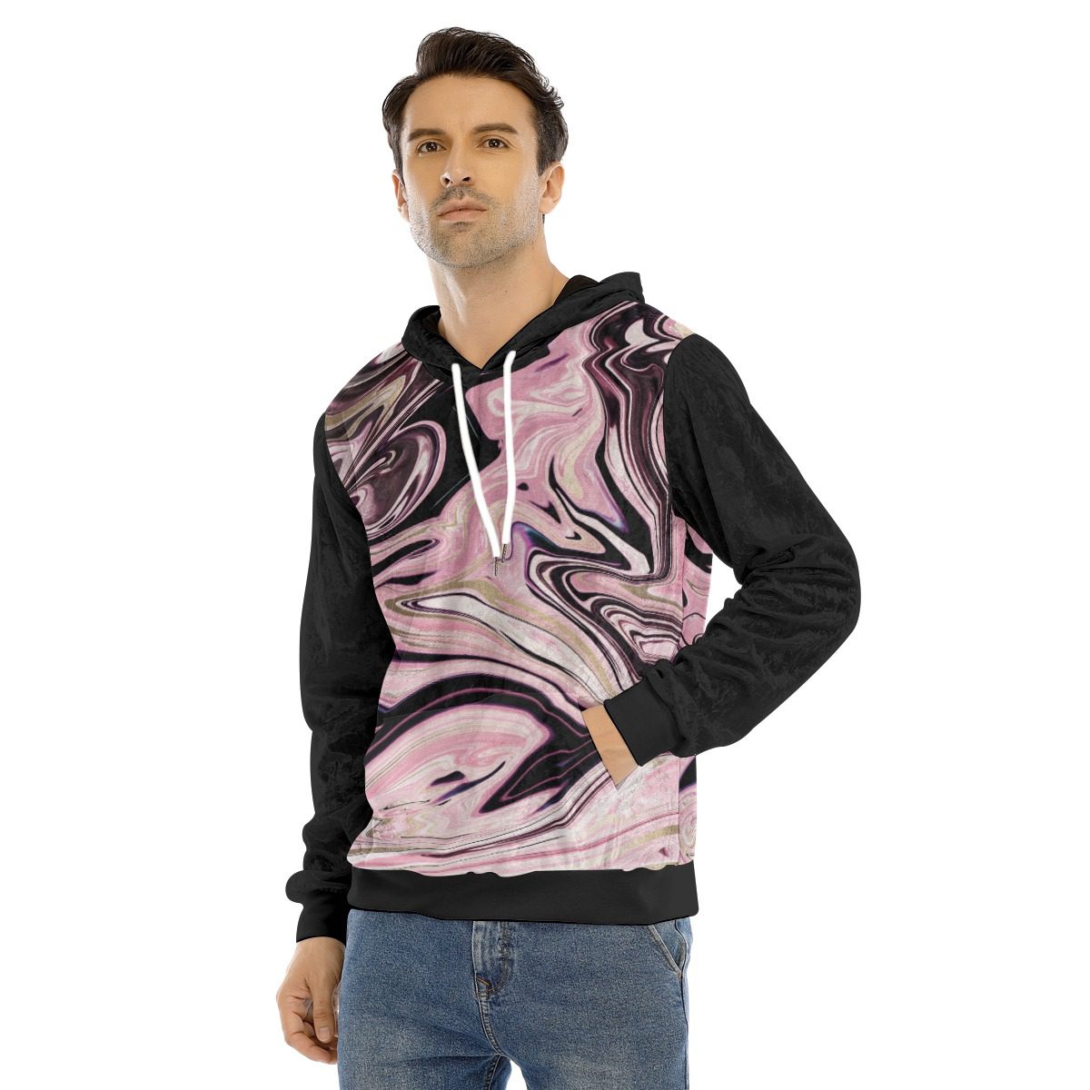 Modern Fluid Non Seamless Marble Design, Bestseller ever. With white drawstring and kangaroo pocket.Perfect for daily wear. Shiny fabric is what makes this hoodie unique