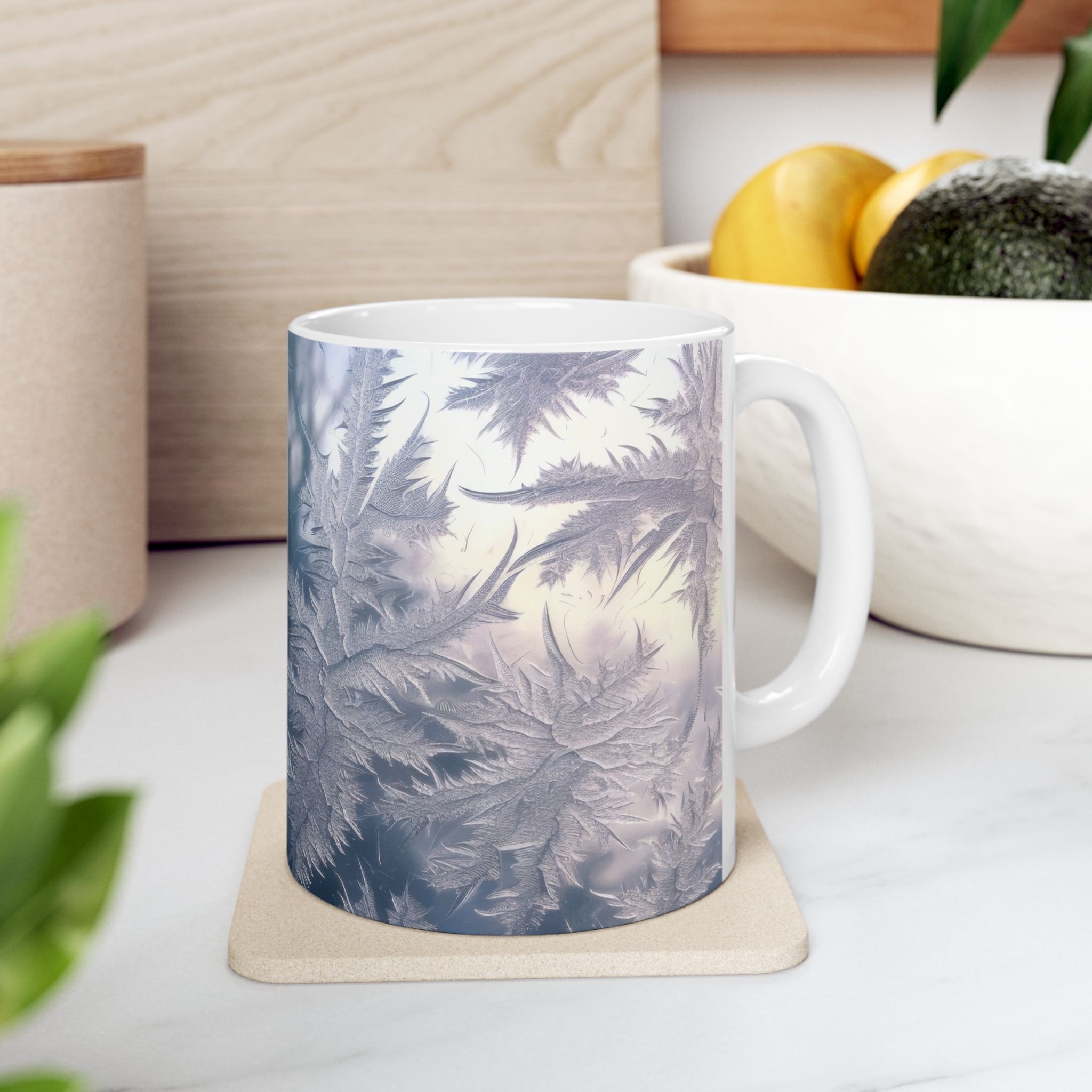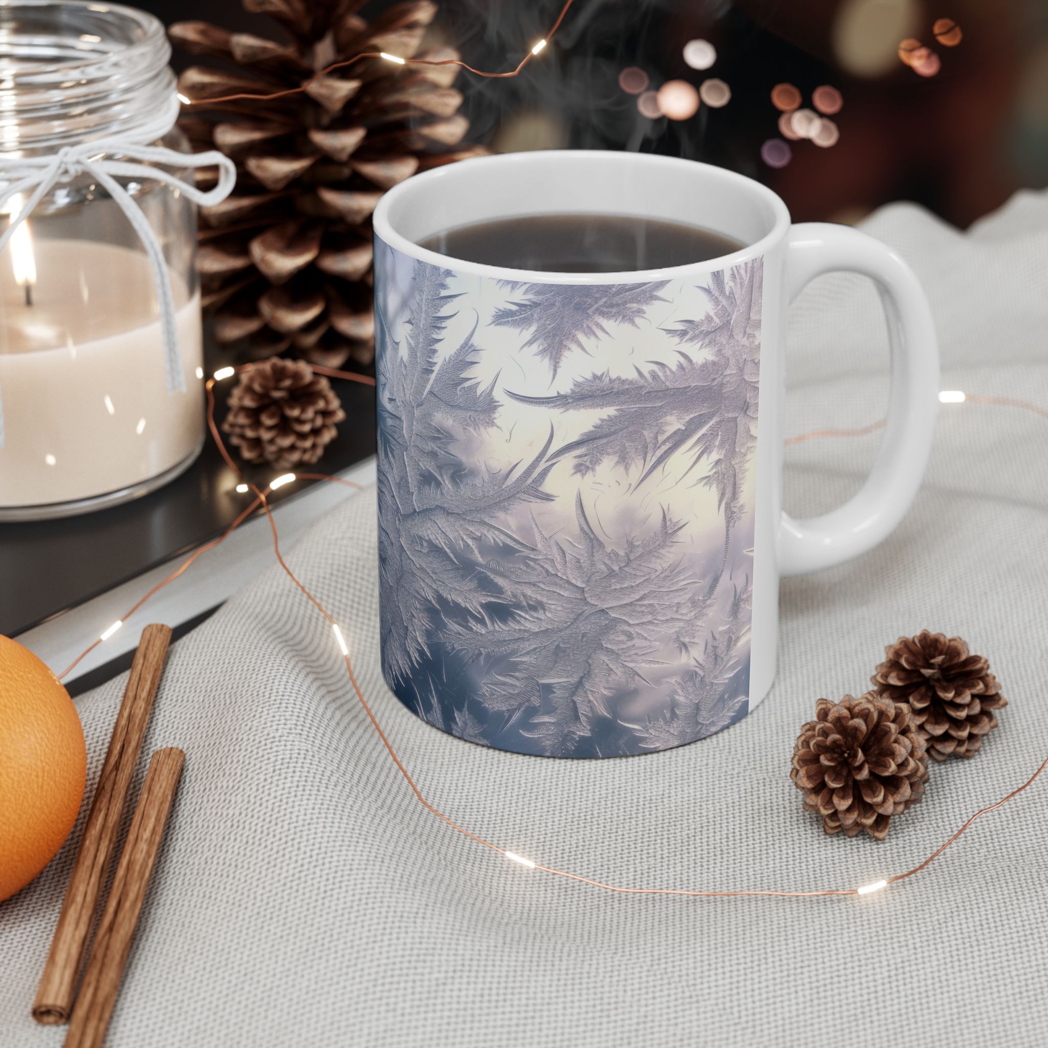 This ceramic mug with a winter snow background design exudes a cozy and festive vibe, perfect for enjoying hot drinks during the holiday season. The vibrant colors and glossy finish make it an eye-catching addition to any kitchen or office. Ideal for those who love winter aesthetics and celebrating the holidays.