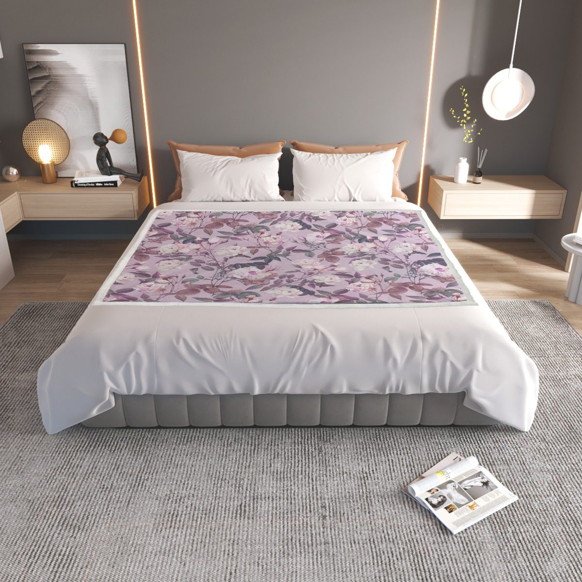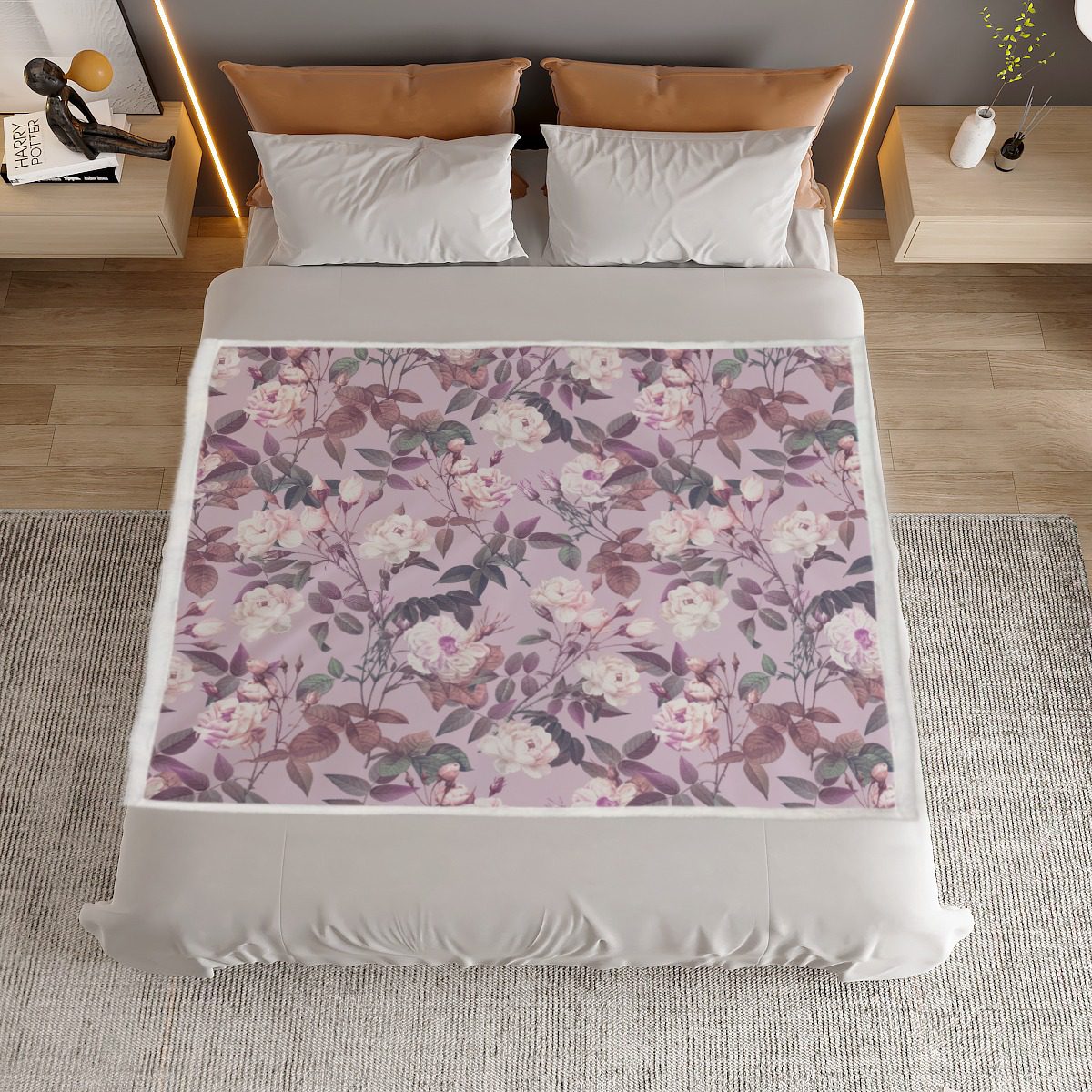 Pink Flowers Pattern Floral Design, Soft polyester premium suede fabric for new style blanket