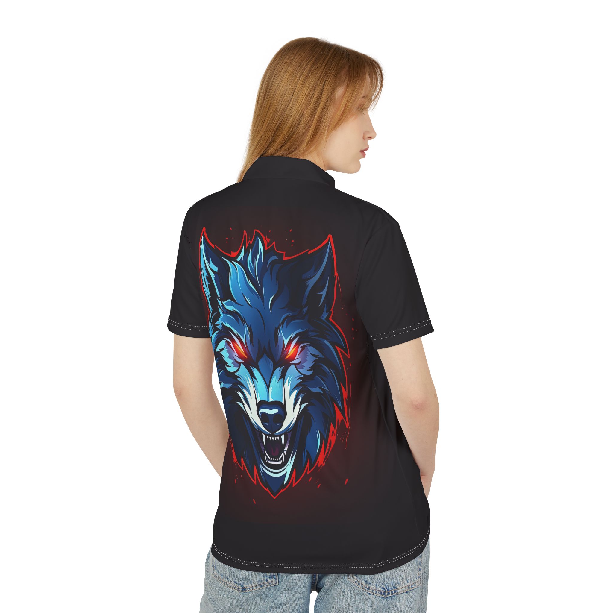 Red Effect Wolf Esport Mascot Design, Designed for ultimate comfort and style, this polo features a classic pointed collar and a three-button placket, ensuring a timeless look that suits any occasion. The high-quality polyester fabric provides a lightweight, breathable feel, perfect for both casual and professional settings. Featuring your vibrant, customizable all-over print designs, you can express your unique personality while offering your customers the durability and ease of maintenance that polyester offers.