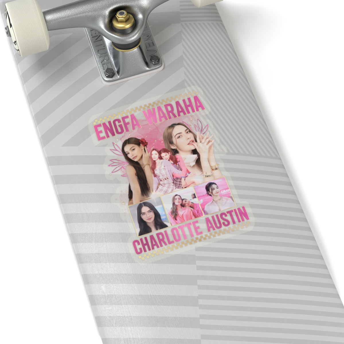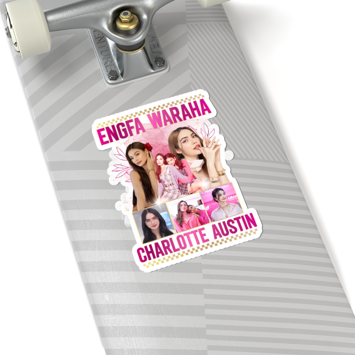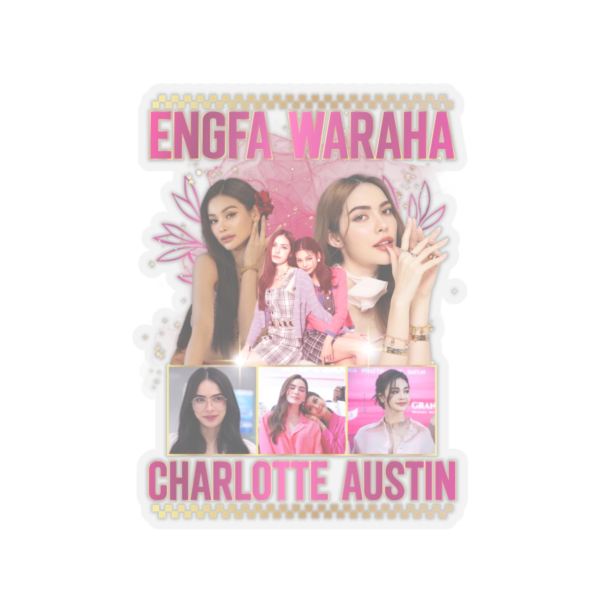 Vibrant kiss-cut stickers featuring Charlotte Austin and Engfa Waraha from the GL Series in Thailand. Perfect for fans of the show looking to add a pop of color to their laptops, journals, and windows. Ideal for collectors and enthusiasts celebrating their love for the actresses.