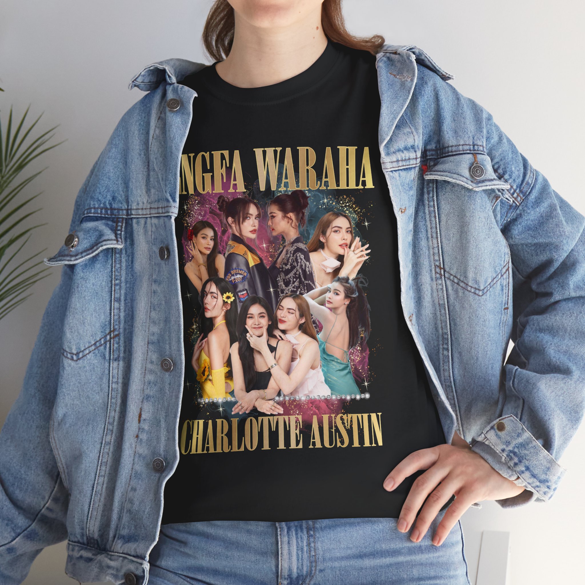 This Tee features a unique design inspired by Charlotte Austin, Engfa Waraha, Thailand GL series actors, and Miss Grands. Made from heavy cotton, this Tee provides a comfortable and relaxed wear suitable for any occasion. Ideal for fans of these actors or anyone looking for a stylish and durable shirt. Perfect for casual wear, gifts for TV series enthusiasts, and everyday wear.