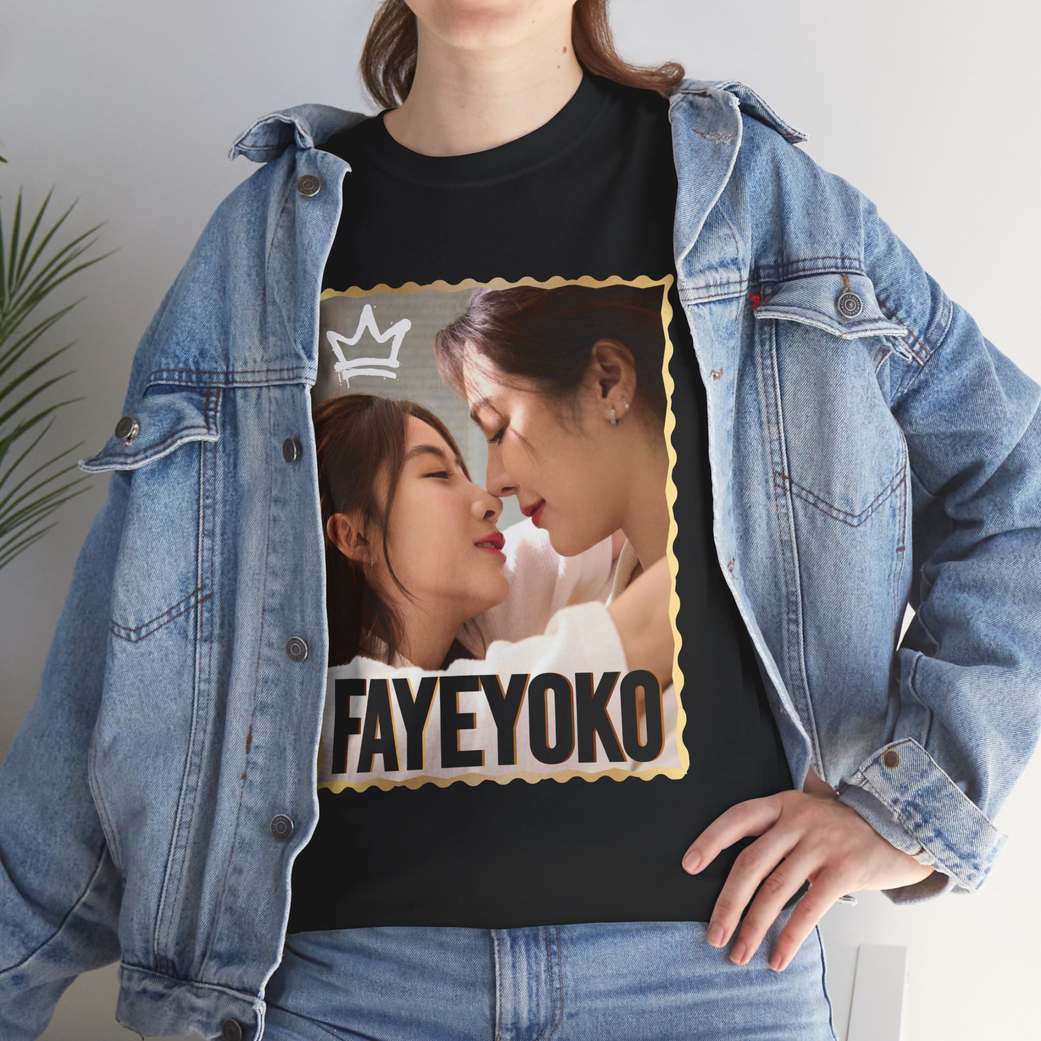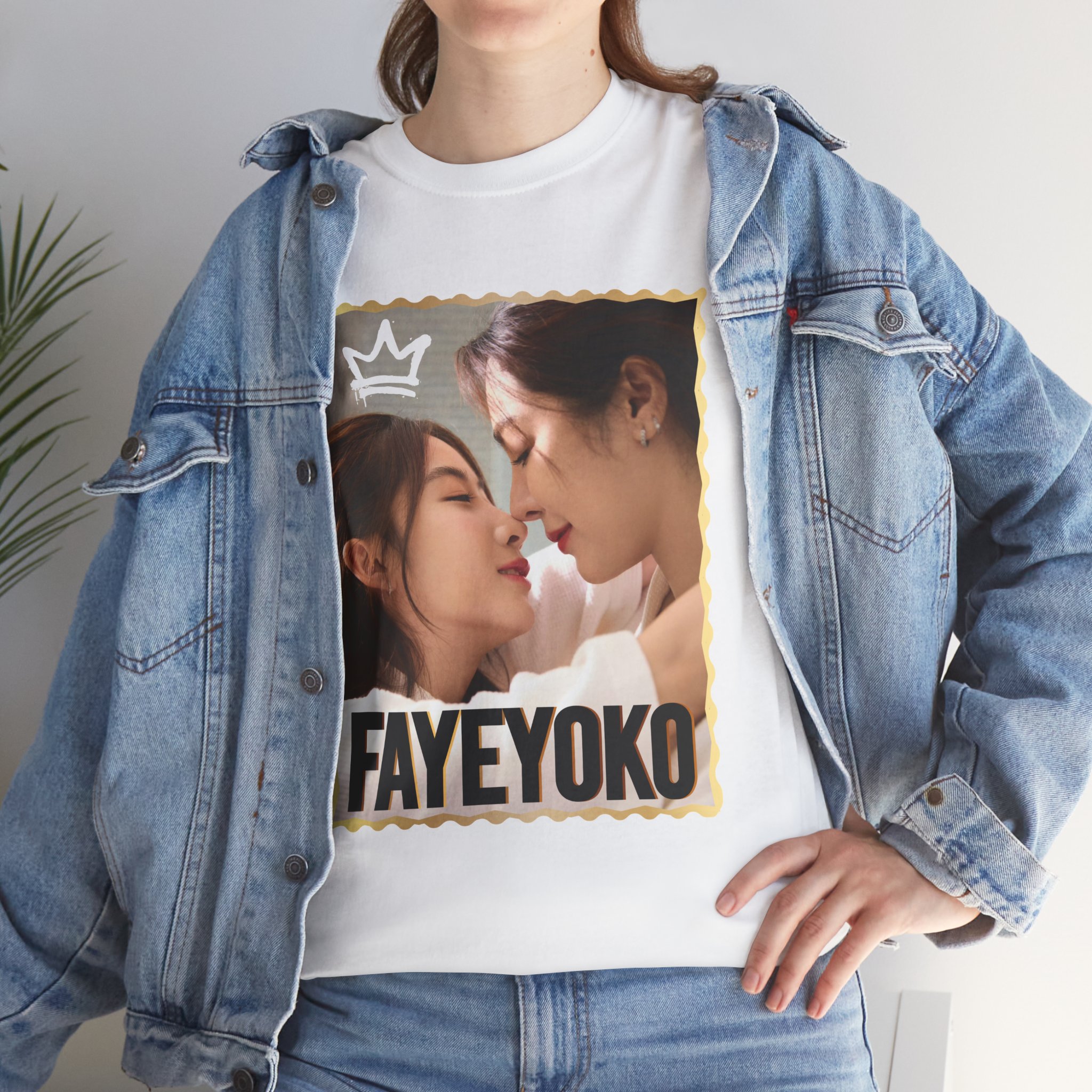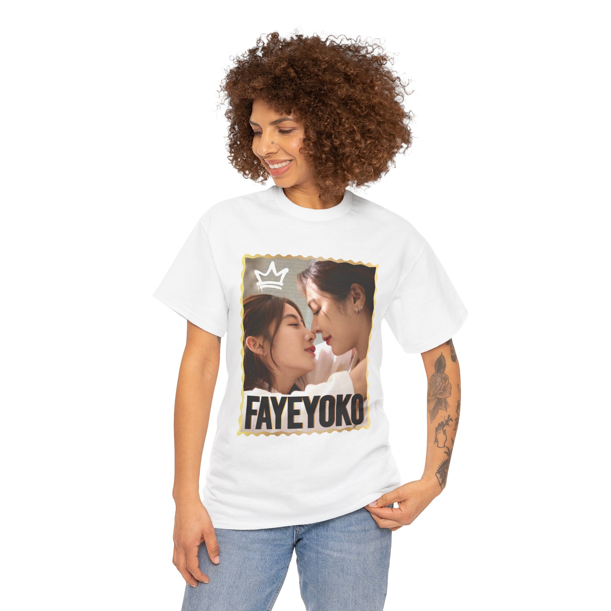 This T-shirt features a unique design showcasing Faye and Yoko from Thailand GL in the ‘blank the series’ Actresses. The fabric is made from specially spun fibers for a strong and smooth finish, perfect for printing. With shoulder tape, ribbed knit collar, and made with medium fabric weight, this T-shirt offers year-round comfort and durability. The classic fit and tear-away label ensure a comfortable wear for any occasion.