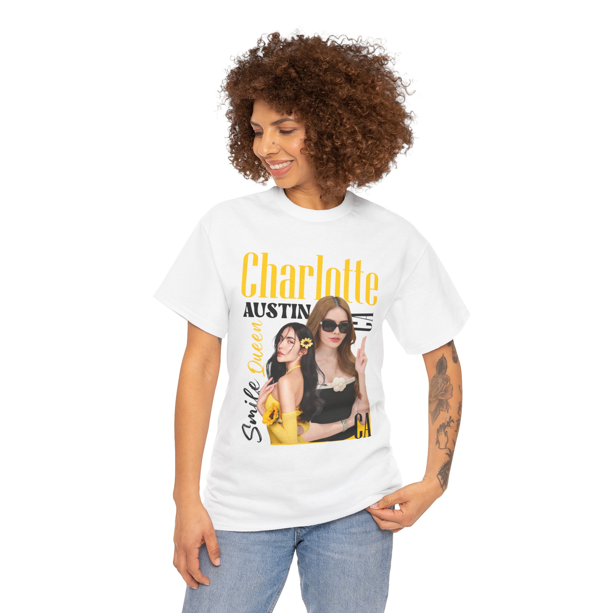 This beautiful tee featuring Charlotte Austin, the Thai actress Missgrand, is perfect for fans of her work or anyone who appreciates unique designs. With a classic fit and crew neckline, this tee offers a comfy and relaxed wear that can blend into any occasion, casual or semi-formal. Made from 100% cotton, this tee is sustainable, highly durable, and perfect for year-round comfort.