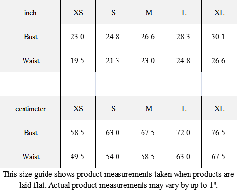 This size guide shows product measurements taken when products are laid flat. Actual product measurements may vary by up to 3cm