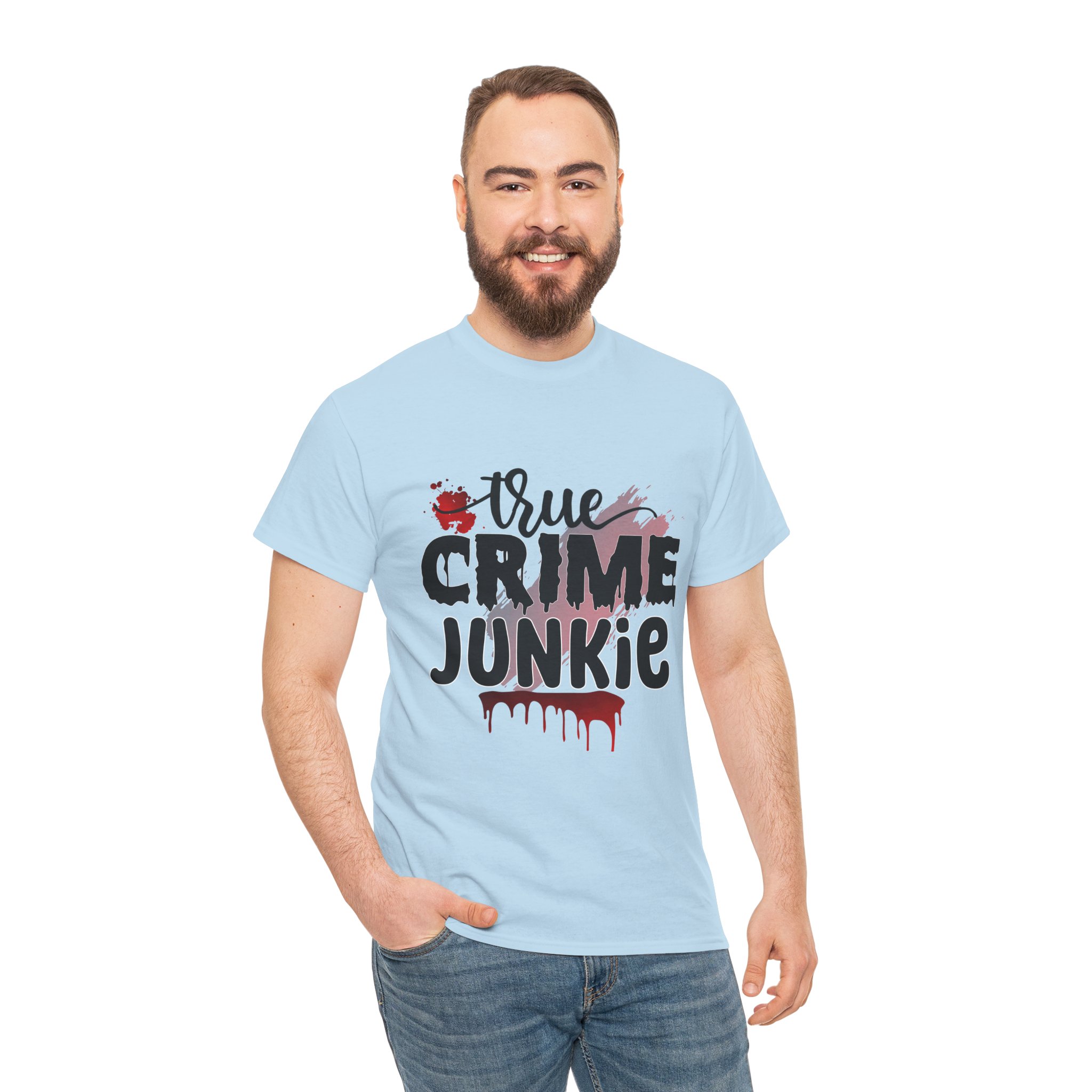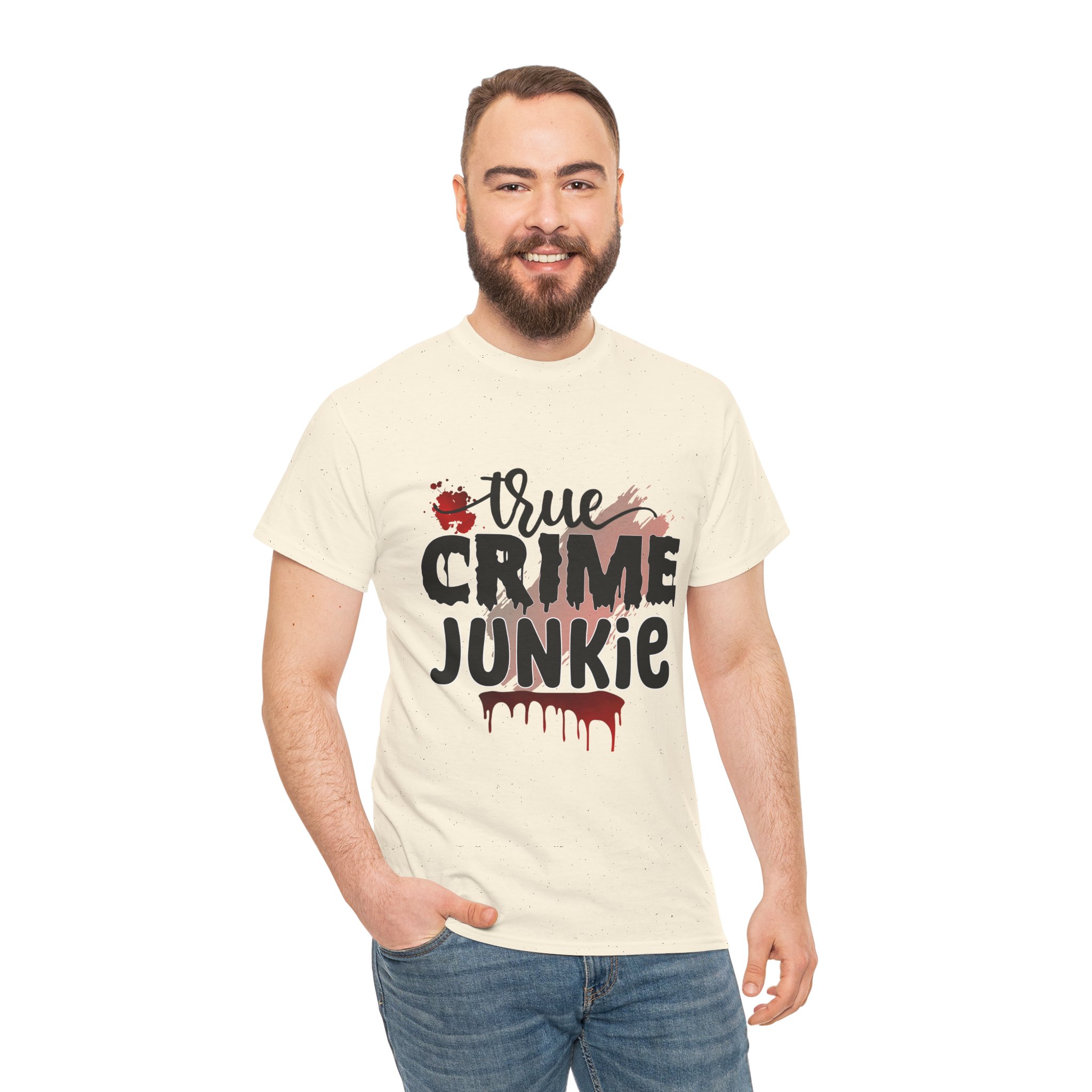 True crime junkie Design, The unisex heavy cotton tee is the basic staple of any wardrobe. It is the foundation upon which casual fashion grows. All it needs is a personalized design to elevate things to profitability. The specially spun fibers provide a smooth surface for premium printing vividity and sharpness. No side seams mean there are no itchy interruptions under the arms. The shoulders have tape for improved durability.