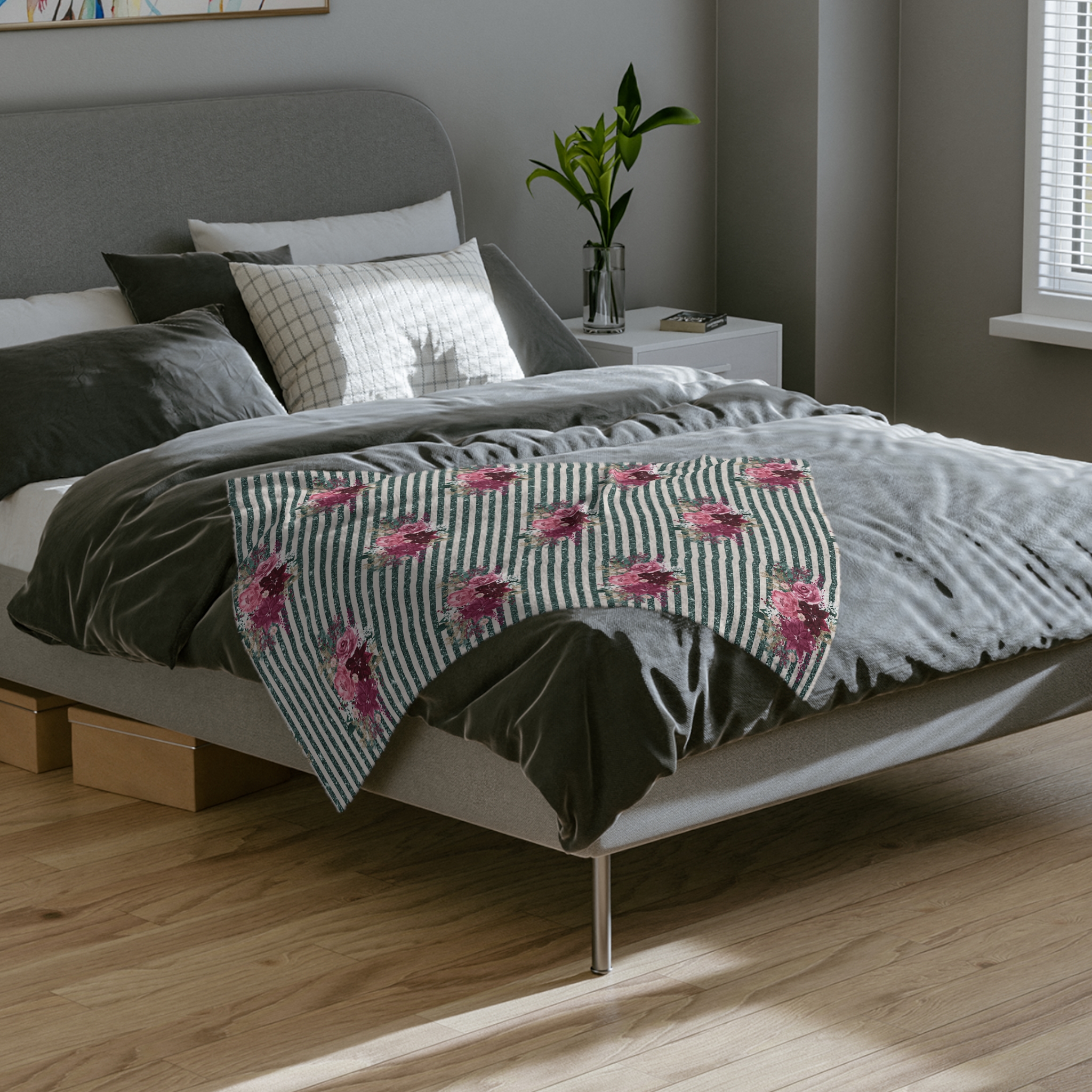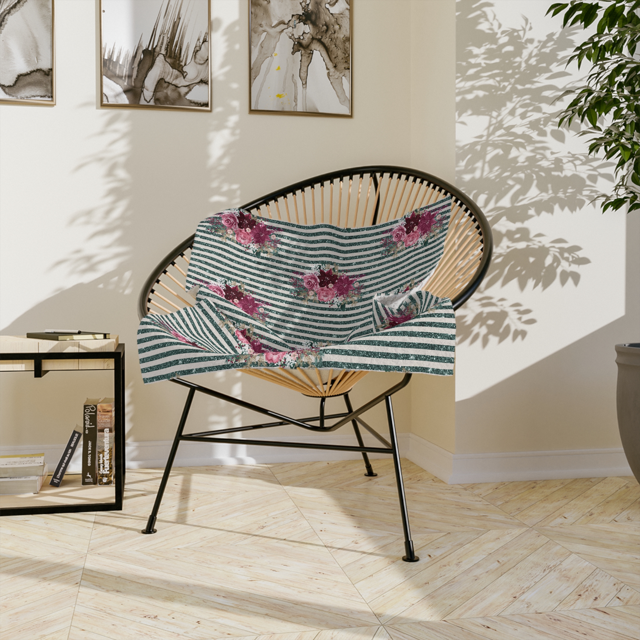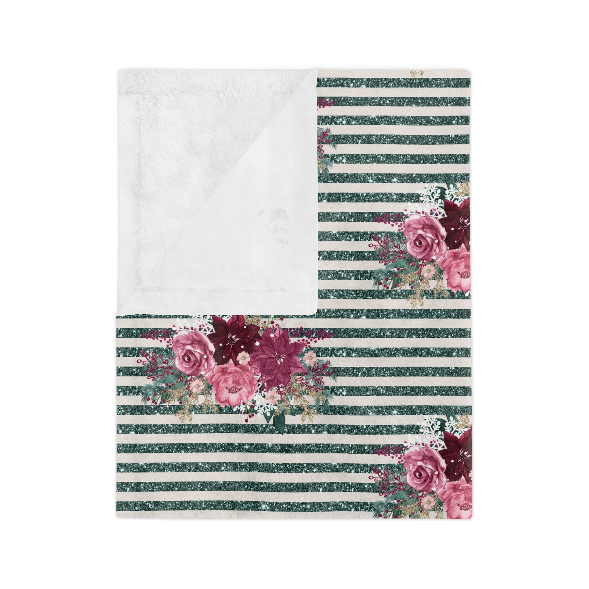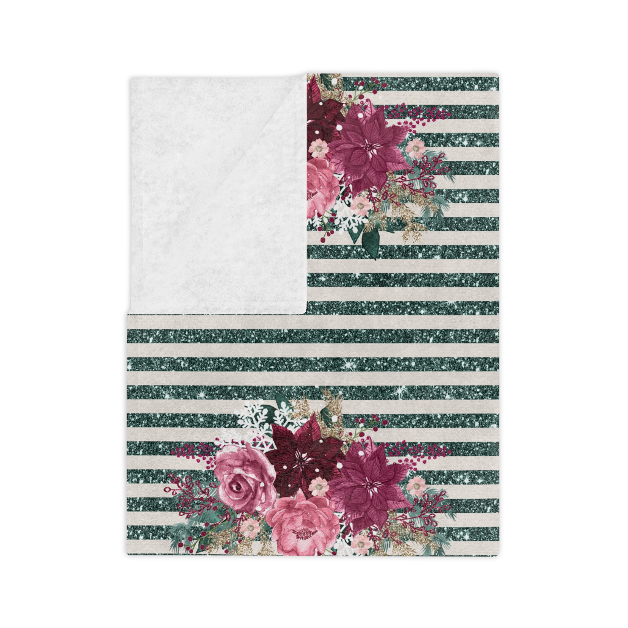 This Christmas flower pattern blanket features a beautiful mix of floral details and striped background, giving it a stylish yet cozy holiday look. The vibrant colors stay bright and crisp, making it a perfect decorative piece for the winter season.