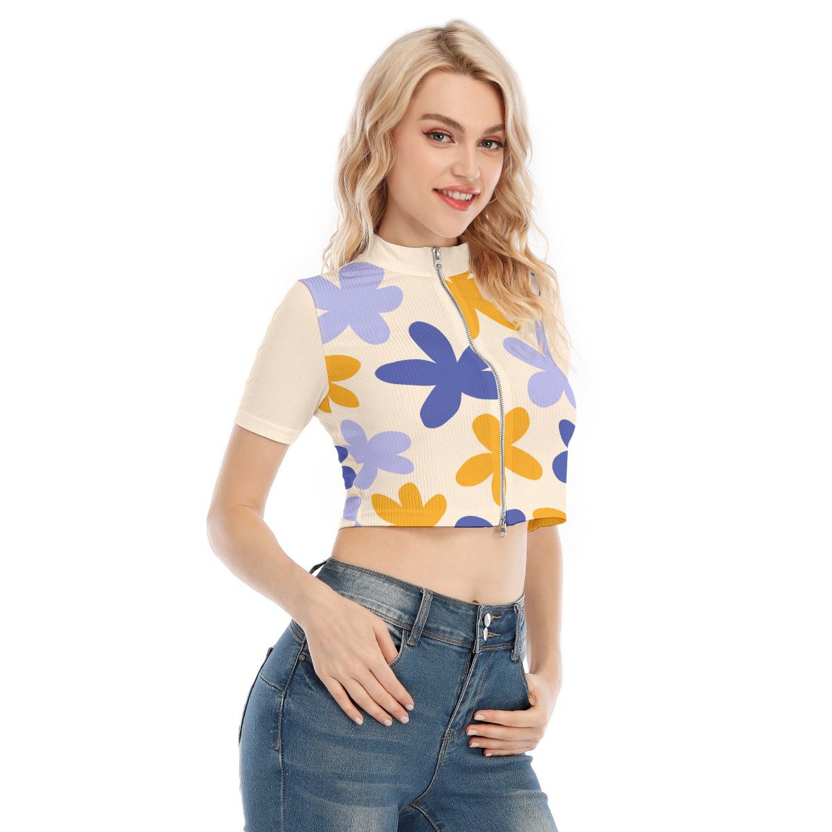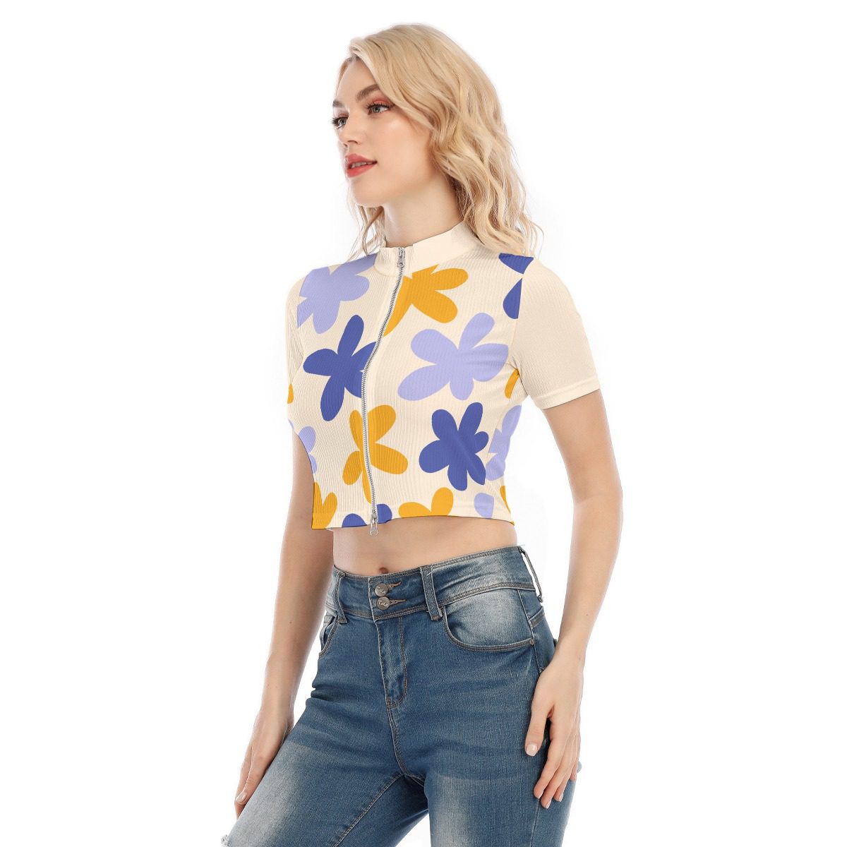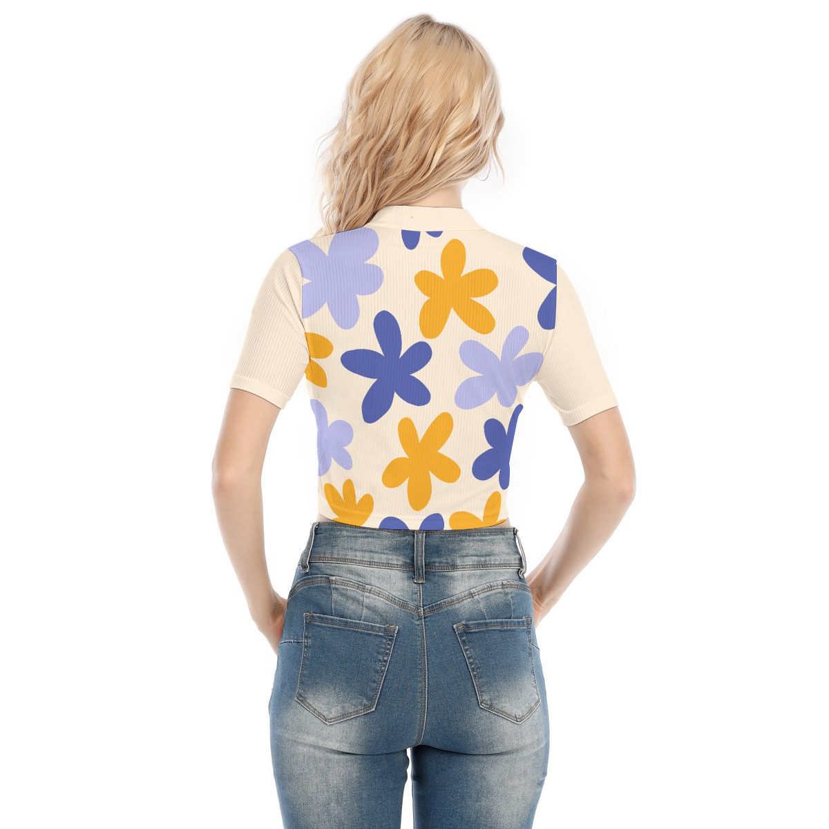 Vibrant Spring Flowers Pattern Design, Women Short Sleeve Tops-Soft lightweight breathable cool stretchy fabric perfect for spring summer wear for casual or dressy.