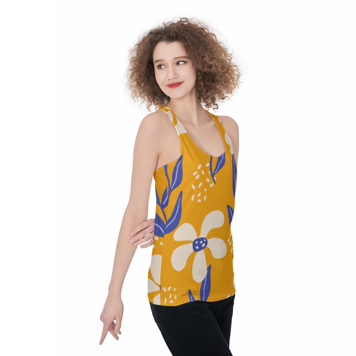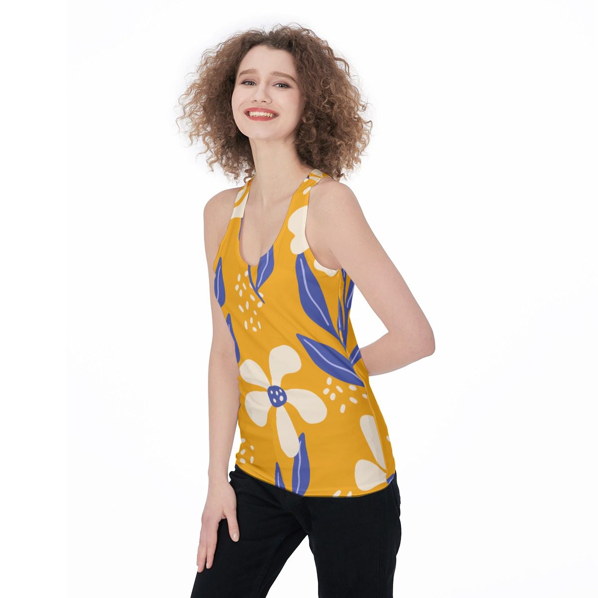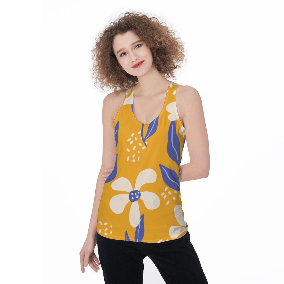 Vibrant Spring Flowers Pattern Design, Who doesn’t love a tank that can take you from the gym to the streets to home again? The versatility of this style means that this women’s sleeveless shirt is the perfect choice for all of your daily activities. With its racer back design, this tank top is a basic essential loved by everyone from moms on the go to yoga teachers.