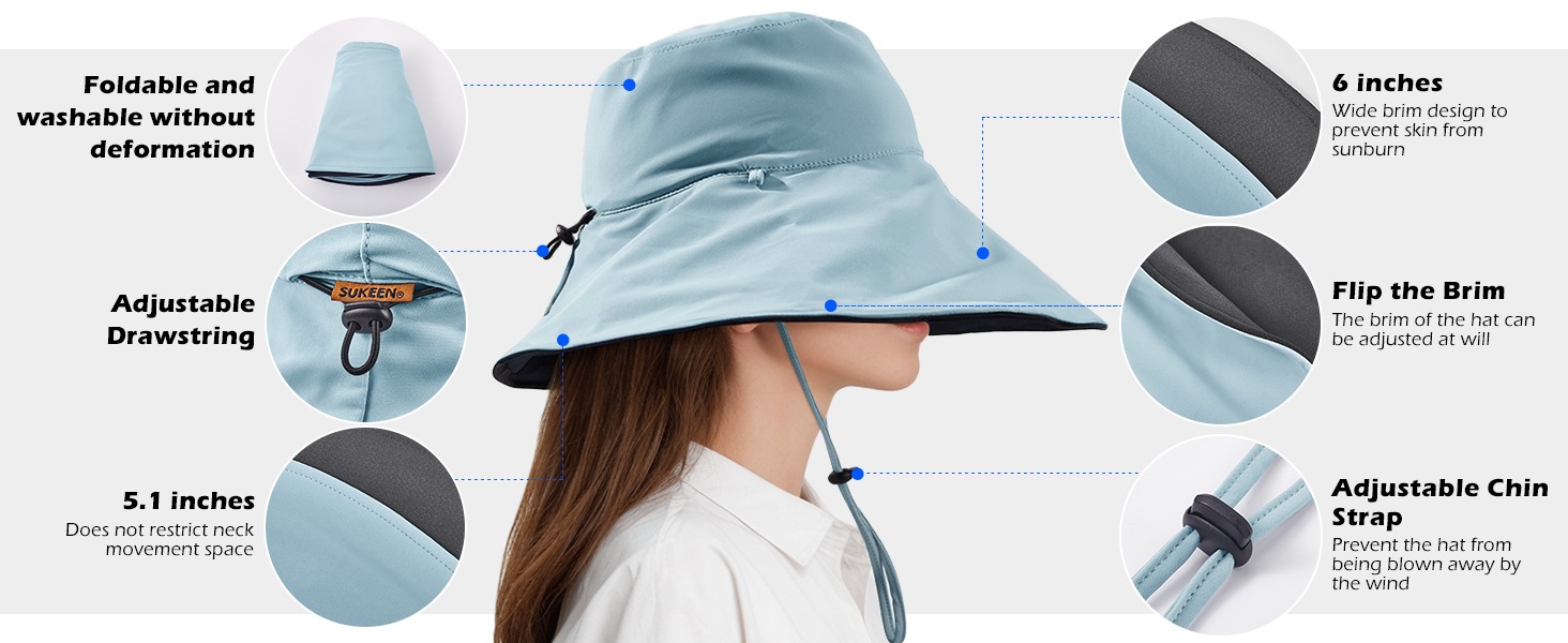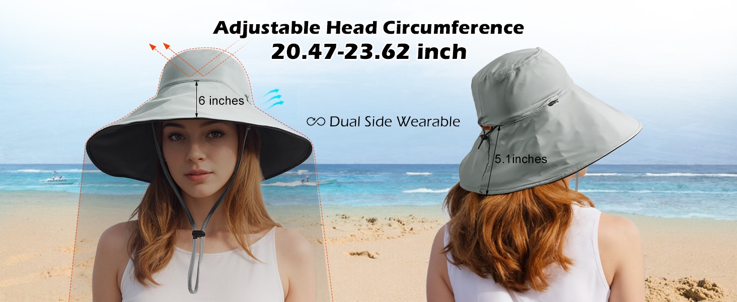 - Adjustable and Fits Most – With a head size range of 20.47′-23.62’(52-60cm),The double sided adjustable elastic drawstring ensures a snug and custom fit, allowing you to tighten or loosen the Women’s sun hat as needed.In addition, this sun hat also includes an adjustable detachable chin strap. This feature can prevents it from flying off during windy conditions and prevent it from flying off.